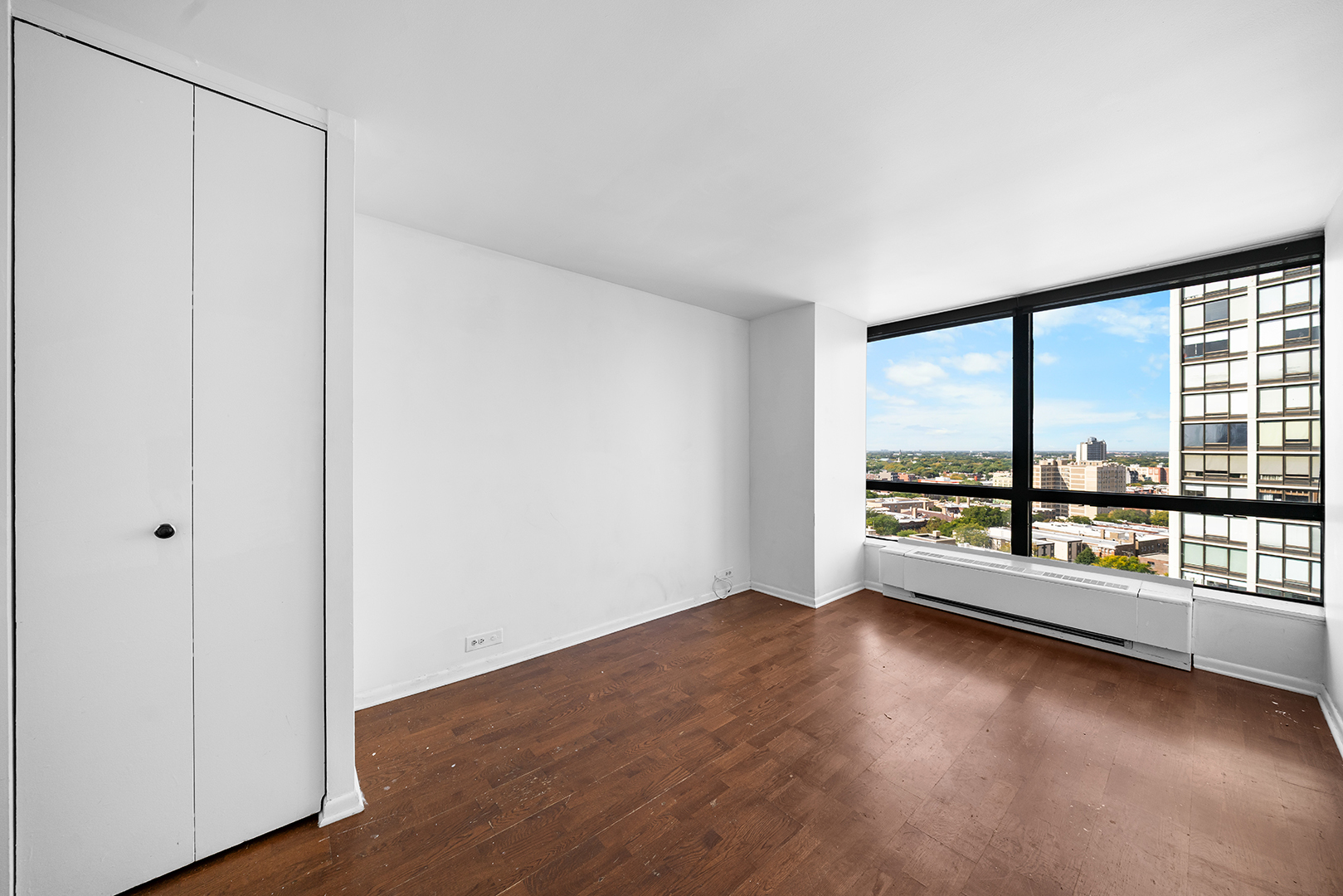 We cordially invite you to experience the entirety of this 1 bedroom, 1 bathroom condo in 3D/virtual reality before seeing it in real life! Welcome home to your north-facing condo with both city and lake views. This is a north-facing unit where you can see westward as well as a sliver of the lake, giving you the best of both worlds. While direct lake views give you a view of a black hole at night, we enjoy the best of the lit city as well as the lake during the day. This is not a condo with a skyline view, but the view is quite pleasant. The unit features organized and configurable Elfa closet shelving in multiple closets. The master bedroom has 2 closets and there is a large walk-in closet off of the side hallway. In-unit laundry is possible if you add it to this walk-in closet (it currently does not have in-unit laundry). There is supplemental storage off of the main hallway, in the kitchen (in the form of a pantry cabinet), as well as a private storage cage (measuring approx. 3’W x 3’D x 3’T) on the 19th floor next to the service elevators. This unit has engineered hardwood flooring in the kitchen, hallways, bedroom and the living room. The bathroom was updated with a backsplash, some lighting and a vanity. The tub as well as most of the kitchen is original so bring your renovation/redecorating ideas. This unit has fantastic bones, lots of windows, and a great view. Please note that pets are not allowed within this building unless they are emotional support animals or service animals. The building has fabulous amenities! The hallways and elevators have been recently redone as well as some of the outdoor areas. Enjoy a large indoor pool, indoor hot tub, outdoor pool, private rentable outdoor space, a common sundeck with 4 grills and koi area and 2 gyms (one with cardio equipment and one with weights). The lake shore walking/bike path is steps away as well as the green/park space by the lake path. Foster Beach is only a few blocks away, as is access to Mariano’s at Foster & Sheridan Rd. Lake Shore Drive access is off of Foster Ave. and you are a close walk to the best of Andersonville, Uptown and Edgewater! If you’re looking for CTA transportation, you have multiple bus options (including express) as well as CTA red line options a few blocks away.
