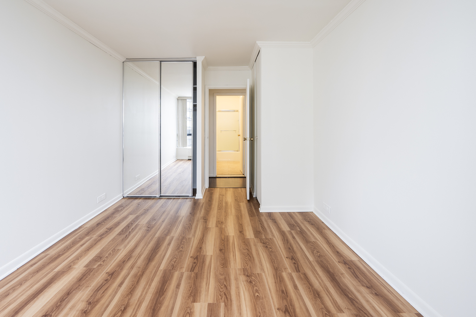 Edgewater Beach! Spacious one bedroom with a spectacular side lake and city view. Wood laminate floor thoughout. Open white kitchen with a Corian countetop. Freshly painted. Ample closet space including a walk in closet. Storage locker on the same floor. Full amenity building with a 24 hour door person, 24 hour package receiving room. Join the gym with a 20 yard indoor pool. In unit washer/dryer permitted with approval Garage/valet parking available for a fee of $165.00, no wait. Assessment includes heat, a/c, cable, internet, water, common insurance. New owner must live in the unit for 2 years and be placed on a waiting list to lease their unit.