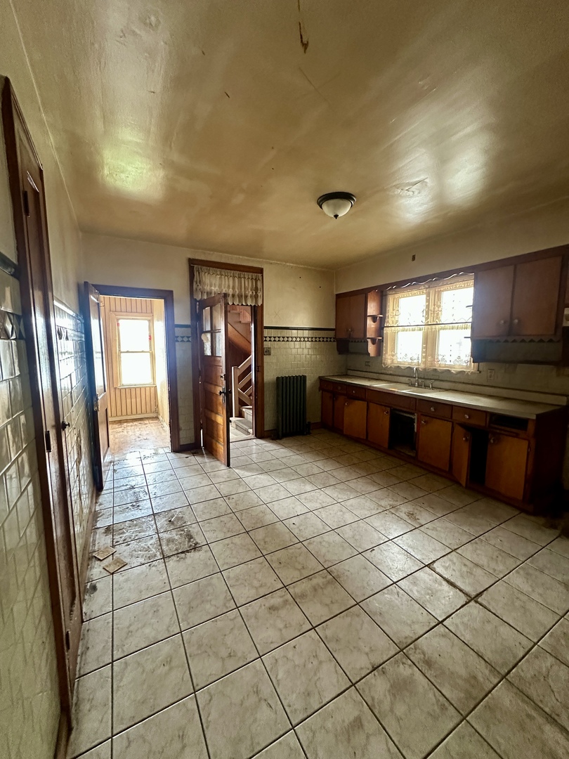For safety reasons the water and gas are off and should not be turned on. Welcome to this very large 5-bedroom 3-bathroom brick bungalow that is in need of your ideas and repair. The large bay window in the front of the home allows for lots of natural light and the classic hardwood floors, rich wood doors and 2 kitchens give you an idea of the home’s potential! There is also a large garage which means no need to look for parking spots. This is a great opportunity if you are an investor looking for your next project or a homeowner looking to renovate your dream home. Property is an estate sale and being sold As-Is.