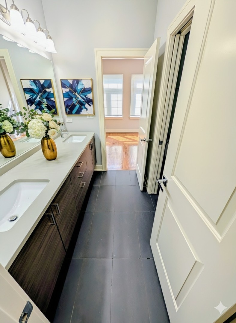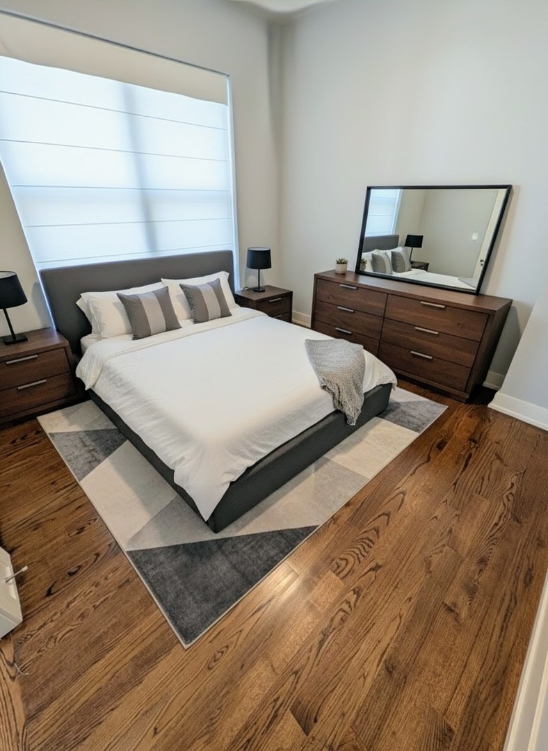 Newer-construction single-family home on a quiet, tree-lined block in Bronzeville. Thoughtfully designed 5BR/3.1BA layout with a bright, open main level-tall ceilings, wide-plank hardwoods, and a chef’s kitchen featuring shaker cabinetry, quartz countertops, island seating, and stainless appliances. Retreat-worthy primary suite with walk-in closet and spa bath (oversized shower + double vanity). Three additional generous bedrooms, great storage, and a full-size laundry area. Flexible lower level offers a large family/rec room, fifth bedroom/office, and a full bath-ideal for guests, gym, or WFH. Outdoors you’ll find a fenced yard with deck/patio and an attached 2-car garage. Dual-zone HVAC and low-maintenance exterior. Prime location near the 47th St Green Line, Lakefront Trail, parks, and Bronzeville dining-quick access to Lake Shore Drive and I-90/94; minutes to downtown, IIT, and Hyde Park. Move-in ready and an exceptional value for space, finish, and location.