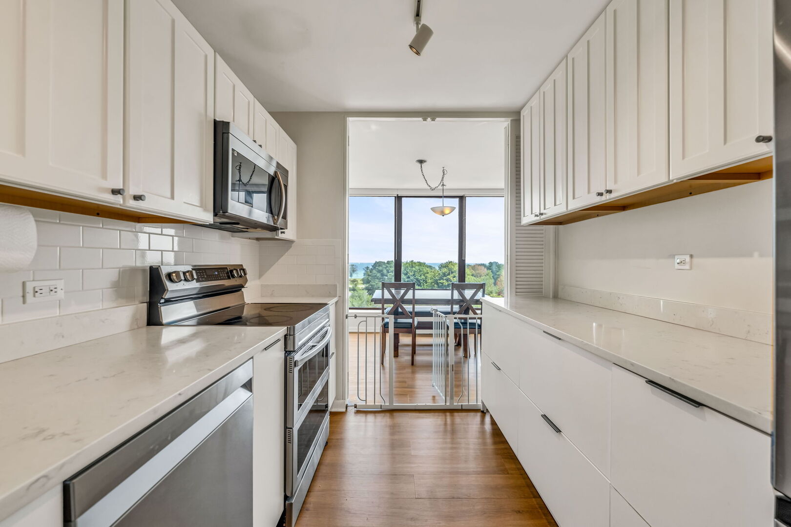 This spacious condo offers breathtaking sunrise views over Lake Michigan and city skylines. Oversized windows fill the open-concept living and dining area with abundant natural light, creating a warm and inviting atmosphere. Modern Upgrades Throughout. Two generous bedrooms with ample closet space. Two full bathrooms, tastefully updated with modern fixtures. Upgraded kitchen with granite countertops, stainless steel appliances, and contemporary cabinetry. Sleek laminating floors and neutral finishes throughout for a move-in ready feel. Full-service building offering, 24-hour door staff, outdoor sundeck, tennis court, laundry facilities, parking available for lease. Direct access to the lakefront trail and beaches. No rental cap. It is a perfect condo for your home or investment.