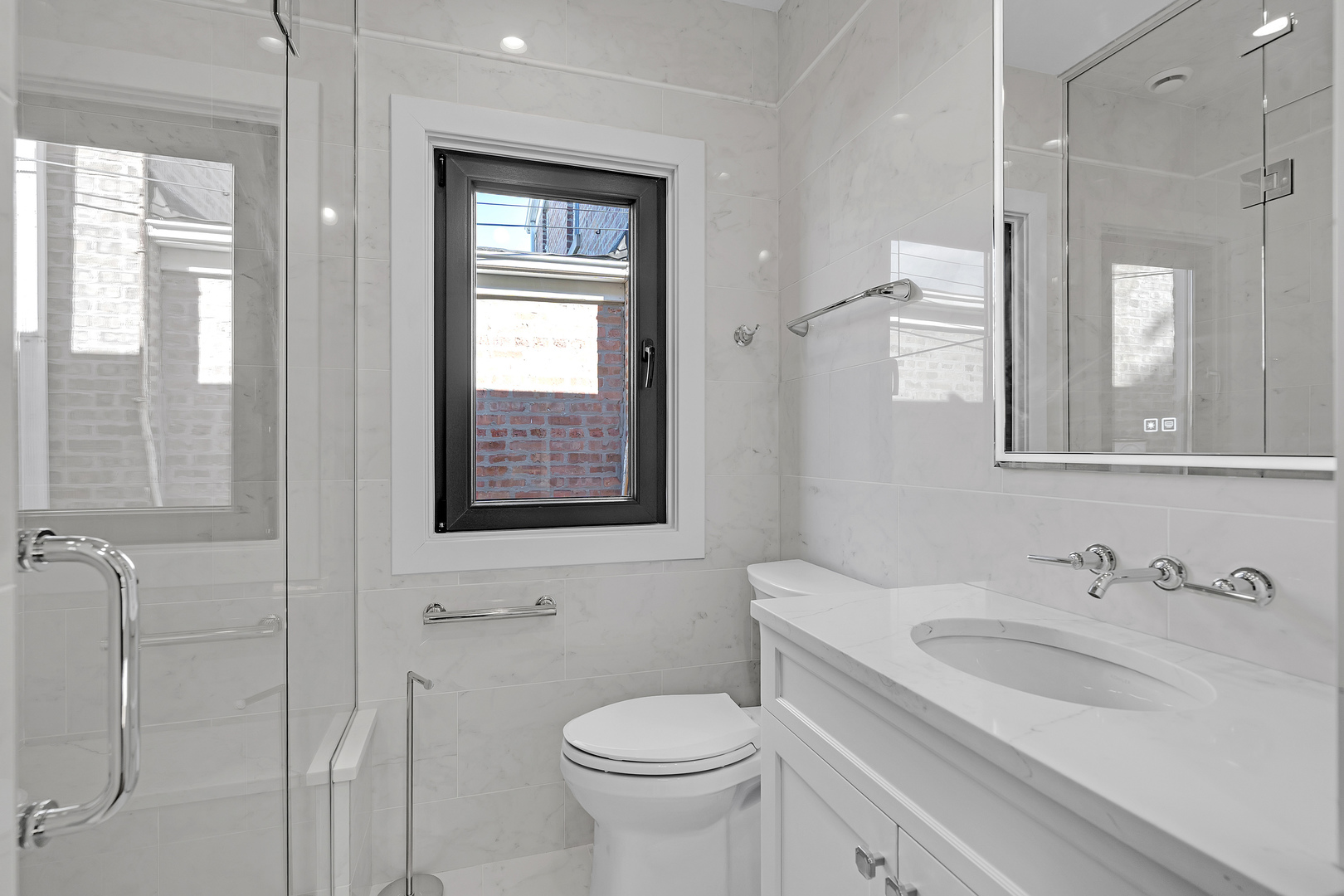 Beautifully rehabbed 1714 SF single family home on a quiet tree lined street in the Jefferson Park. Contemporary, new kitchen with quartz counter tops, beautiful cabinets and brand new SS appliances. Kitchen also has pantry for additional storage. Three brand new full baths, one on each level. 1st floor bath has heated floors, exhaust fan on timers and custom storage cabinets. Refinished, hardwood floors throughout, freshly painted. Second floor has master suite with full bath, custom made closet and sitting room. Full finished basement with family room, spacious modern laundry room with white cabinets and quartz countertop, full bath and 2 extra bedrooms. Nice yard with 14×10 deck off enclosed porch, privacy fenced yard and a 2 car garage with newer overhead door. Furnace is 1 year old, new H20 tank , updated CB electric and new European casement windows. Great location close to expressway , public transportation, grocery store, park and school.