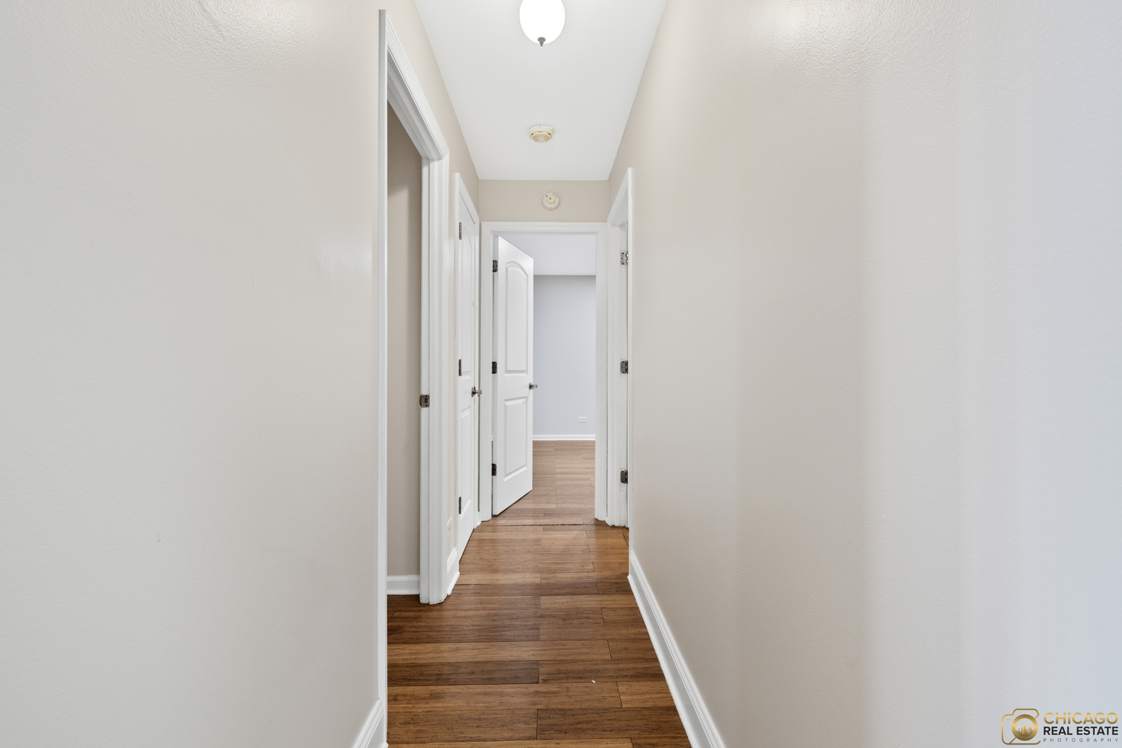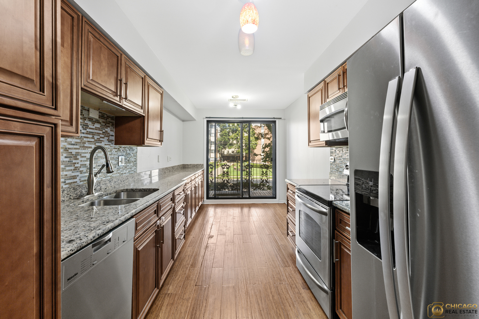 Bright & Airy Corner Unit with Balcony and Modern Upgrades! Spacious 2BR/2BA with open living/dining, updated eat-in kitchen featuring granite counters and stainless steel appliances. Oversized balcony ideal for summer grilling. Primary suite with walk-in closet and full bath; large second bedroom also with walk-in. Newer bamboo floors, fresh paint, updated baths, brand-new furnace & Nest-controlled A/C. Garage + exterior parking, same-floor storage, new laundry room. Low assessments, excellent schools, and prime location near Metra, I-94, shopping, and library.
