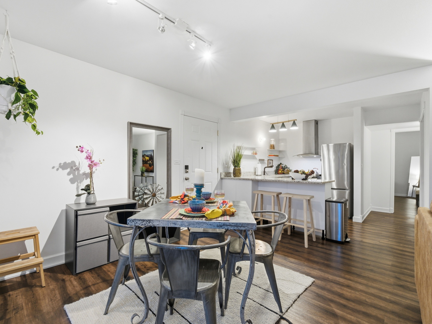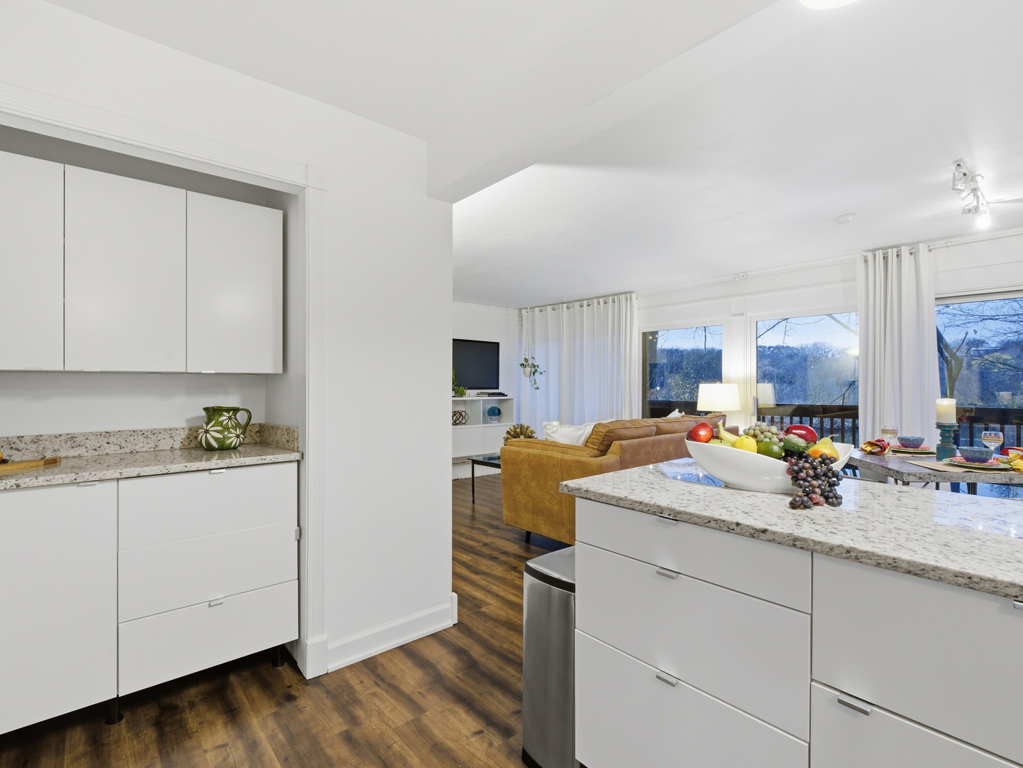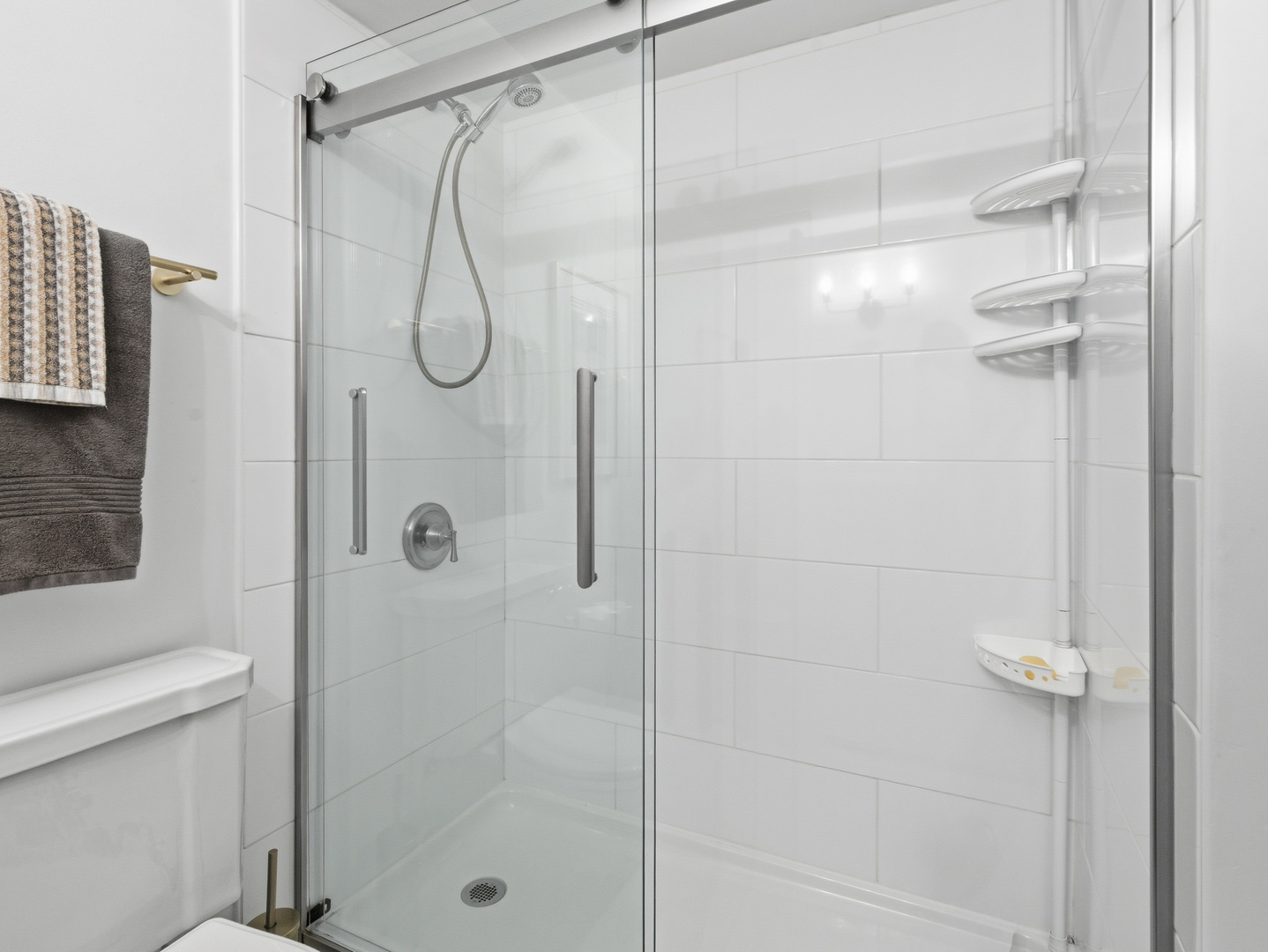 Your ticket to tranquility! Spacious and bright, this beautiful 2-bedroom 1 full bath end unit condo offers four seasons of spectacular views. Four Lakes Village is a lifestyle offering abundant recreational options – pool(s), tennis and volleyball, gym, skiing and snowboarding (they make their own snow), a pub, restaurant and convenient store. The living/dining room features a painted brick wall framing a cozy wood burning fireplace. Another full wall of sliding glass doors invites you to an entertainment-sized balcony with reposeful lake views and sunsets that never get old! Contemporary kitchen with stone countertops, stainless appliances, breakfast bar, and butler’s pantry. Spacious master bedroom and 2nd bedroom both with ample closet space. Recently renovated full bath is on-trend. In unit laundry with new washer and dryer included. Separate storage room offers plenty of space for all your belongings. Includes an assigned parking space and ample adjacent visitor parking. Recent updates include new HVAC, bedroom windows, washer and dryer, freshly painted walls, and the deck has been freshly stained. Conveniently located close to shopping, restaurants, expressways, and Metra. Welcome to your new maintenance free and convenient lifestyle!