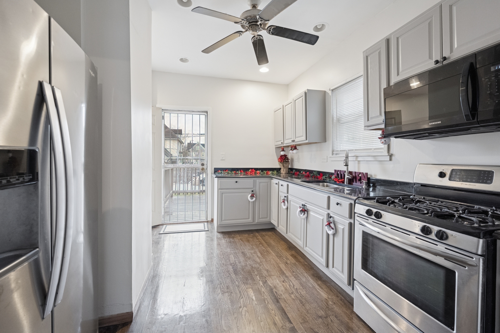 Charm in Chicago’s Austin Community Welcome to this beautifully maintained two-story frame home offering 3 bedrooms, 1 full bath, and a finished basement. Step inside where you are greeted by a beautiful staircase leading to the bedrooms & bath on the 2nd level. Enjoy a spacious living room and formal dining room, perfect for entertaining. The modernized kitchen features updated countertops, cabinets, and includes a refrigerator, stove, and microwave-all transferring with the sale. Recent upgrades include: * Refinished hardwood floors in the living room, dining room, hall, and two upstairs bedrooms * Freshly painted interior and exterior, including the front porch and deck * Hot water heater (approx. 3 years old) and furnace (approx. 4 years old) for peace of mind * Enjoy outdoor living on the freshly painted deck and front porch * Newer concrete parking slab in rear (perfect for ease of parking) * New laundry tub in basement * New vinyl plank flooring in 1 bedroom This home combines classic charm with modern updates, making it move-in ready!