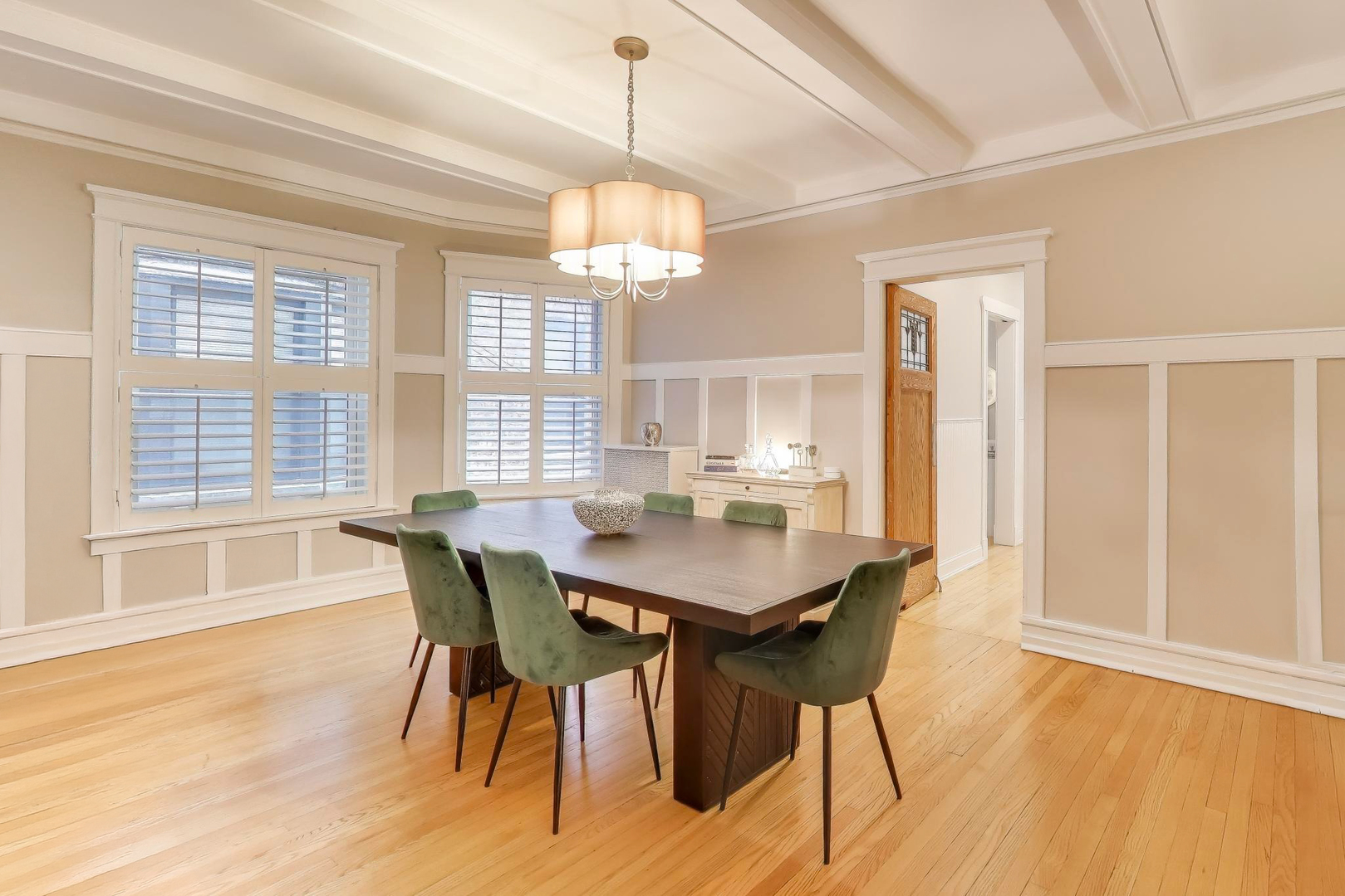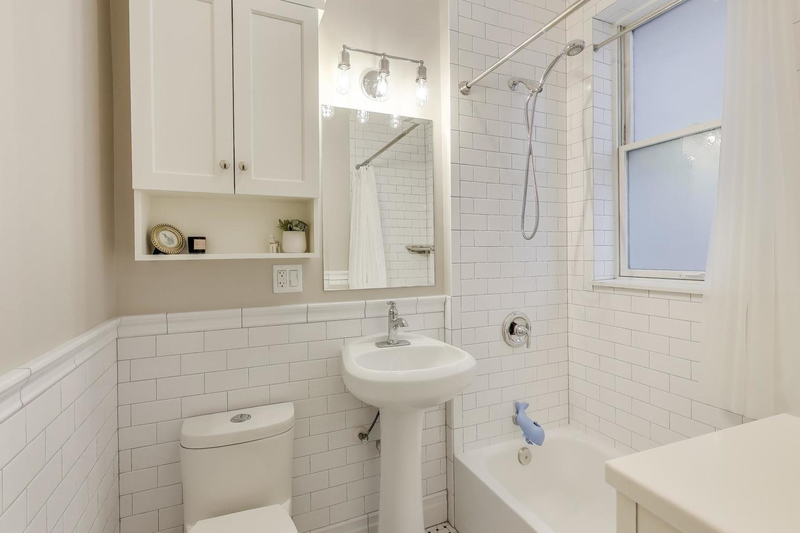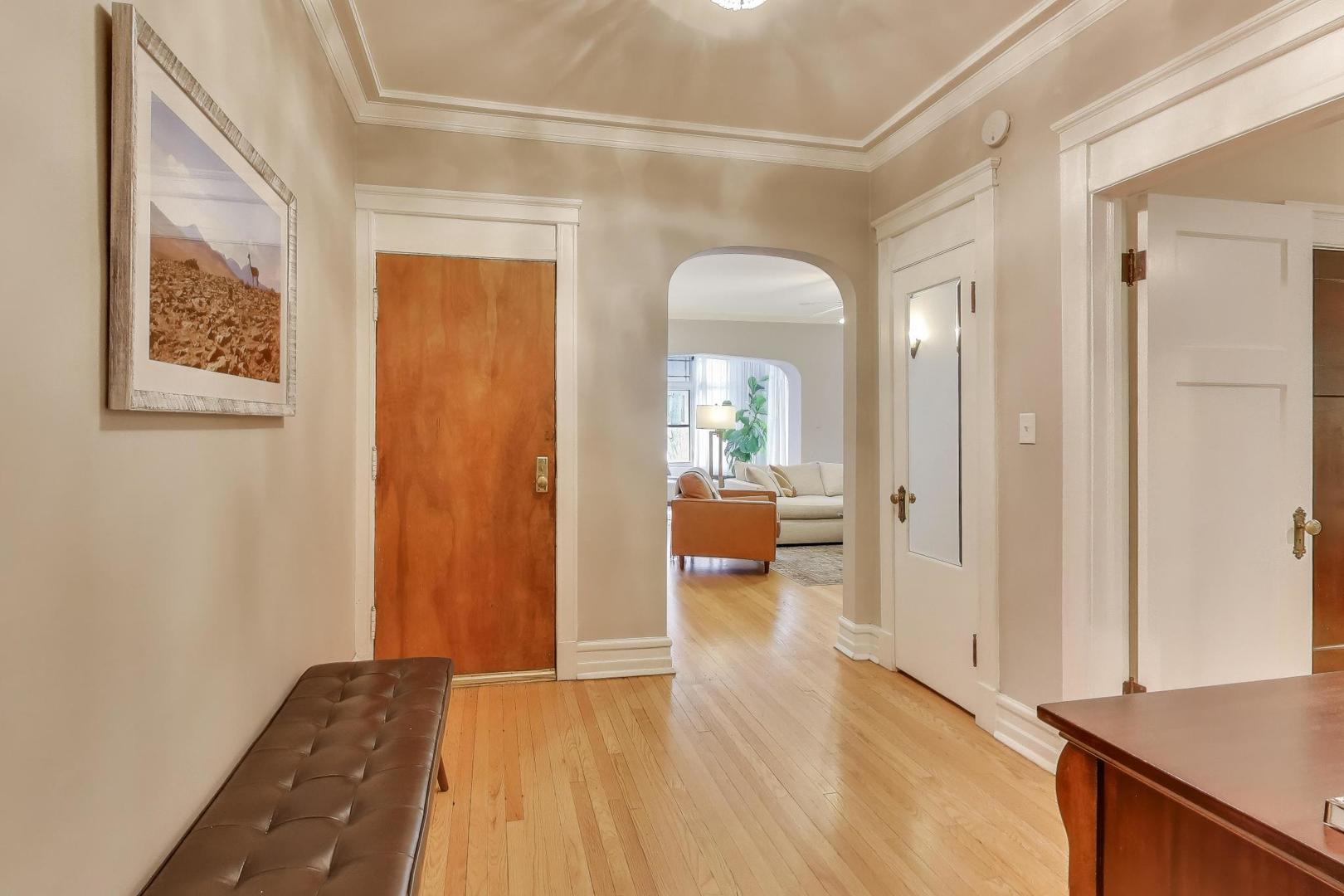 Welcome to 5522 S Everett Ave, a stunning 3-bedroom, 2-bathroom condo offering nearly 2,000 sqft of beautifully appointed living space in the heart of Hyde Park. Situated in a charming turn of the century low-rise building, this condo perfectly blends classic charm and modern upgrades. Lovingly maintained, original hardwood floors flow throughout the spacious 7-room layout, creating a warm and inviting atmosphere that lends itself to both entertaining as well as quiet days at home reading in the front sunroom. The standout fully renovated kitchen features stainless steel appliances including a dishwasher, full range and refrigerator. The 42 inch kitchen cabinets, with custom organized drawers and inserts, quartz countertops and extra large white basin sink show that no expense was spared. Enjoy meals in the adjacent elegant formal dining room with original details not to be missed: the beamed ceiling and original built in buffet. The living area includes a decorative fireplace surrounded by original tile work and built-in shelving, adding a cozy touch to this sophisticated home. The updated bathrooms enhance the home’s appeal with thoughtful, contemporary finishes that mesh both vintage charm and modern convenience. Step out onto the newly built private porch to enjoy a quiet moment or a cup of coffee. Additional conveniences include in-unit laundry with a combo washer/dryer, a built out walk-in pantry and many walk-in closets that provide ample storage within the unit. Additional storage is available in the building’s common area just below as well as a separate full washer and dryer dedicated to the unit for larger loads. Building amenities include a small gym and a common laundry area, offering practical and enjoyable features for daily living. The condo is in a walk-up building, providing easy access without the hassle of waiting for an elevator. Steps from Promontory Point, the park/lake, transportation, restaurants, shopping and the museum.