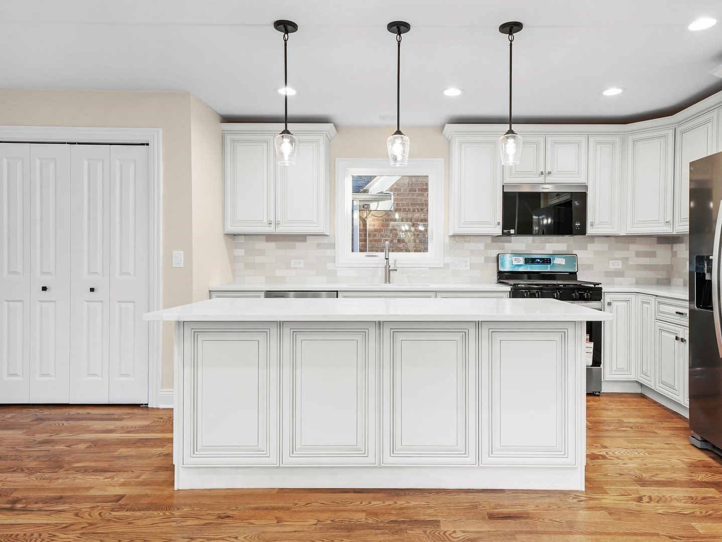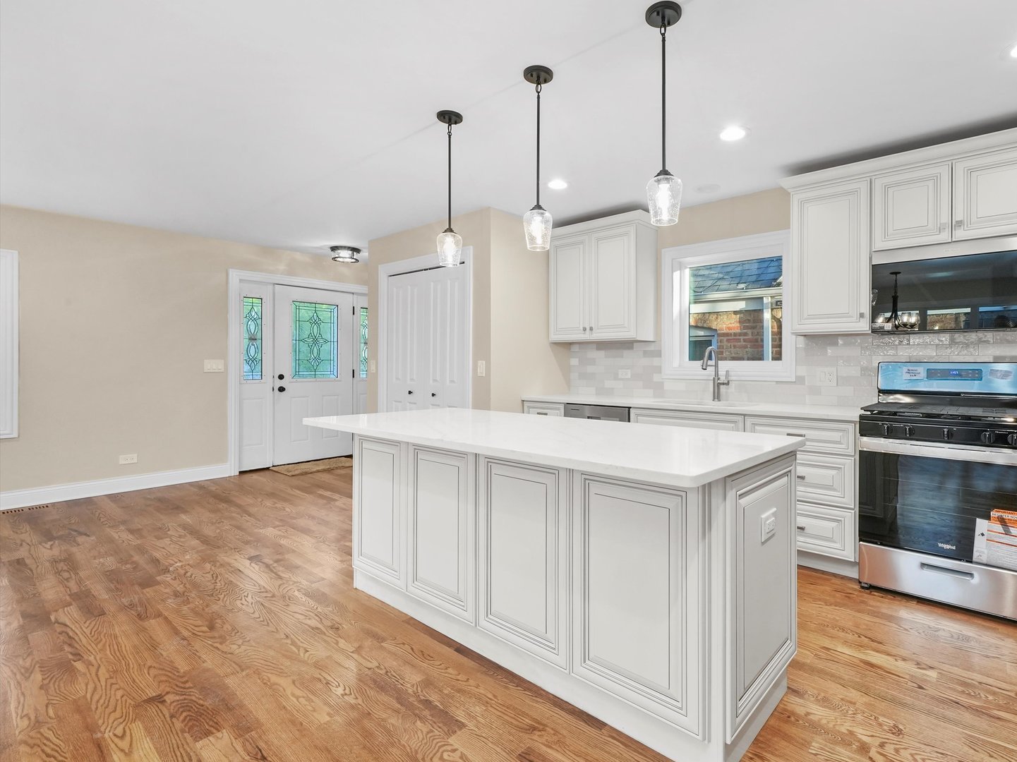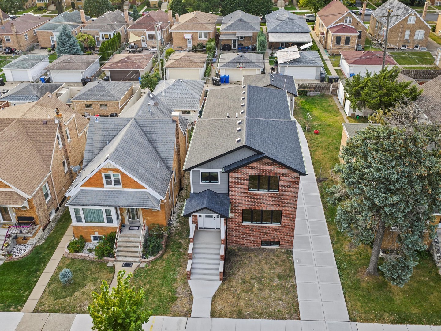 Welcome to this brand-new, all-brick 3-story home with a rare side drive, perfectly located in the heart of Garfield Ridge. Built with precision and quality craftsmanship, this impressive 5-bedroom, 3-bathroom residence blends elegant finishes with modern convenience and thoughtful design. Step inside to discover gleaming hardwood floors throughout, an open-concept layout, and a spacious family room that opens directly to the backyard patio – perfect for entertaining or relaxing. The chef’s kitchen is a true showpiece, featuring a large center island, custom soft-close cabinetry, quartz countertops, and a full stainless-steel appliance suite. The upper level includes a convenient laundry room and a luxurious primary suite offering a walk-in closet, double-sink vanity, soaking tub, and separate shower. All bedrooms are generously sized, providing flexibility for family, guests, or a home office. The finished lower level offers additional living space – ideal for a recreation room, home gym, or extended-family setup. Modern systems include 200-amp electrical service, energy-efficient windows, and high-performance mechanicals throughout. A new concrete side-drive leads to the detached 2-car garage featuring an 8-foot overhead door, designed to accommodate oversized vehicles or SUVs. The newly poured patio and walkways complete this move-in-ready home. Nestled on a quiet, tree-lined block close to parks, schools, shopping, and major transportation, this Garfield Ridge new construction offers the perfect balance of luxury, location, and lifestyle.