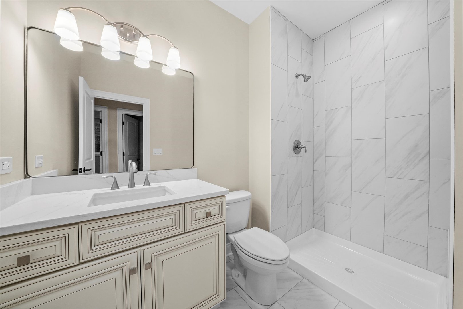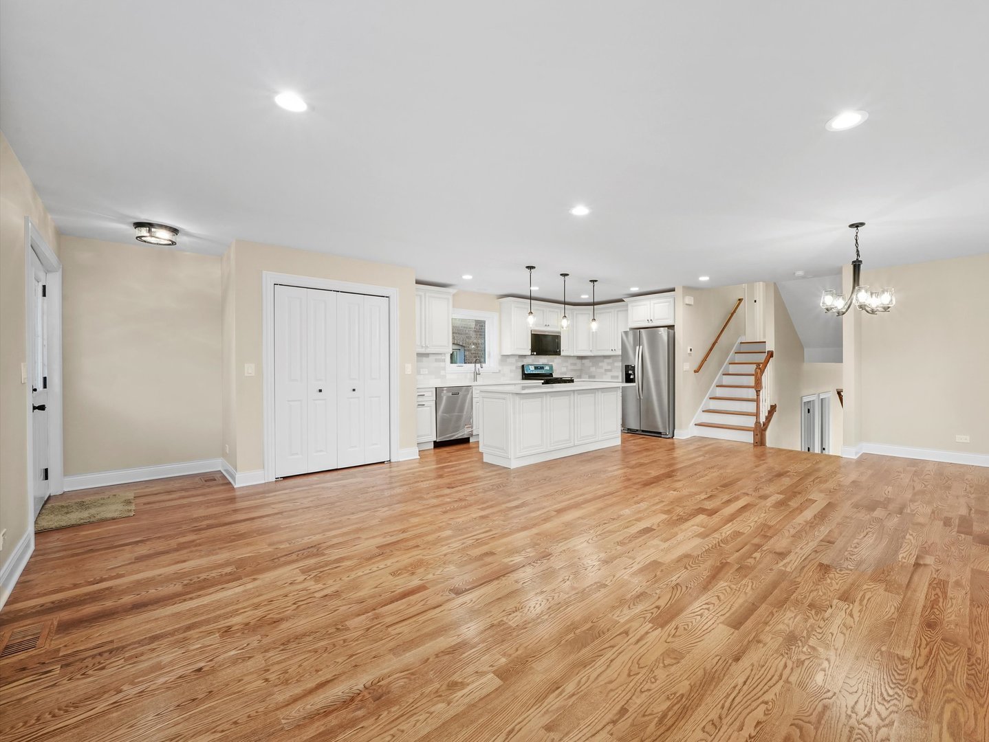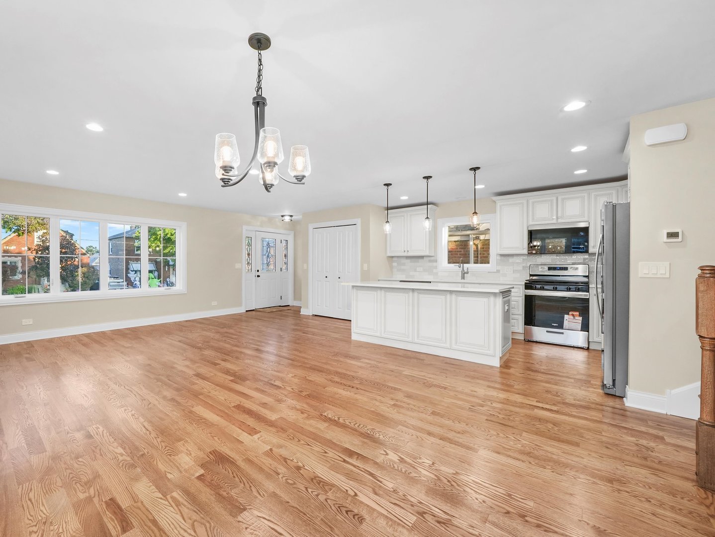 Welcome to this brand-new, all-brick 3-story home with a rare side drive, perfectly located in the heart of Garfield Ridge. Built with precision and quality craftsmanship, this impressive 5-bedroom, 3-bathroom residence blends elegant finishes with modern convenience and thoughtful design. Step inside to discover gleaming hardwood floors throughout, an open-concept layout, and a spacious family room that opens directly to the backyard patio – perfect for entertaining or relaxing. The chef’s kitchen is a true showpiece, featuring a large center island, custom soft-close cabinetry, quartz countertops, and a full stainless-steel appliance suite. The upper level includes a convenient laundry room and a luxurious primary suite offering a walk-in closet, double-sink vanity, soaking tub, and separate shower. All bedrooms are generously sized, providing flexibility for family, guests, or a home office. The finished lower level offers additional living space – ideal for a recreation room, home gym, or extended-family setup. Modern systems include 200-amp electrical service, energy-efficient windows, and high-performance mechanicals throughout. A new concrete side-drive leads to the detached 2-car garage featuring an 8-foot overhead door, designed to accommodate oversized vehicles or SUVs. The newly poured patio and walkways complete this move-in-ready home. Nestled on a quiet, tree-lined block close to parks, schools, shopping, and major transportation, this Garfield Ridge new construction offers the perfect balance of luxury, location, and lifestyle.