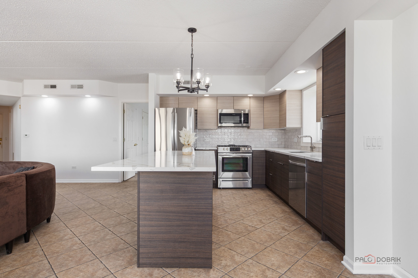 Welcome to this spacious 2-bed, 2-bath condo at Cumberland Crossing an 8th floor corner unit that fills with natural light all day long. The open-concept layout makes the living, dining, and kitchen areas flow perfectly, giving the whole place an easy, modern feel. The kitchen features a large island and plenty of cabinet space, the entire condo has tile flooring throughout, durable, low-maintenance, and great for everyday living. Both bedrooms are generously sized, including a primary suite with its own walk-in closet and private bath. You’ll also love the oversized living room, the separate dining area, and the balcony – perfect for morning coffee or unwinding after work. Heated indoor parking spot and in unit washer and dryer for added convenience. Location is a huge perk here: quick access to the Blue Line, public transportation, and major expressways makes commuting simple. Shopping, restaurants, parks, and O’Hare are all nearby. A bright, easy-to-love condo in a super convenient spot-come check it out!