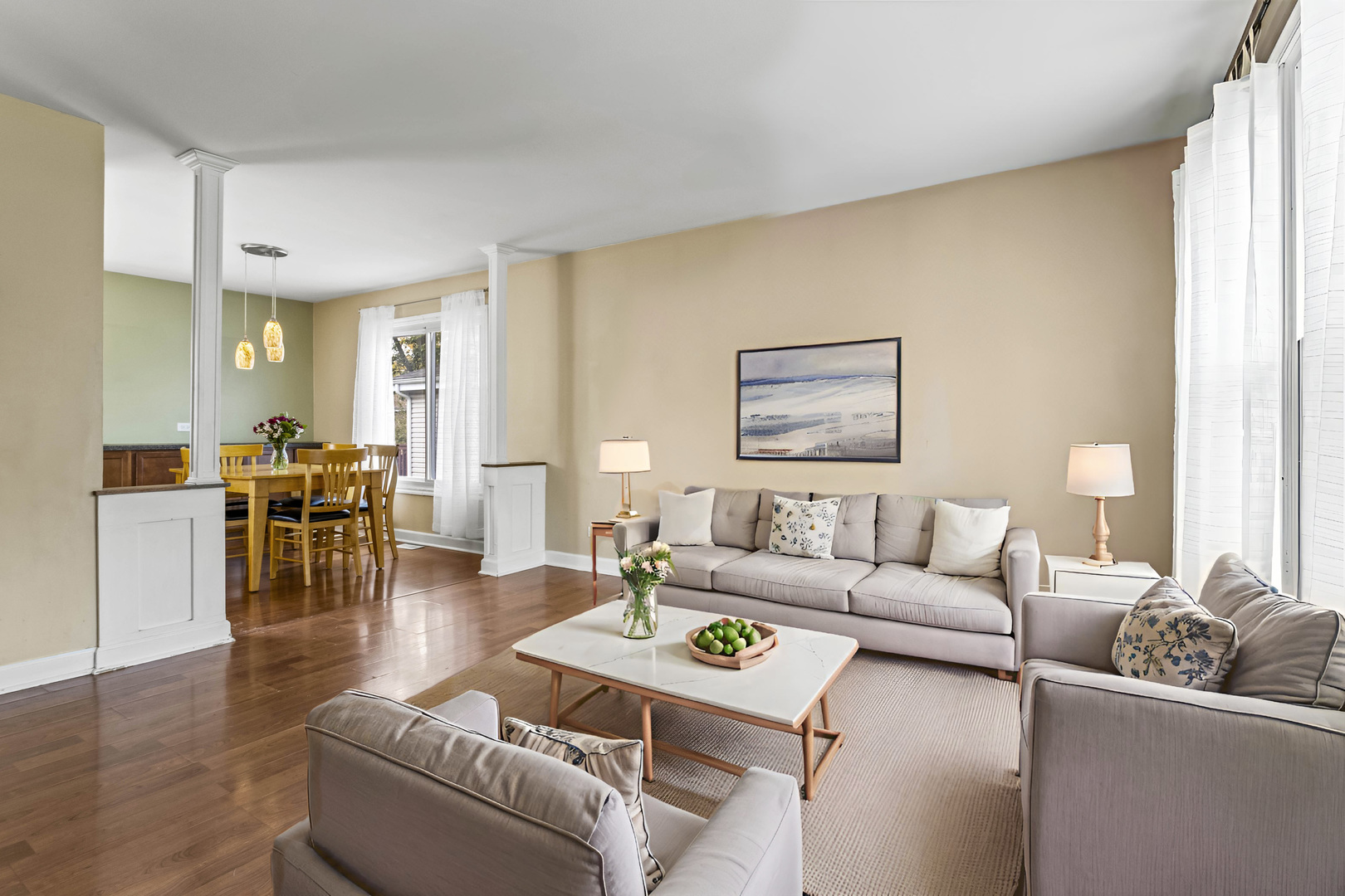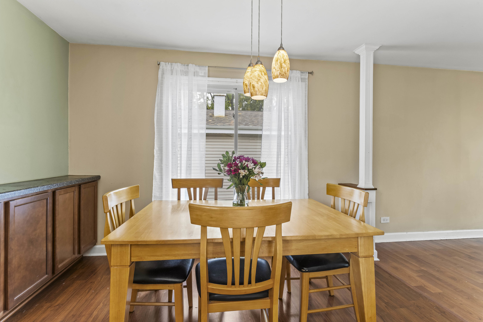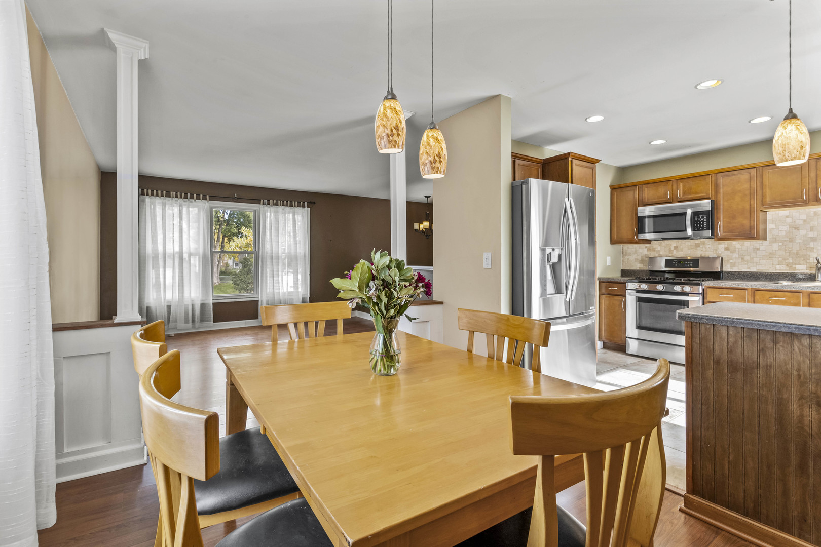This charming raised ranch in the sought-after Indian Oaks subdivision is enhanced by picturesque, well maintained landscaping that beautifully frames the exterior. The welcoming, comfortable floor plan features three bedrooms, two full bathrooms and a finished, walk-out lower-level. The inviting living room flows into the dining area, complete with a full wall of lower cabinetry and counter space perfect for serving and entertaining. The highly functional kitchen features dark wood stained cabinets, stainless steel appliances, abundant counter space, modern pendent lights and access to the deck. Three spacious bedrooms each feature ceiling fans for comfort and generous closets provide ample storage. An updated bathroom featuring a large wood vanity with double sinks, granite counters, and a shower/tub combo. You will enjoy the recently updated WALK-OUT lower-level family room with luxury vinyl floors, canned lighting and access to the backyard. A full bathroom and laundry room complete the lower-level. Relax outdoors on the spacious deck or patio overlooking the fully fenced backyard, offering both privacy and security. The white privacy fence was installed three years ago. Windows (2018), concrete driveway (2020). New drapes in the living/dining rooms and kitchen (2025). 2 car, attached garage. Wyze video doorbell and a Google nest thermostat. Prime location close to schools, shopping, restaurants and expressways. Picturesque lot and great location – don’t miss out! Price reflects need for some TLC.