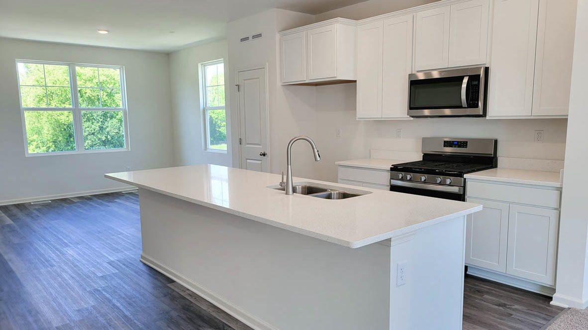 Find your way to 561 Yosemite Way in Mundelein, Illinois, a modern new townhome in our Townes at Oak Creek community. This new construction townhome is ready for you February 2026! Homesite includes a fully sodded yard with landscaping as well as snow removal in the wintertime. This Gregory townhome plan offers 1798 square feet of living space with 3 bedrooms, 2.5 baths, and a finished flex room. As you step inside the home you enter on the ground level and it includes a fully finished flex room, perfect for a home office or playroom. Walking up the stairs to the main level you will find this home’s open concept living with 9-foot ceilings and luxury vinyl plank flooring throughout the kitchen, dining, family room and bathrooms. The expansive kitchen features a large island that is ideal for everyday living and overlooks both the front dining and back great room areas, making it the perfect space to entertain. Additionally, your kitchen includes Quartz countertops, 42″ designer cabinetry with soft close doors and crown molding, and stainless-steel appliances. Arriving at the top floor, you’ll find the primary suite, secondary bedrooms with a full second bath, linen closet, and laundry room. The spacious primary bedroom suite includes a large walk-in closet with a window and a drywall bench and connecting en-suite bathroom, featuring a walk-in shower. Our Chicago homes include our America’s Smart Home Technology. Photos are of a similar home. Actual home built may vary.