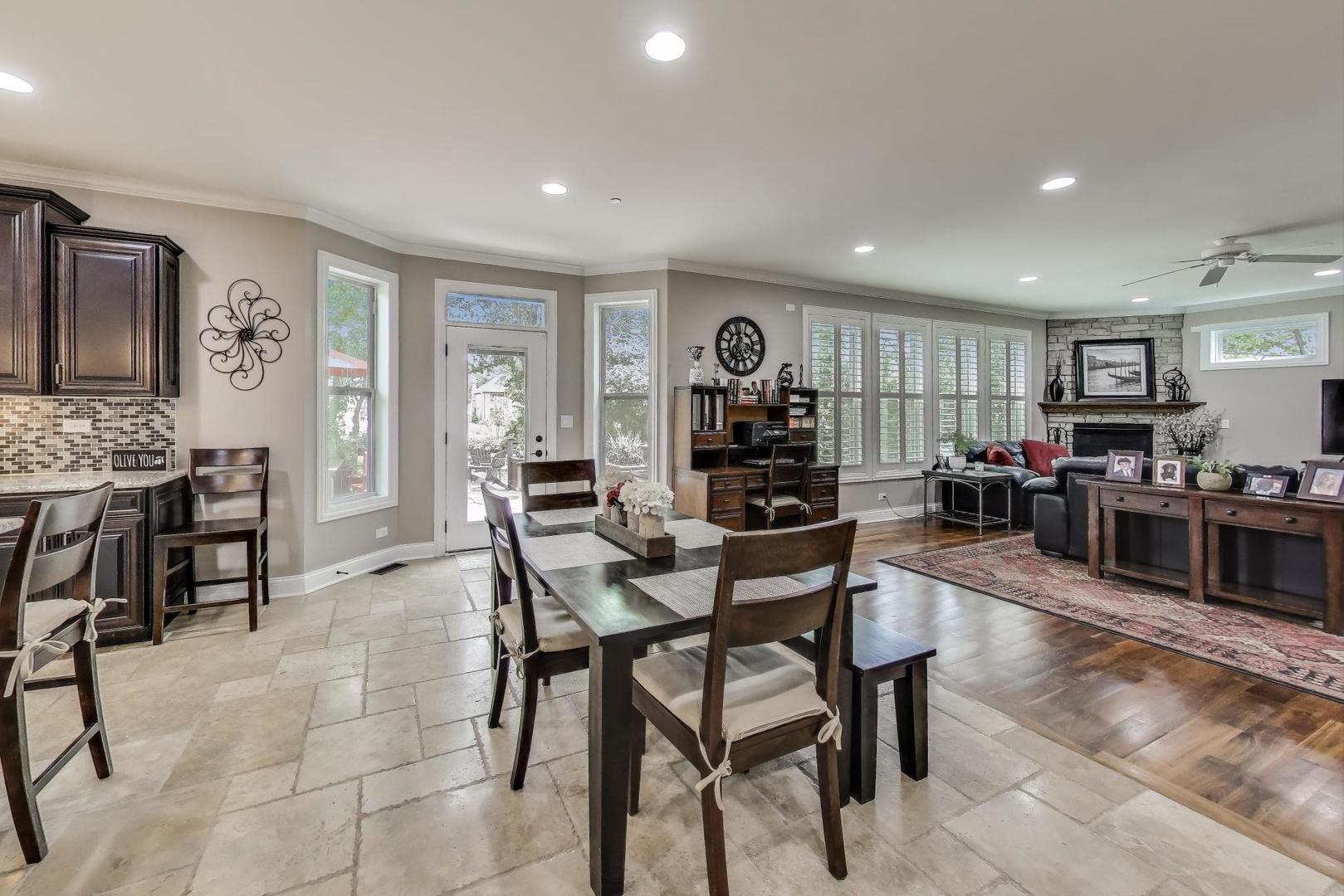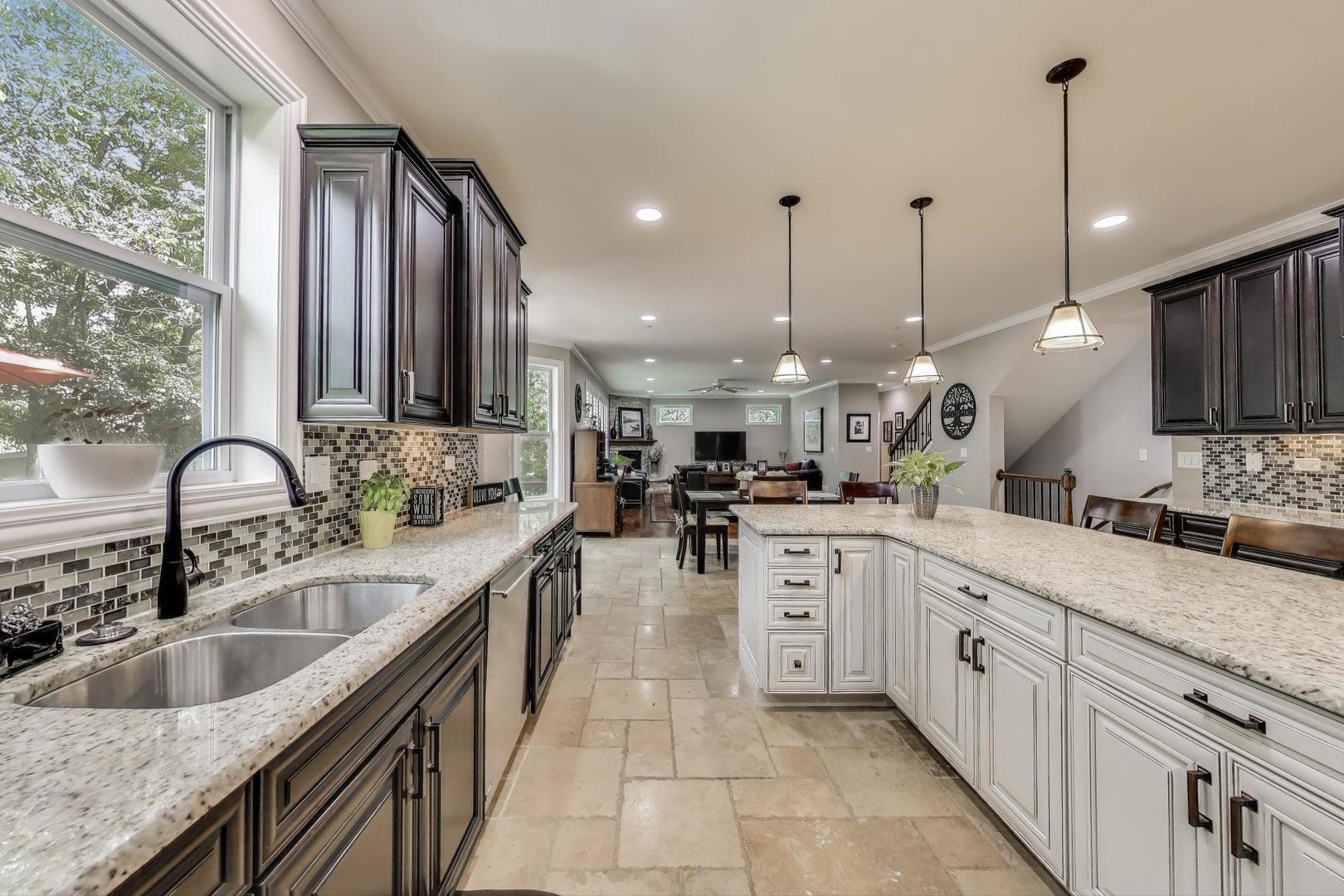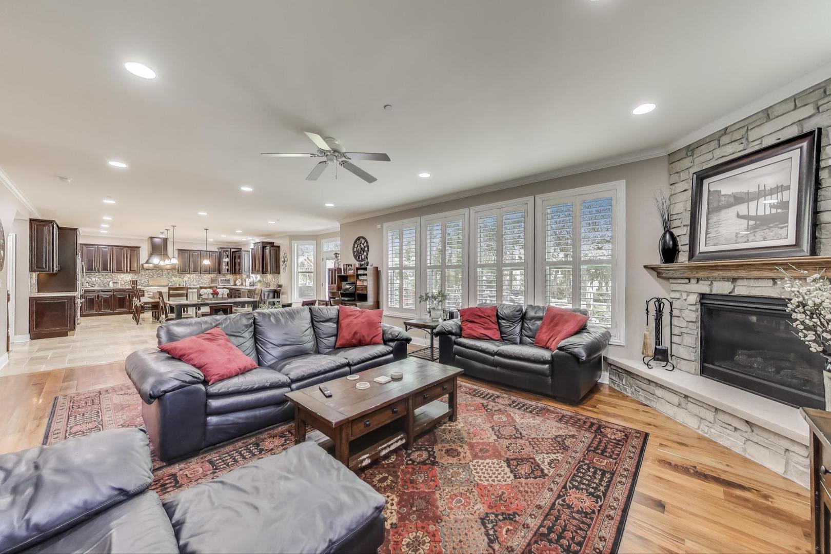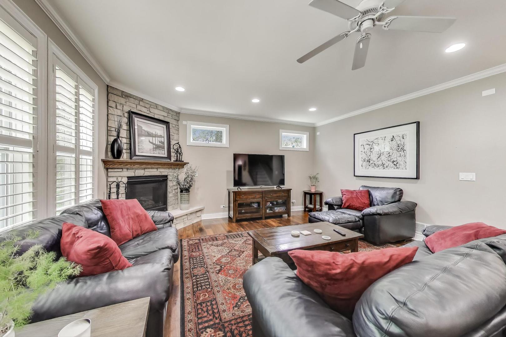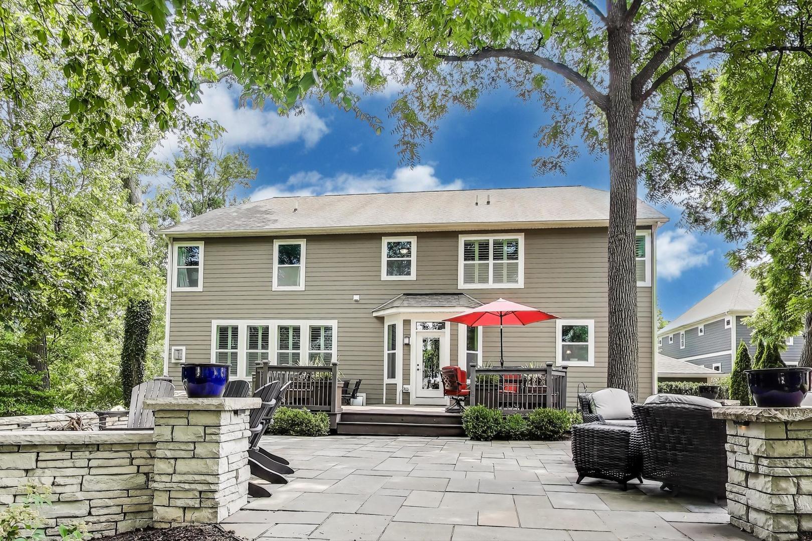 East Coast elegance meets Midwestern charm in this beautifully crafted shingle-style residence, ideally located just blocks from vibrant downtown amenities-including restaurants, boutique shops, the train, and top-rated schools. This one owner home, built in 2014, 5,700 sq.ft approx. was thoughtfully designed for modern living, featuring an open-concept main floor and a spacious backyard ideal for entertaining. From the inviting front porch to the moment you step through the front door, you’ll be struck by the attention to architectural detail throughout. The heart of the home is a stunning family room anchored by a stone fireplace, seamlessly flowing into the kitchen and dining area. Expansive windows throughout flood the interior with natural light, creating a warm and welcoming atmosphere. Upstairs, the second level offers generously sized bedrooms, each with excellent closet space and access to multiple bathrooms and a well appointed laundry room. The luxurious primary suite is tucked away in its own private wing and features two walk-in closets, and a spa-inspired bathroom. The fully finished lower level is equally impressive, offering a custom wet bar, stylish ambient lighting, a fifth bedroom, and abundant storage. Step outside to a beautifully landscaped backyard complete with a deck and slate patio-perfect for outdoor gatherings. Additional highlights include an attached three-car garage with a fourth tandem space, offering ample room for vehicles and storage. This exceptional home combines timeless style, modern comforts, and a highly desirable location. A must-see property for discerning buyers.