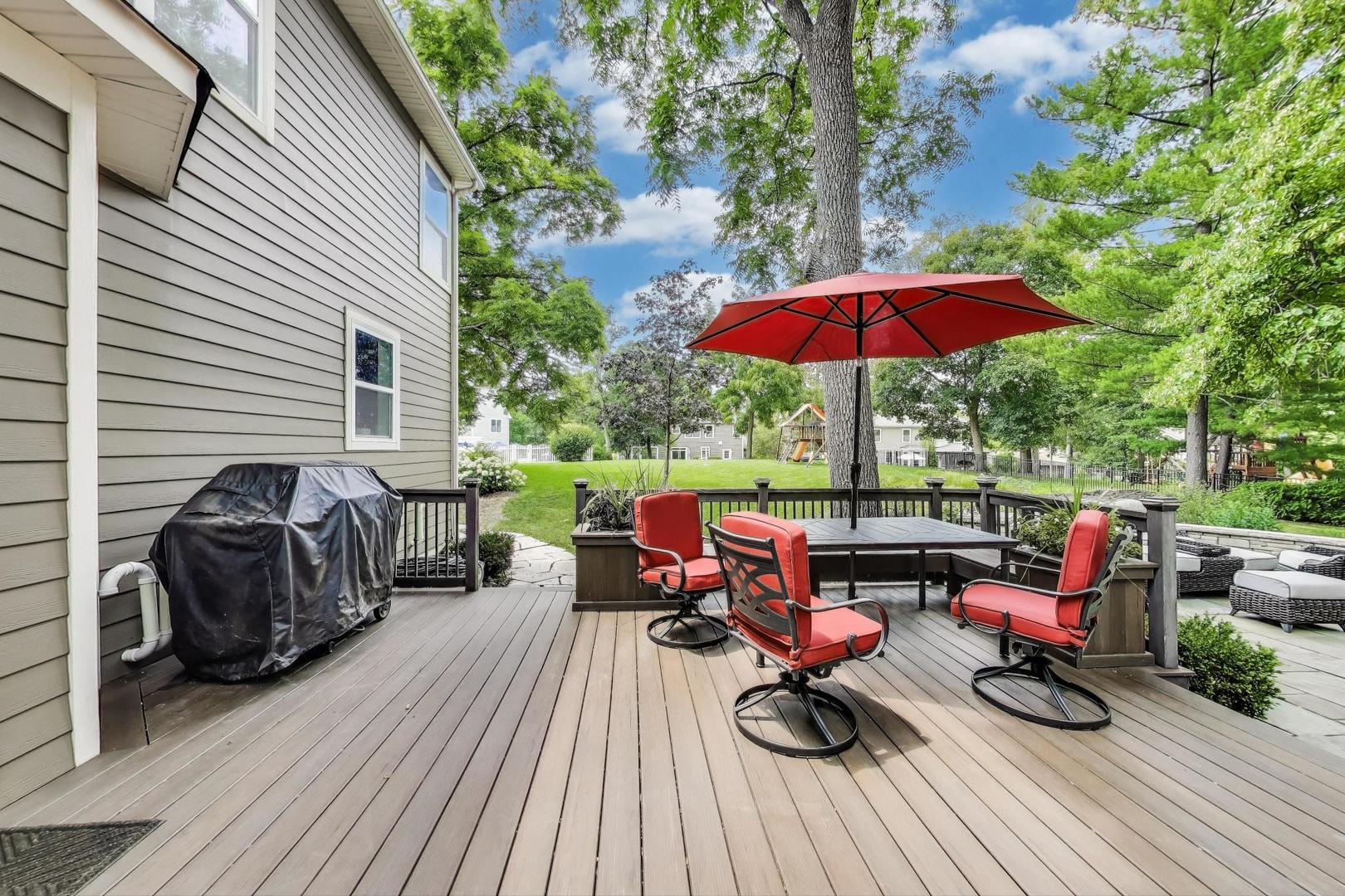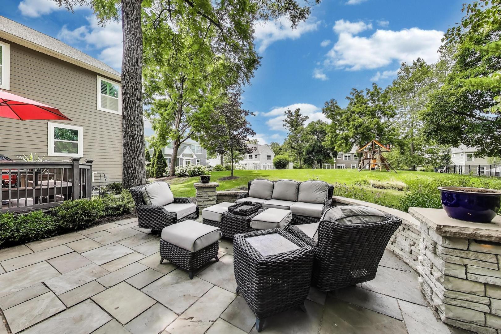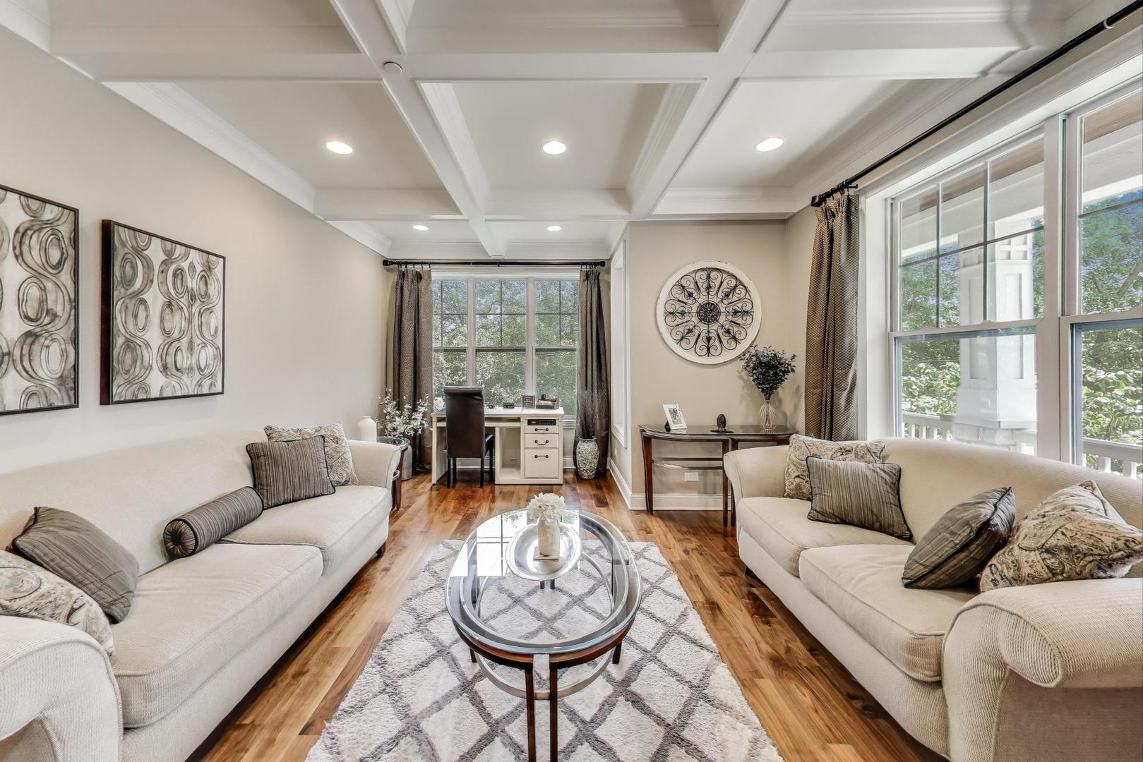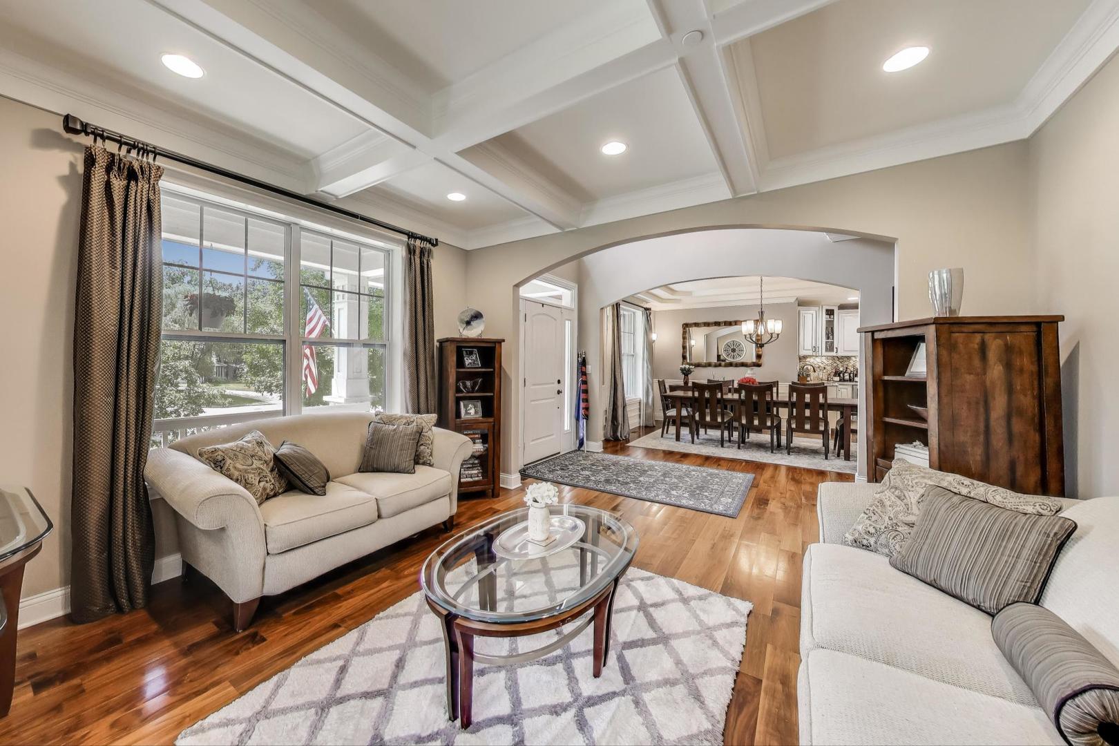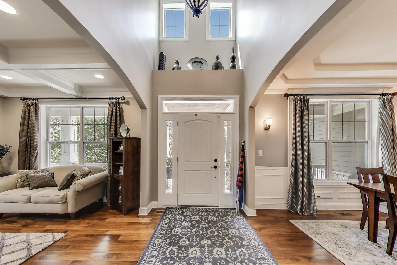 East Coast elegance meets Midwestern charm in this beautifully crafted shingle-style residence, ideally located just blocks from vibrant downtown amenities-including restaurants, boutique shops, the train, and top-rated schools. This one owner home, built in 2014, 5,700 sq.ft approx. was thoughtfully designed for modern living, featuring an open-concept main floor and a spacious backyard ideal for entertaining. From the inviting front porch to the moment you step through the front door, you’ll be struck by the attention to architectural detail throughout. The heart of the home is a stunning family room anchored by a stone fireplace, seamlessly flowing into the kitchen and dining area. Expansive windows throughout flood the interior with natural light, creating a warm and welcoming atmosphere. Upstairs, the second level offers generously sized bedrooms, each with excellent closet space and access to multiple bathrooms and a well appointed laundry room. The luxurious primary suite is tucked away in its own private wing and features two walk-in closets, and a spa-inspired bathroom. The fully finished lower level is equally impressive, offering a custom wet bar, stylish ambient lighting, a fifth bedroom, and abundant storage. Step outside to a beautifully landscaped backyard complete with a deck and slate patio-perfect for outdoor gatherings. Additional highlights include an attached three-car garage with a fourth tandem space, offering ample room for vehicles and storage. This exceptional home combines timeless style, modern comforts, and a highly desirable location. A must-see property for discerning buyers.