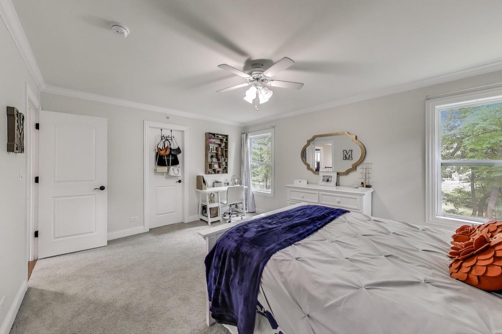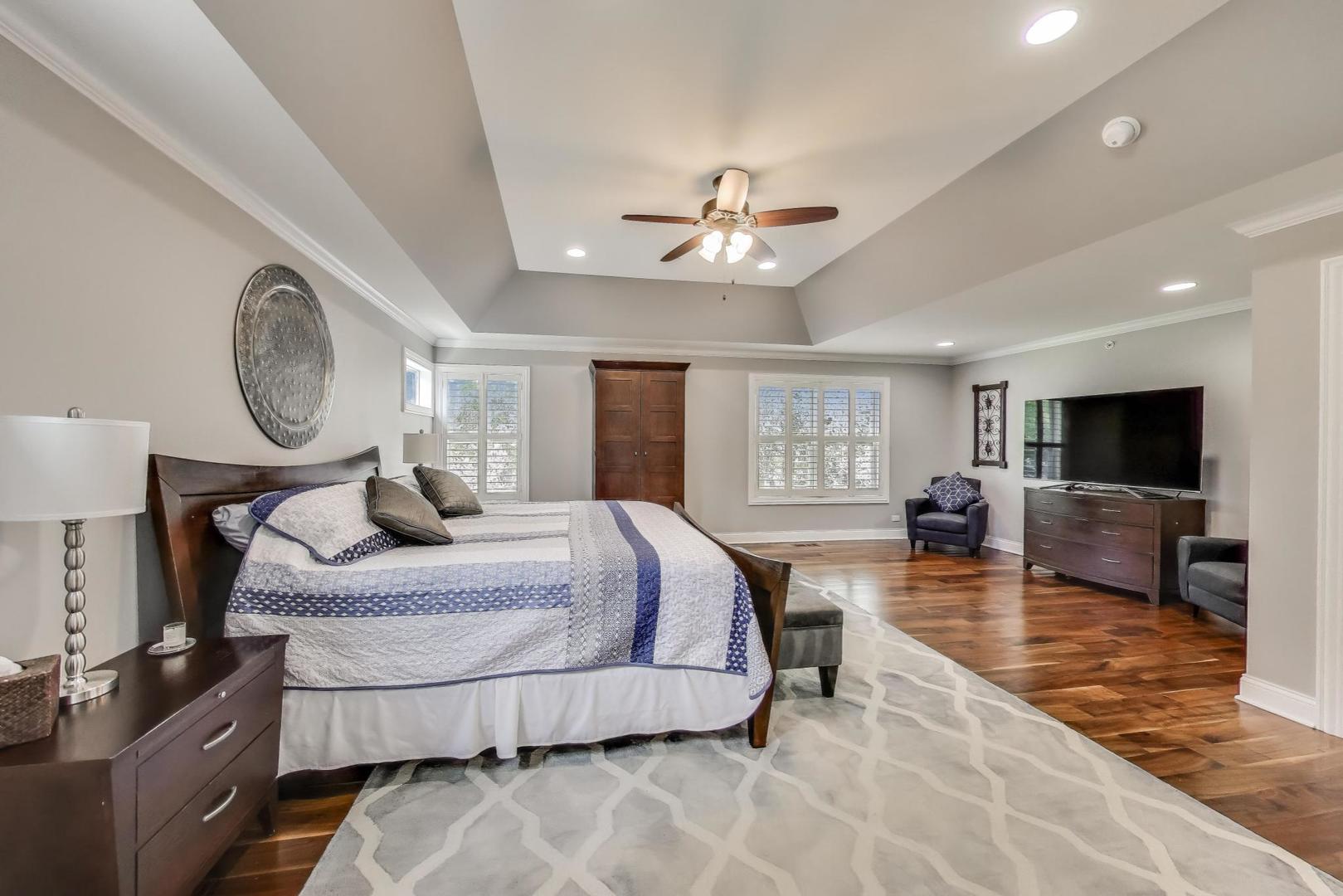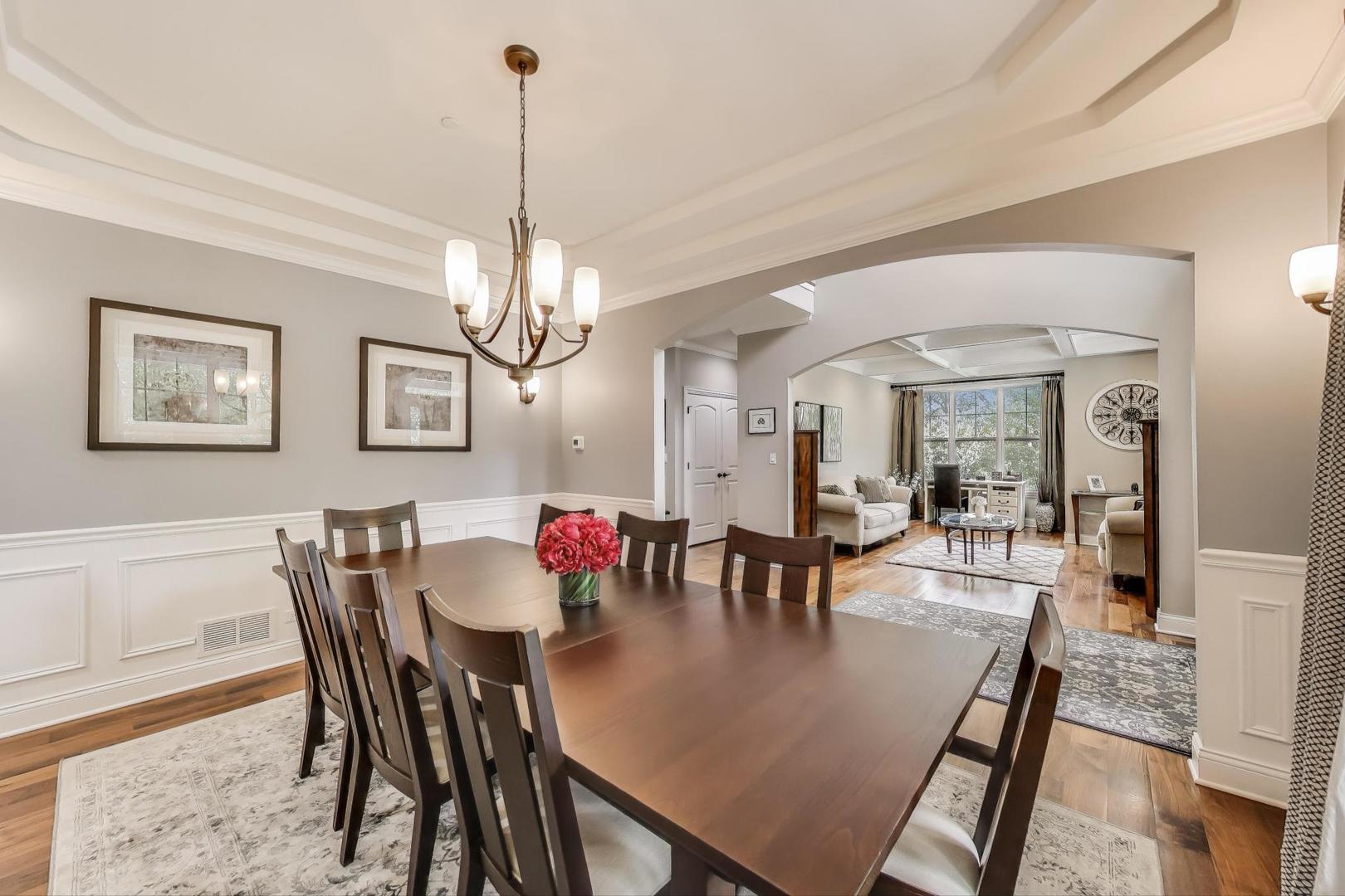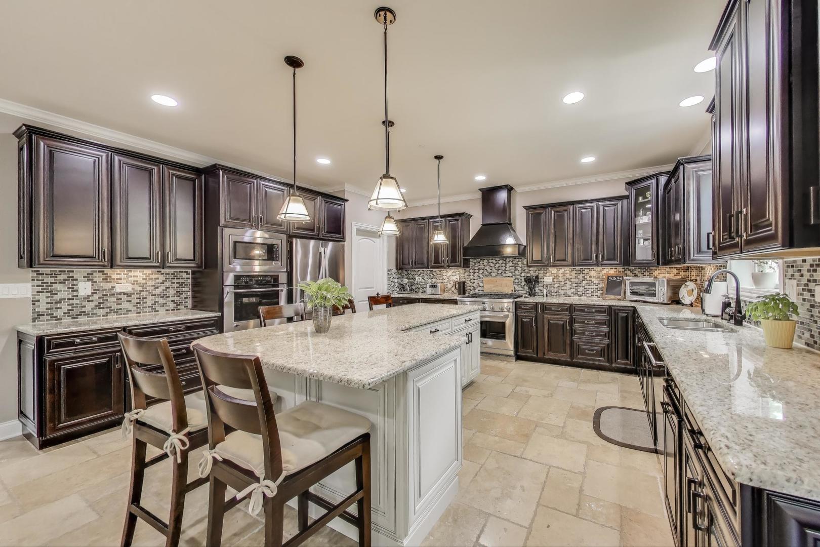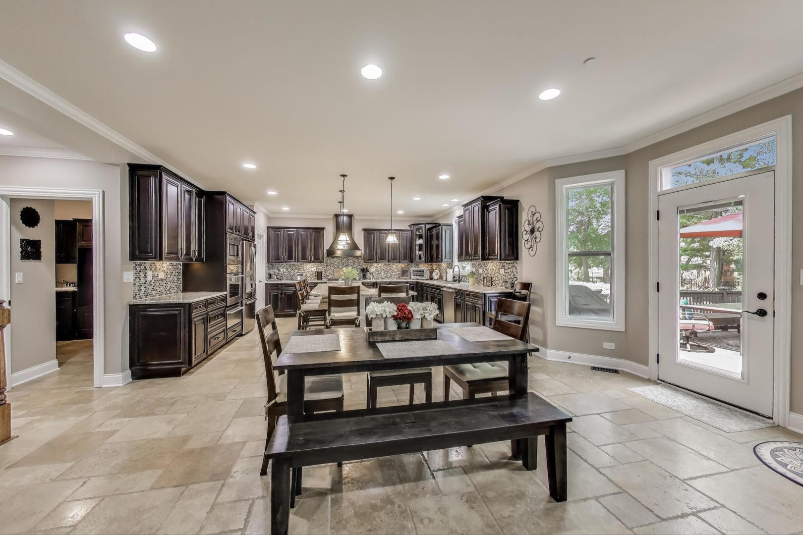 East Coast elegance meets Midwestern charm in this beautifully crafted shingle-style residence, ideally located just blocks from vibrant downtown amenities-including restaurants, boutique shops, the train, and top-rated schools. This one owner home, built in 2014, 5,700 sq.ft approx. was thoughtfully designed for modern living, featuring an open-concept main floor and a spacious backyard ideal for entertaining. From the inviting front porch to the moment you step through the front door, you’ll be struck by the attention to architectural detail throughout. The heart of the home is a stunning family room anchored by a stone fireplace, seamlessly flowing into the kitchen and dining area. Expansive windows throughout flood the interior with natural light, creating a warm and welcoming atmosphere. Upstairs, the second level offers generously sized bedrooms, each with excellent closet space and access to multiple bathrooms and a well appointed laundry room. The luxurious primary suite is tucked away in its own private wing and features two walk-in closets, and a spa-inspired bathroom. The fully finished lower level is equally impressive, offering a custom wet bar, stylish ambient lighting, a fifth bedroom, and abundant storage. Step outside to a beautifully landscaped backyard complete with a deck and slate patio-perfect for outdoor gatherings. Additional highlights include an attached three-car garage with a fourth tandem space, offering ample room for vehicles and storage. This exceptional home combines timeless style, modern comforts, and a highly desirable location. A must-see property for discerning buyers.