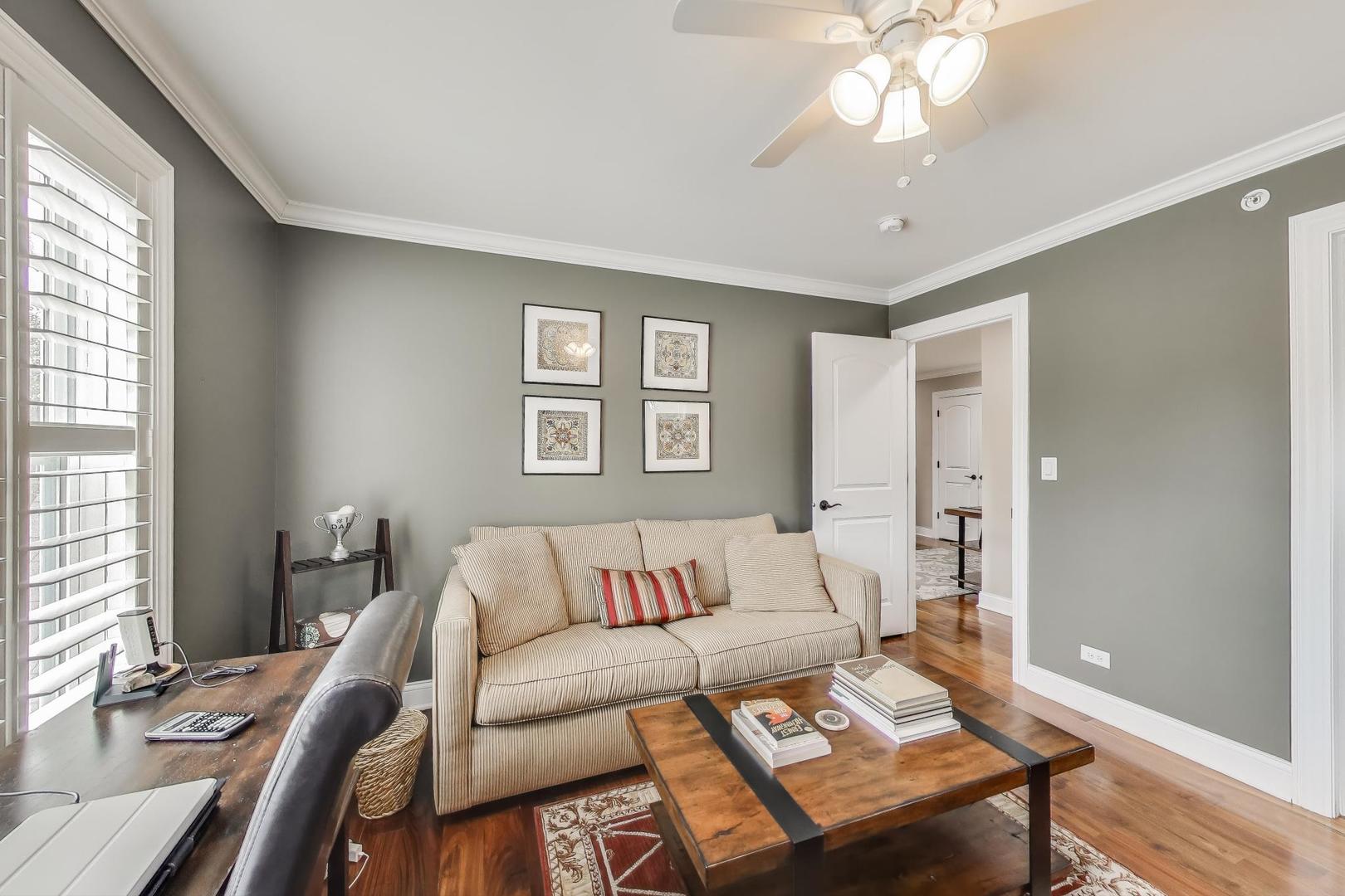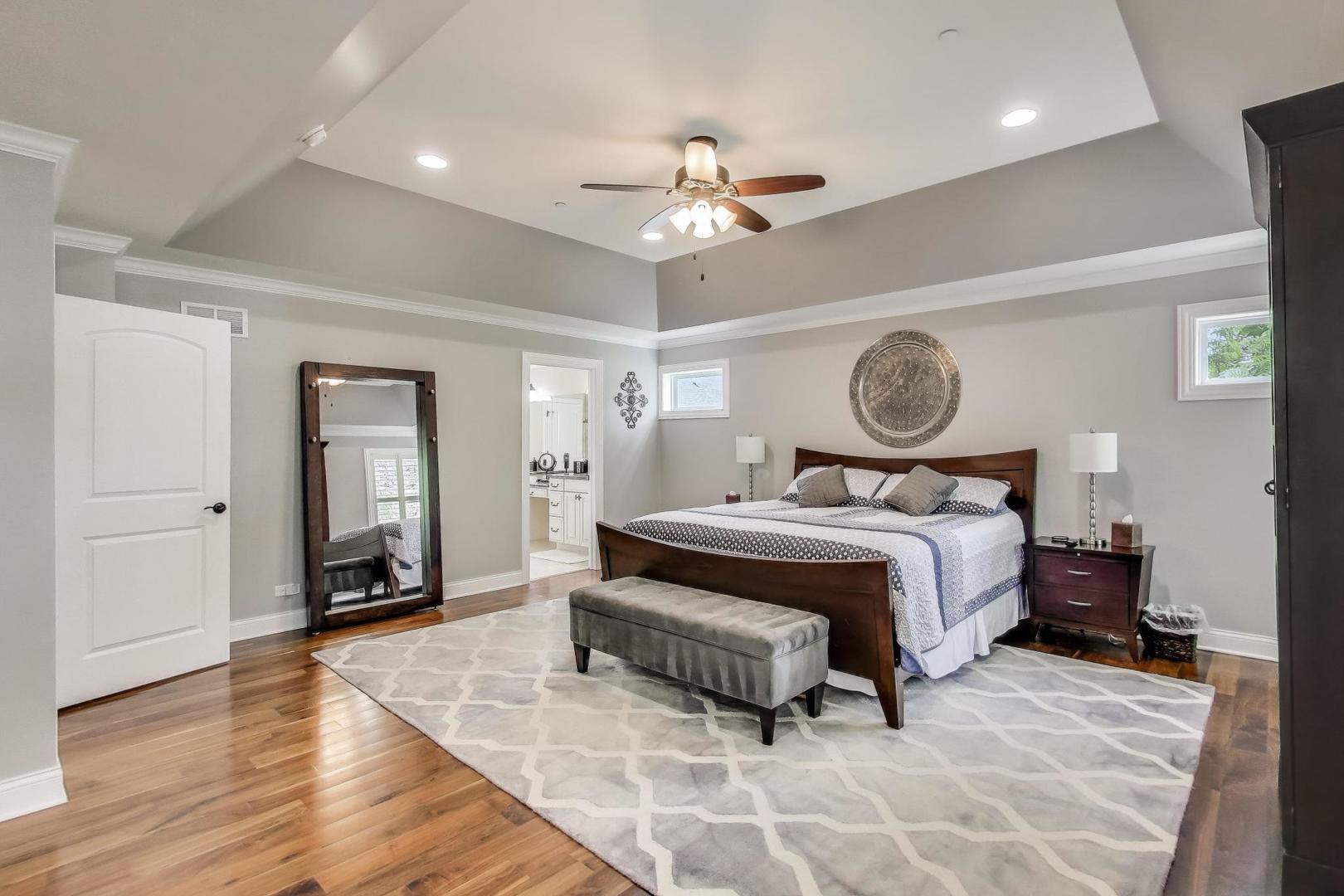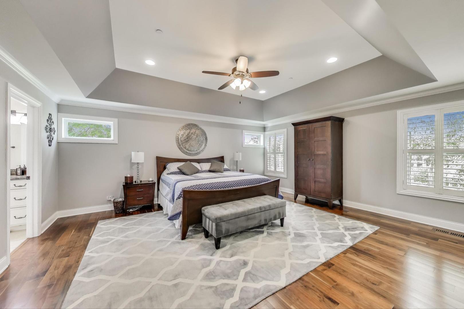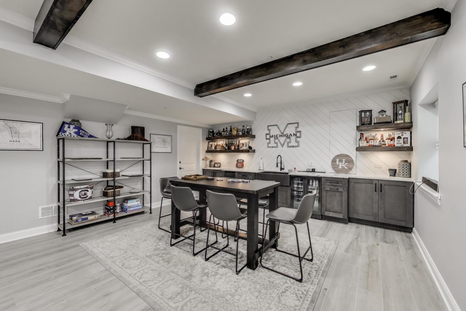 East Coast elegance meets Midwestern charm in this beautifully crafted shingle-style residence, ideally located just blocks from vibrant downtown amenities-including restaurants, boutique shops, the train, and top-rated schools. This one owner home, built in 2014, 5,700 sq.ft approx. was thoughtfully designed for modern living, featuring an open-concept main floor and a spacious backyard ideal for entertaining. From the inviting front porch to the moment you step through the front door, you’ll be struck by the attention to architectural detail throughout. The heart of the home is a stunning family room anchored by a stone fireplace, seamlessly flowing into the kitchen and dining area. Expansive windows throughout flood the interior with natural light, creating a warm and welcoming atmosphere. Upstairs, the second level offers generously sized bedrooms, each with excellent closet space and access to multiple bathrooms and a well appointed laundry room. The luxurious primary suite is tucked away in its own private wing and features two walk-in closets, and a spa-inspired bathroom. The fully finished lower level is equally impressive, offering a custom wet bar, stylish ambient lighting, a fifth bedroom, and abundant storage. Step outside to a beautifully landscaped backyard complete with a deck and slate patio-perfect for outdoor gatherings. Additional highlights include an attached three-car garage with a fourth tandem space, offering ample room for vehicles and storage. This exceptional home combines timeless style, modern comforts, and a highly desirable location. A must-see property for discerning buyers.