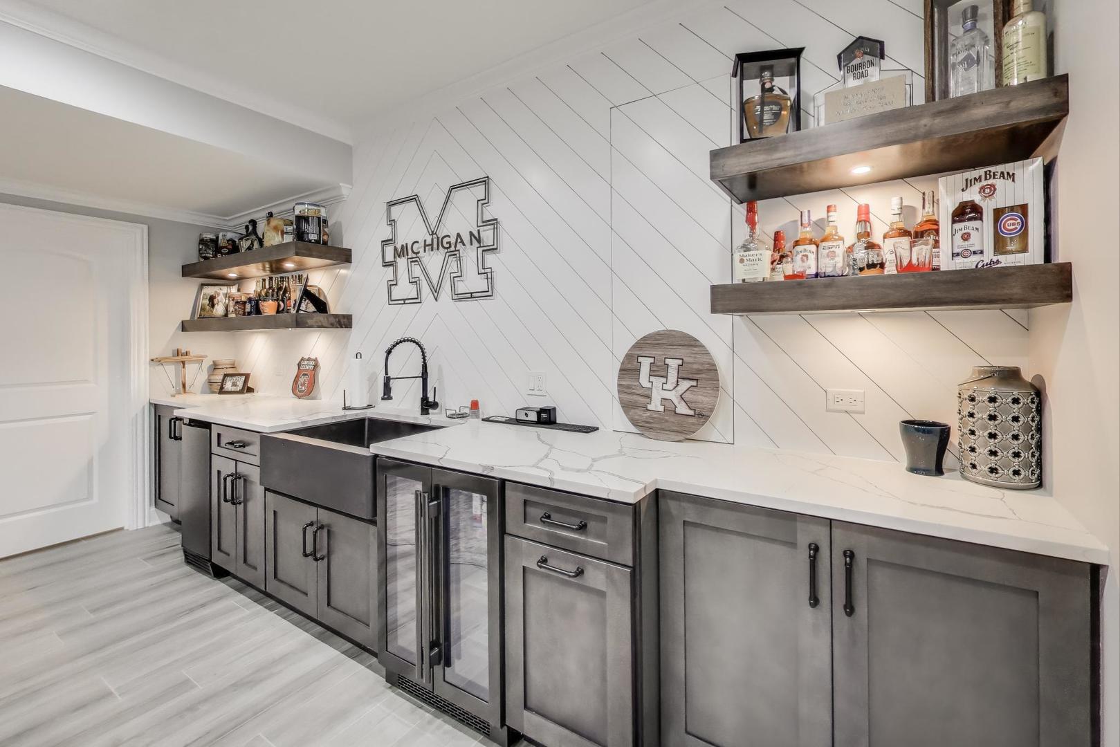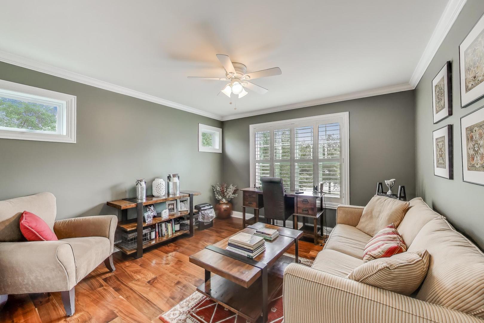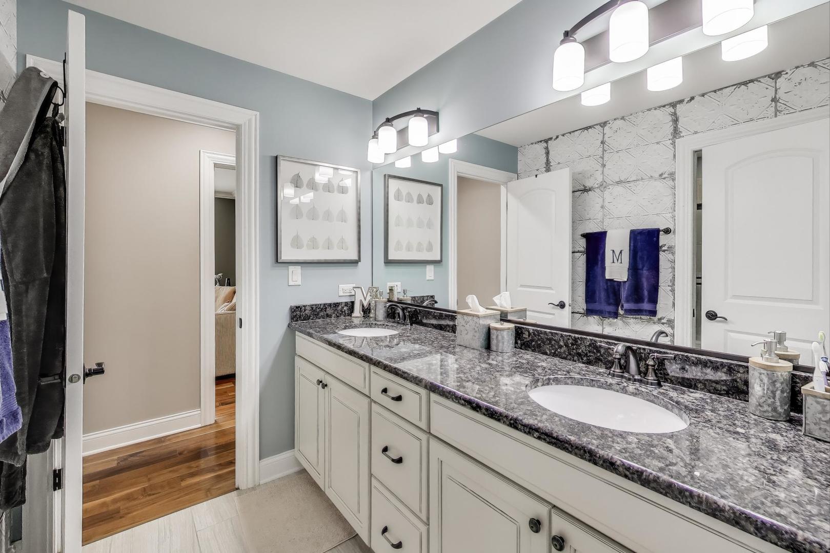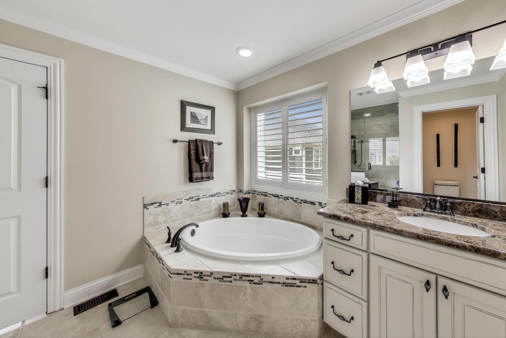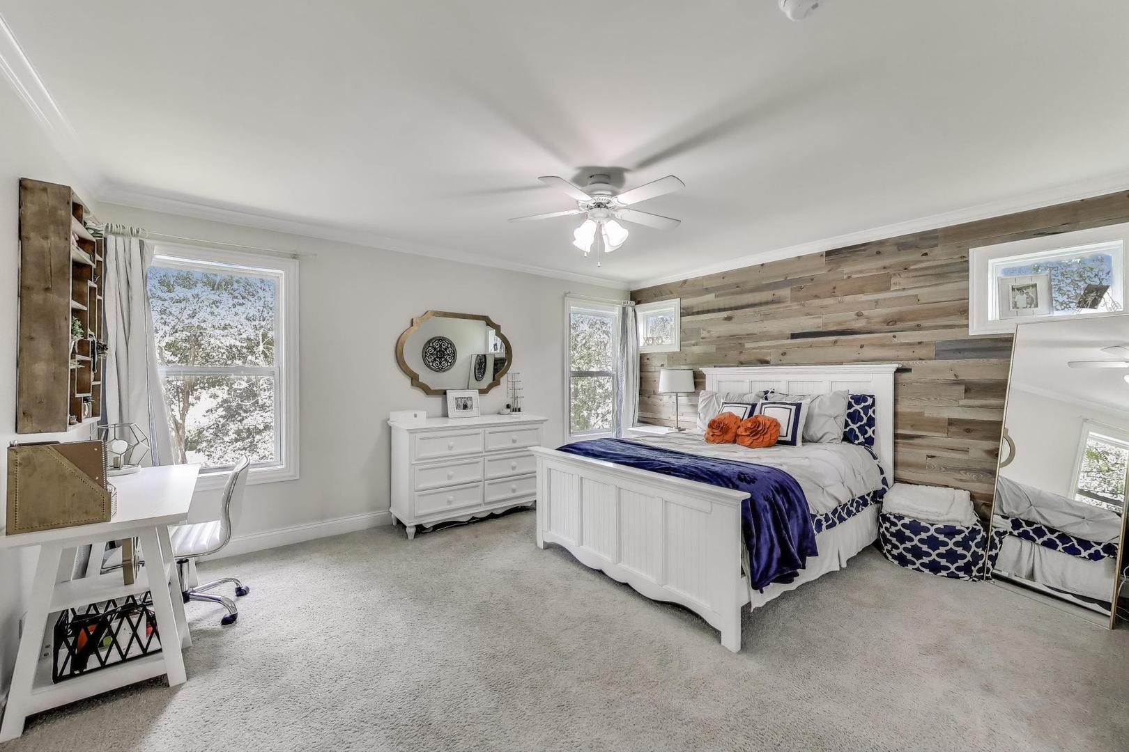 East Coast elegance meets Midwestern charm in this beautifully crafted shingle-style residence, ideally located just blocks from vibrant downtown amenities-including restaurants, boutique shops, the train, and top-rated schools. This one owner home, built in 2014, 5,700 sq.ft approx. was thoughtfully designed for modern living, featuring an open-concept main floor and a spacious backyard ideal for entertaining. From the inviting front porch to the moment you step through the front door, you’ll be struck by the attention to architectural detail throughout. The heart of the home is a stunning family room anchored by a stone fireplace, seamlessly flowing into the kitchen and dining area. Expansive windows throughout flood the interior with natural light, creating a warm and welcoming atmosphere. Upstairs, the second level offers generously sized bedrooms, each with excellent closet space and access to multiple bathrooms and a well appointed laundry room. The luxurious primary suite is tucked away in its own private wing and features two walk-in closets, and a spa-inspired bathroom. The fully finished lower level is equally impressive, offering a custom wet bar, stylish ambient lighting, a fifth bedroom, and abundant storage. Step outside to a beautifully landscaped backyard complete with a deck and slate patio-perfect for outdoor gatherings. Additional highlights include an attached three-car garage with a fourth tandem space, offering ample room for vehicles and storage. This exceptional home combines timeless style, modern comforts, and a highly desirable location. A must-see property for discerning buyers.