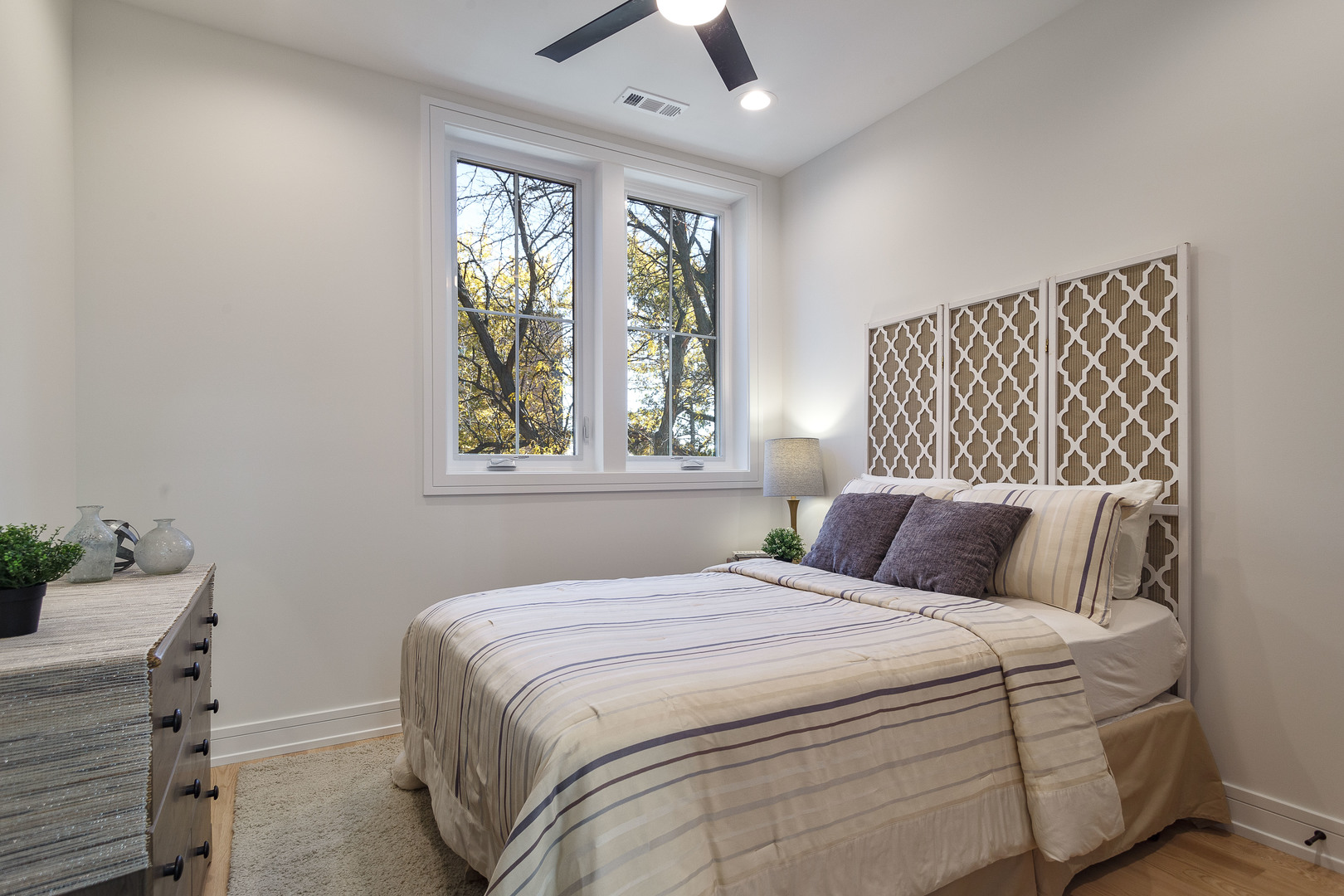 ONLY two homes left in our most recent development on Chicago’s northwest side, Serene4 in beautiful Peterson Park! Impeccable new construction single-family home by expert builder on a 30′ lot. Great curb appeal with wood grain board and batten facade highlighted by stone, Hardie board siding, black windows, and a modern front entry door. Spacious floor plan with 5 bedrooms and 3.1 baths. Combined living/dining room features large windows offering ample natural light and gas fireplace with floor to ceiling surround. Beautiful oak hardwood flooring throughout main and upper level. Chef quality kitchen perfect for entertaining equipped with professional Thermador appliances, island with bar seating, custom cabinetry, quartz counters, large pantry, and breakfast area. Adjoining family room with custom media center, coffered ceiling, and large windows overlooking the backyard. Rear mudroom with built-in bench. Spacious primary bedroom includes two walk-in closets with custom organizers, and spa like ensuite bath with freestanding soaking tub, frameless glass shower, dual vanities, toilet room, and heated flooring. Three additional bedrooms, guest bath with tub, dual sinks, and heated flooring, and laundry room with sink complete the upper level. Finished basement with radiant heated flooring throughout includes recreation room with wet bar featuring beverage center, 5th bedroom, full bath, second laundry hook-up, storage space, and mechanicals. Every detail has been considered; high end fixtures and finishes, statement lighting, 8′ doors, custom ceiling details, pre-wiring for speakers and security cameras, built-out closets and pantry, skylights, and much more. Fully enclosed yard with security intercom + rear stamped concrete patio and detached extra-wide 25′ two-car garage. Located in beautiful Peterson Park close to outdoor recreation, shopping, restaurants, and conveniences + other great neighborhoods like Andersonville and Lincoln Square! Photos are from the model home which has comparable floor plan and finishes. Estimated completion early February.