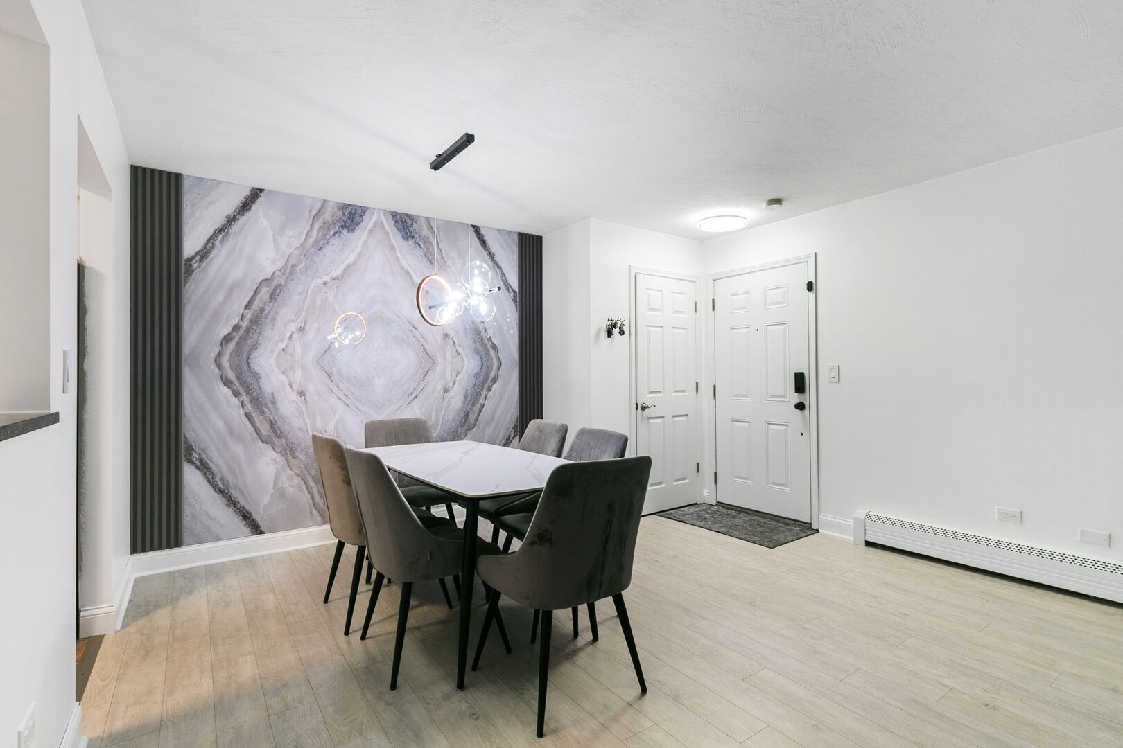 Bright and inviting second floor unit with an open modern layout, featuring a stylish white kitchen with granite countertops and stainless steel appliances. This investor friendly home offers two spacious bedrooms, including an oversized master bedroom, plus two full bathrooms with jacuzzi and bathtub. Enjoy the convenience of an in unit washer and dryer, newer windows, and generous storage. A private garage is also included. The location is ideal, close to major highways and key intersections, with access to top rated schools. Move in ready and perfect for both homeowners and investors.