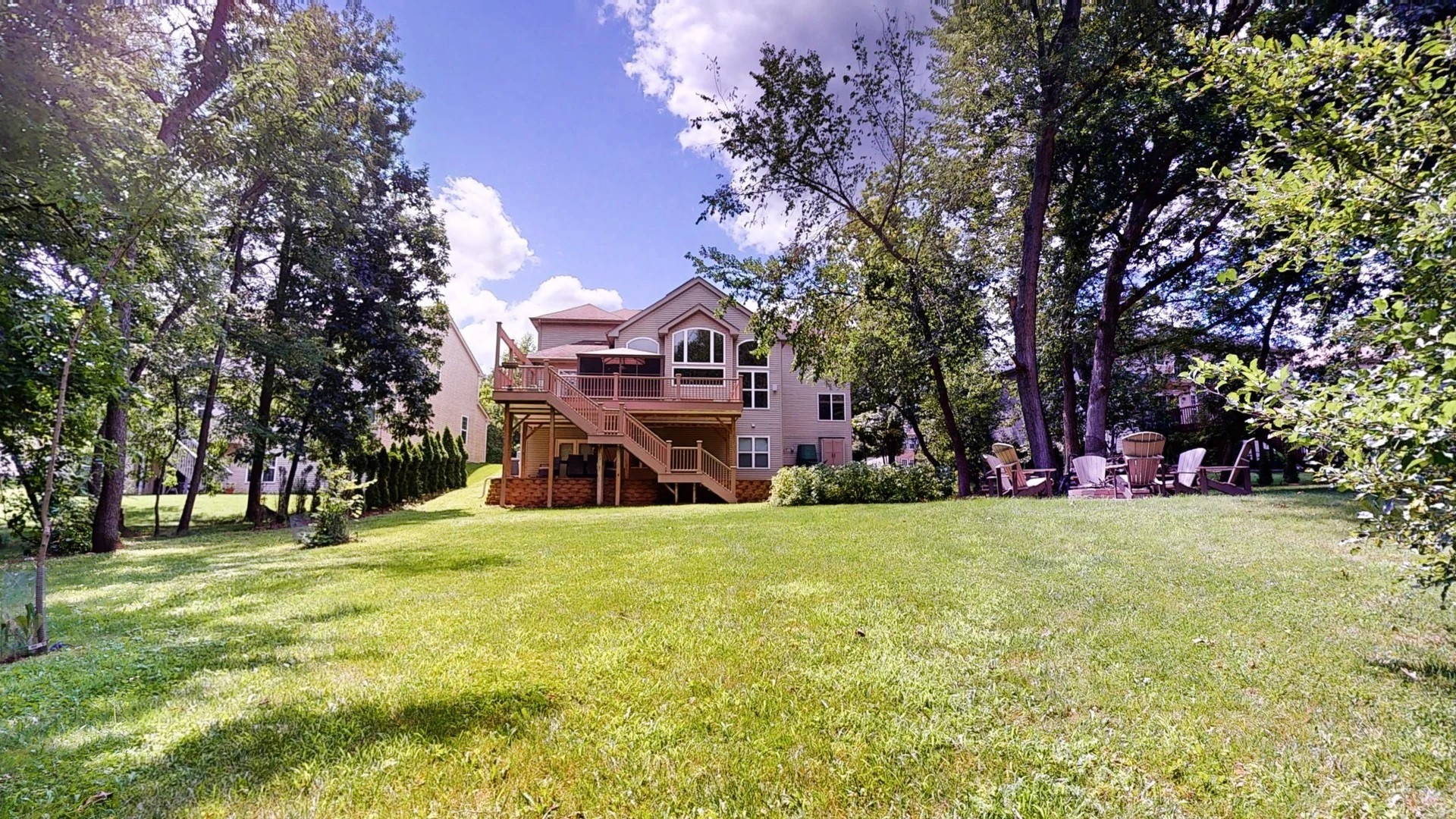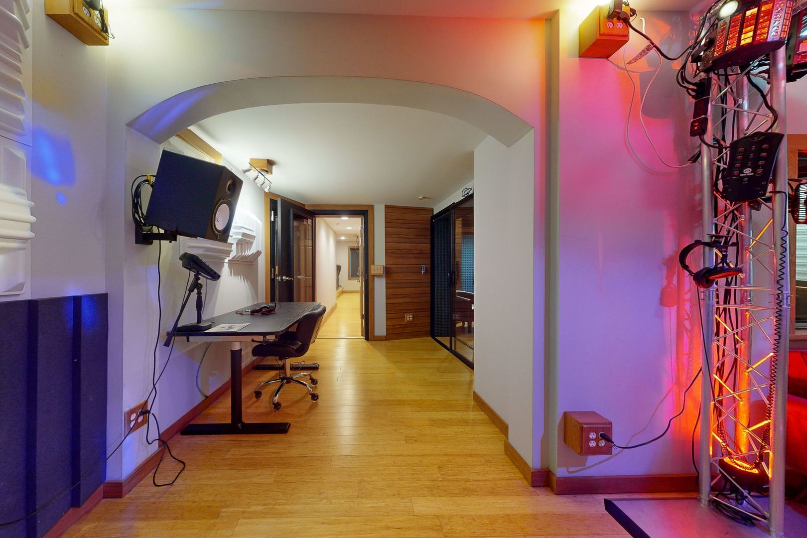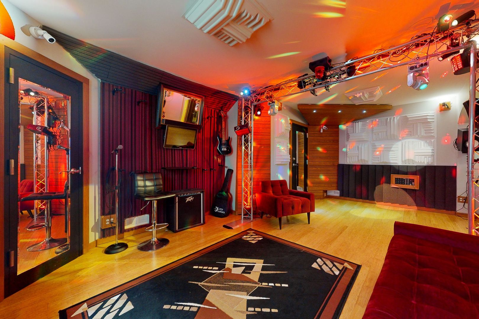SPECIALIZED HOME FOR A SPECIAL BUYER… such as: Audio / Music Recording Engineer, Professional Musician or Band, Movie Producer / Sound Editor, Health-conscious or one suffering from conditions improvable with cleaner air, water and food, Preparedness-minded individuals, Podcasters / Influencers, Voice-over artists, Meditators, Acoustically hypersensitive individuals, Parents with children in music lessons, Audiophiles or music lovers wanting the most accurate listening environment obtainable. This gorgeous 5,313 sq. ft. home was built in 2007 on a spacious half-acre lot in a neighborhood full of parks, trees and within close proximity to great schools, shopping, entertainment and expressway logistics. It was again continuously remodeled from 2011 thru 2016 adding a whole-house RO water filtration system, rain water catchment system, Organic fruit orchard, solar catchment system with stationary storage, external lighting, surveillance system, patio, screened deck, driveway, sidewalk and firepit. To the basement was added a world-class, commercial-quality, 3-Room Audio Recording Studio w/ 5.1 Surround Sound Critical Listening Area, Home Theater containing 9.1 Surround Sound plus LFE and a padded-floor Home Gym. Home comes furnished and Recording Studio comes turn-key with DAW computer and all audio equipment; plus several other solid-state silent computers in the studio. As seen in Recording, Sound on Sound and Mix Magazine in February, March and April of 2024! Here is a summary: 3-Room Recording Studio designed and constructed using state-of-the-art, Industry-standard, Acoustical Engineering Principles. * Room-within-Room Architecture: No studio rooms share walls, doors or windows! * Isolation: Double-interleaved 5/8″ gypsum on all walls & ceiling with gaps filled with backer rod and viscoelastic caulk, Custom sound-proof pedestrian doors (concrete filled steel), Custom sound-proof ADA 5/8″ safety-glass Sliding Doors, Custom sound-proof ADA 5/8″ safety-glass Sliding Windows. * Floating Structures: Floating Floor (no adhesives or fasteners), Floating Walls (isolation-mounted), Floating Ceiling (hanging by 74 springs as part of a Kinetics-engineered noise control system). * Unparalleled: Opposing walls taken out-of-parallel preventing Early Reflections and Standing Waves. Control Room side walls are each splayed several degrees and the control surface has a splayed floating cloud treatment. Live Room also has a splayed floating cloud to distribute the intense sonic energy of drums or other acoustic instruments. * Decoupled: The HVAC system is decoupled and contains 7 Custom HVAC Register Silencers, decoupled electrical conduits and silenced Audio Wall boxes with decoupled audio conduits. * Surface Treatments: 9 Custom fine-carpentered combo Slat Resonator / Bass Trap fixtures (Node prevention), Sound Absorption fixtures and Sound Diffusion fixtures. * Critical Listening: Adam Audio 5.1 surround-sound speakers featuring double Kevlar-coated cones and ribbon tweeters. * Hardware: High tech UPS, Preamp, Audio Interface, Control Surface and Computing Hardware. * Lighting: Stage lighting truss filled with DMX-chained lighting, sequencing lights in 9 slat resonators and RECORDING warning signs in 3 areas that respond automatically when recording starts. **Streetview is outdated and not a current reflection of the property.