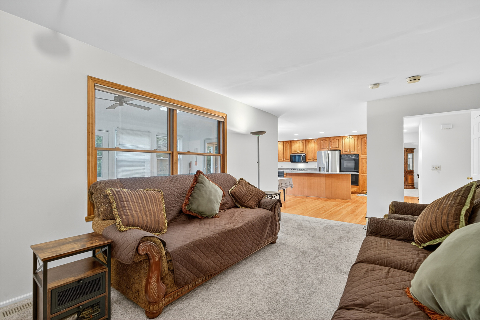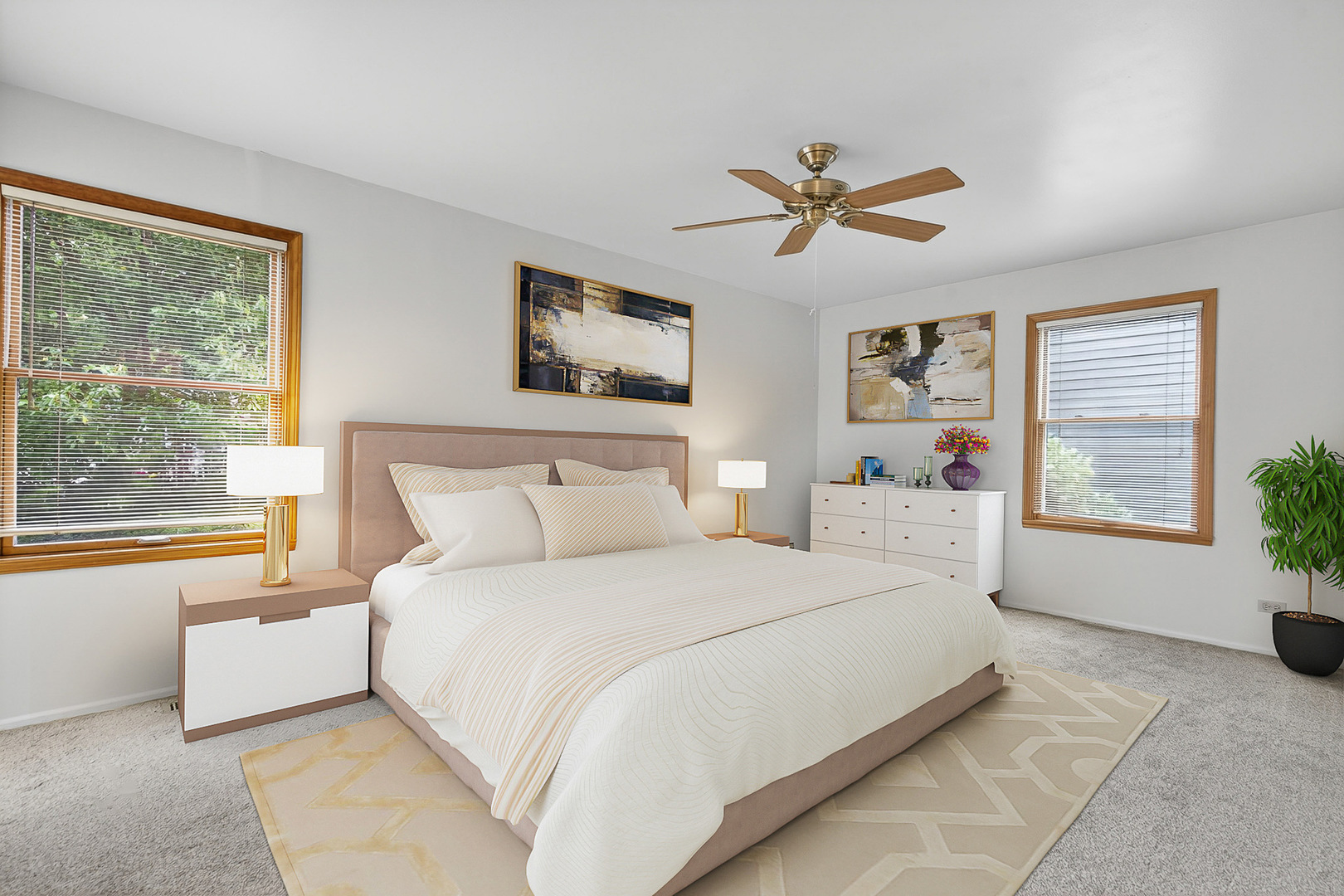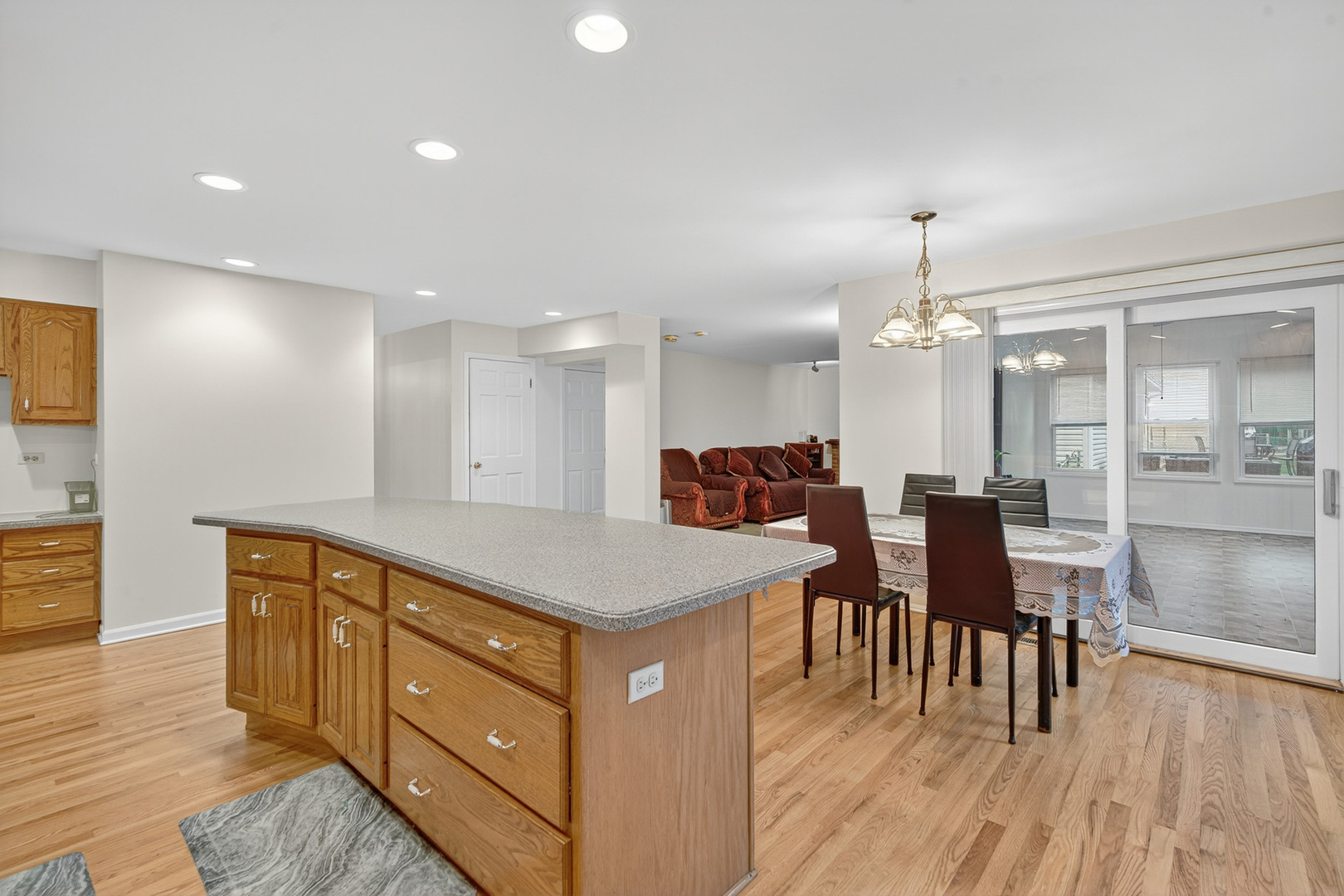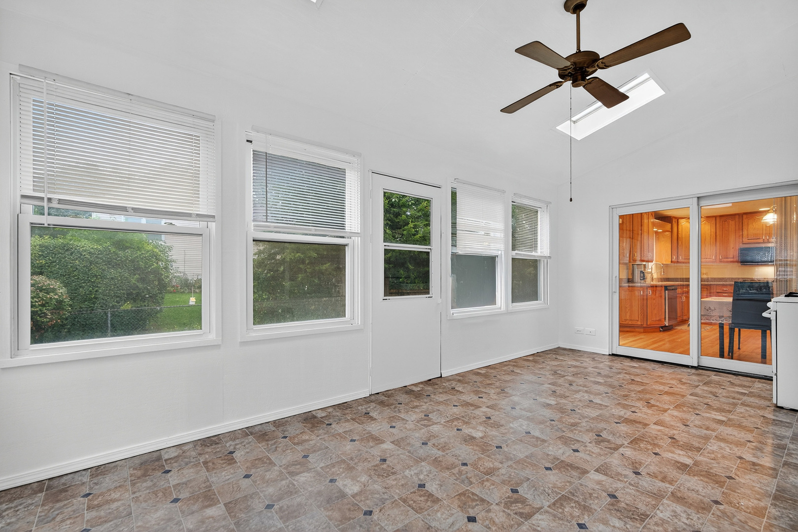 Welcome to this spacious 5-bedroom, 2.5-bath home in the desirable Strathmore subdivision. The first floor offers a warm and inviting layout with a family room featuring a brick wood-burning fireplace that flows seamlessly into the large kitchen. The kitchen includes an island with breakfast bar, double oven, cooktop, pantry cabinet, table space, and a built-in desk with extra storage. A formal dining room and living room sit just off the kitchen, along with a convenient half bath for guests. The bright three season room with a gas line for outdoor cooking leads to the fenced backyard with an additional gas line ready for your BBQ. Upstairs, you’ll find five generously sized bedrooms including a primary suite with private en suite with walk-in shower. The updated hall bath features a new shower (2023). Additional updates include new carpet and freshly sanded and oil-stained hardwood floors in the kitchen. The partial unfinished basement includes laundry with sink and offers endless potential for additional living space, office, or storage. Enjoy the 2-car attached garage and proximity to parks, shopping, dining, and transportation. Zoned for highly rated District 54 schools and Schaumburg High School!