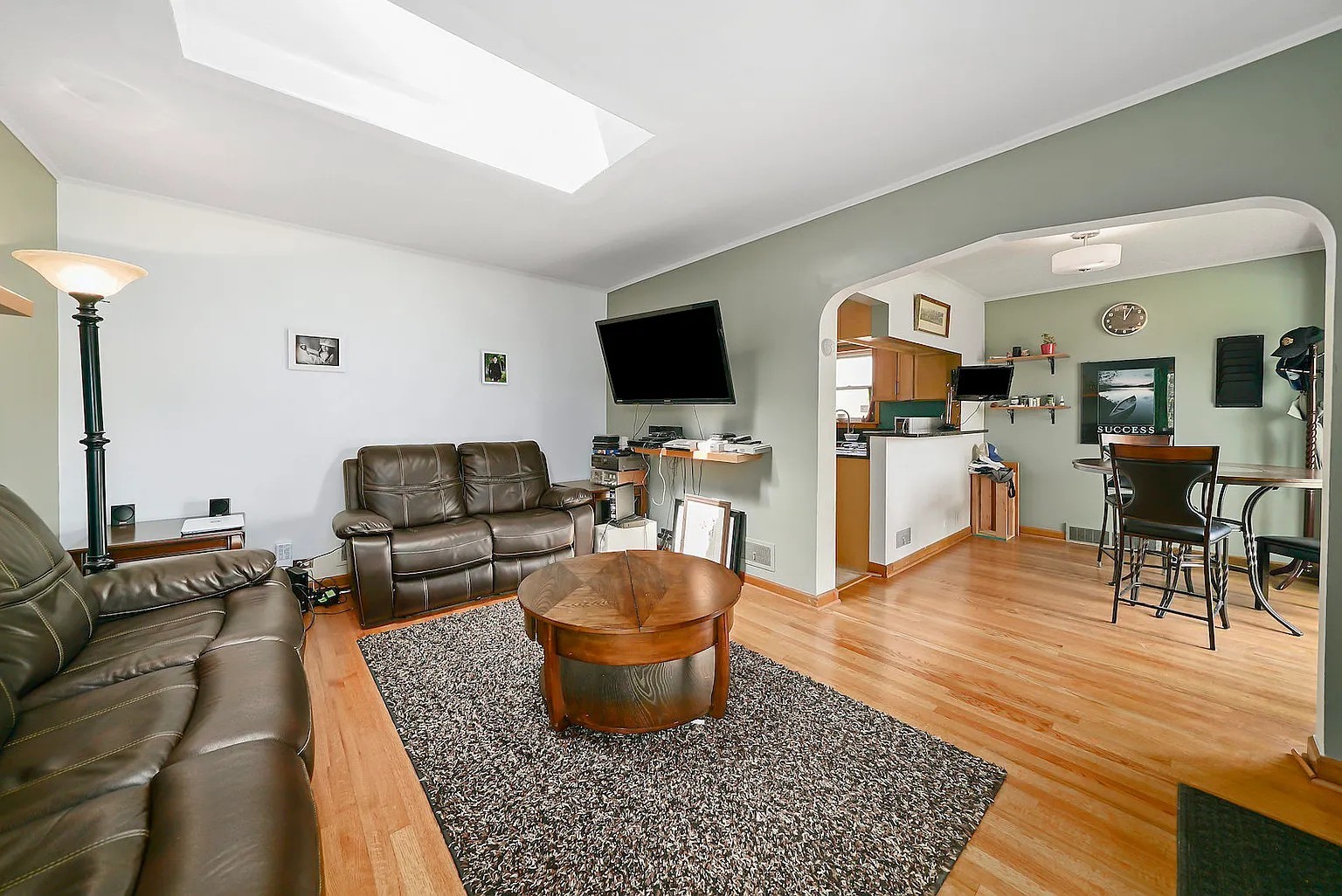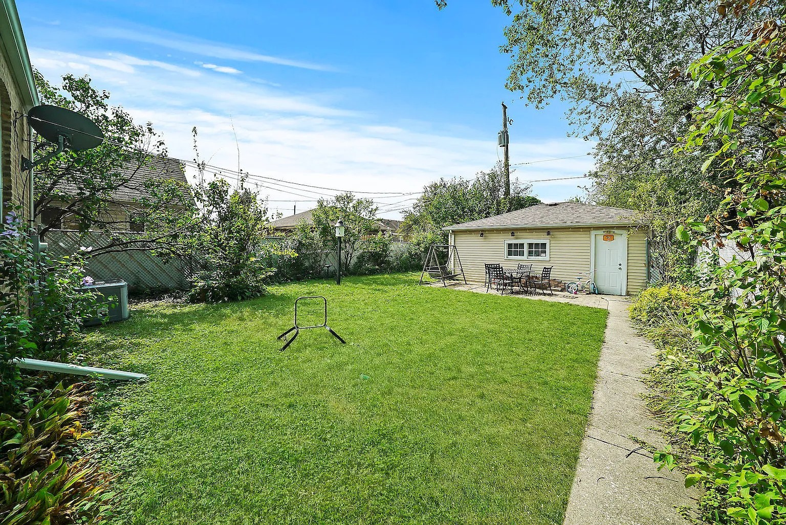 In the Garfield Ridge Neighborhood a single,family corner lot with 3 bedrooms 2 bathrooms, sky lights in living room, nice hardwood floors with a complete finished basement. Fenced yard and a 2 car garage. New leaf gutter protection gutters.