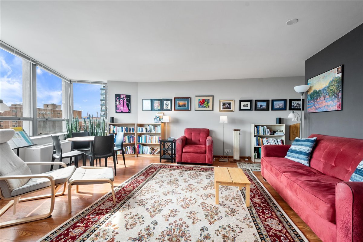 WOW! GREAT DEAL; GREAT UNIT! SUPER NICE & SUPER CLEAN 1 bedroom residence with FABULOUS LAKE, SKYLINE & PARK VIEWS from this sun-drenched, sought-after SOUTH FACING, 850 sq ft SPACIOUS 10TH floor condo at FABULOUS HOLLYWOOD TOWERS of EDGEWATER BEACH! Warm and inviting layout features beautiful HARDWOOD FLOORING thoughout, GORGEOUS, RENOVATED KITCHEN, STAINLESS APPLIANCES, updated electrical, roomy & airy with plenty of light, lots of work-from-home space & TONS OF CLOSETS! What a great space in a great place! Hollywood Towers is a solid, extremely well run, full amenity building ON THE BEACH/bike path, with HEAT, A/C, CABLE TV and INTERNET INCLUDED IN LOW ASSESSMENTS of only $475 & NO RENTAL RESTRICTIONS! Sorry, no dogs. Indoor, heated valet parking is AVAILABLE AT $190/month. Express bus at door. 2 blocks to Red Line. Beach at back door! Close to Andersonville, Whole Foods, Marianos, shopping, restaurants, theater, Loyola U and everything fabulous Edgewater has to offer!