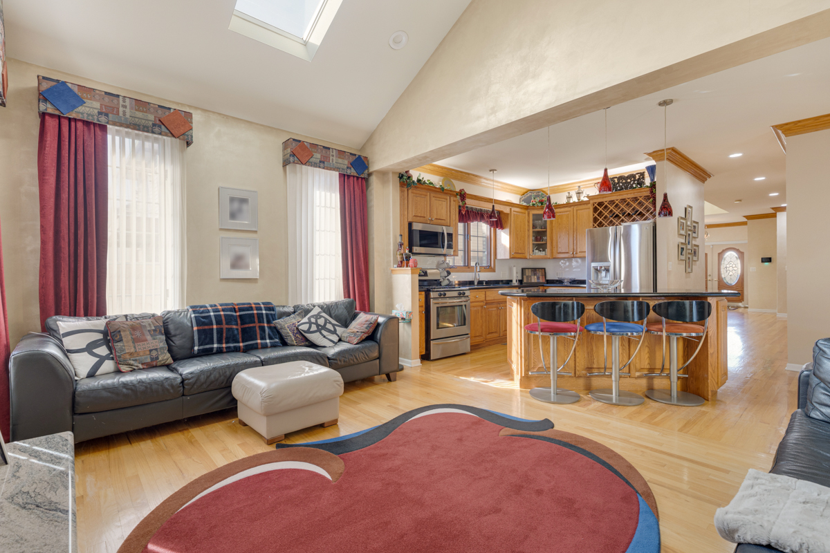 This Stunning Garfield Ridge 2 Story majestic, 5 bedroom, 4.5 bath home offers every feature a buyer is seeking and than some! The home is elegant, cozy and spacious all at the same time. From the moment you enter you will notice the attention of detail which went into building this full brick property. This amazing floor plan nothing was missed in this home! Main Level entry with spacious Foyer, separate Living, Dining Room and half bath. Featuring Gleaming Hardwood Floors Throughout main level. Beautiful Open Kitchen with eat-in area, Island, Granite Countertops, Stainless Steel Appliances that overlooking vaulted ceiling Family room with full Masonry Fireplace, that leads out to Your Fully Fenced beautiful Private backyard. Second Level offering 4 nice sized bedrooms and 3 full baths. Vaulted Ceilings. & Skylights in Private Master Bedroom and Master bath with Jacuzzi Tub and separate shower, Ceramic floors and a Walk In Closet. Finished Basement for entertaining with full bar, bedroom and a full bath. Plenty of storage space and oversized 2 car garage. There is nothing in this home which has been overlooked. But wait…there’s more! Close to public transportation, Expressways, Wide Variety of Restaurants, Entertainment and grocery stores. Lovingly cared for by longtime Original owners. This is the definition of move in ready and pretty much a new home at a fraction of the value! Get inside today as you will not be disappointed. Love where you Live!