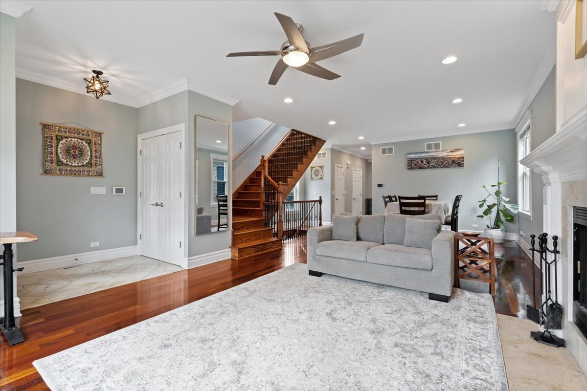 Elegant 4BR/3.5BA Home in Prime Portage Park Location – 3,500 Sq Ft Don’t miss this beautifully maintained 2-story single-family home built in 2007, offering 3,500 sq ft of refined living space. Features include cherry hardwood floors throughout, high ceilings with crown molding, dual-zone HVAC with dehumidifiers, and a skylight for abundant natural light. Spacious layout includes a separate kitchen and dining room, plus a cozy living room with gas/wood-burning fireplace. Upstairs offers three large bedrooms with custom closets and a luxurious primary suite with spa-style bath and dual vanity. The fully finished lower level features a private entrance, full bath, 4th bedroom, second fireplace, and great storage-perfect for guests or in-laws. Additional highlights: dual laundry setups (2nd floor + utility room), 200 AMP electric, overhead sewer system, sump pump, and a two-car garage with newer door. Solar panels provide major energy savings. Just a block from Portage Park’s pools, dog park, and recreation, and close to shops, schools, dining, and public transit.