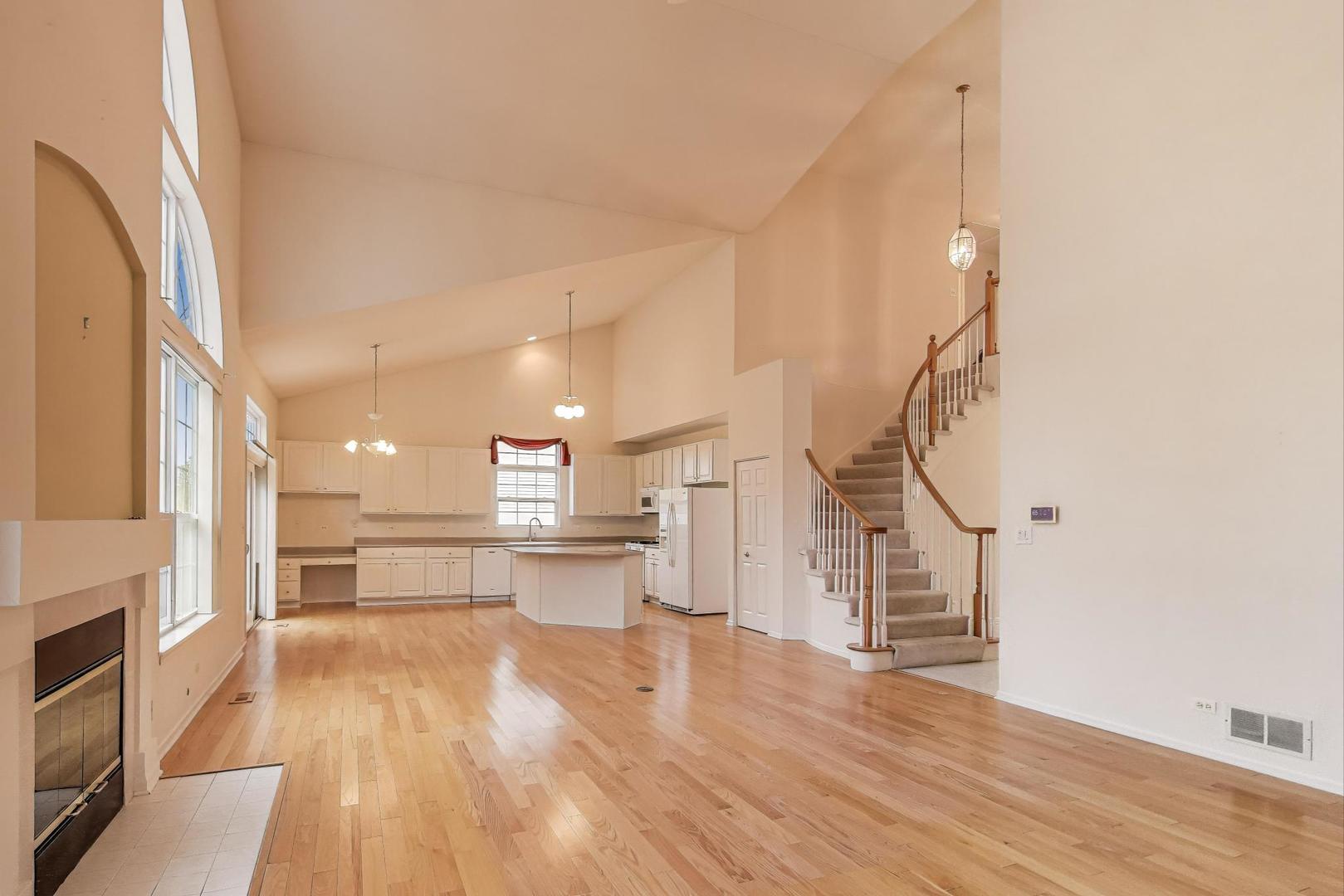 This spacious residence, nestled in a picturesque sidewalk community of Palatine, offers generous living space and a layout designed for both comfort and entertainment. As you enter, you’re greeted by a stunning two-story foyer that sets the tone for the inviting atmosphere throughout. The bright and airy living room, with south-facing windows that bathe the space in natural light, flows seamlessly into the elegant dining area. The heart of the home is the grand vaulted family room, featuring an open concept design that effortlessly connects to a well-appointed kitchen. With an abundance of cabinetry, endless Corian countertops, and a convenient island for additional seating, this kitchen is perfect for hosting gatherings and creating lasting memories. Cozy up during cooler evenings by the fireplacs in the expansive family room. Step outside to your beautiful brick paver patio, ideal for entertaining guests or enjoying quiet evenings outdoors. On the main level, you’ll find a versatile bedroom/office space and a full bathroom with a walk-in shower, perfect for accommodating guests or in-laws. The attached three-car garage includes ample storage, and the convenient mud/laundry room off the garage serves as a great drop zone for busy days. As you ascend to the second level, you’ll discover the exquisite primary suite, complete with an organized walk-in closet that is a must-see! The primary bathroom features a double vanity, a walk-in shower, and a luxurious soaking tub. Three additional bedrooms and another full bath round out the upper floor, providing plenty of room for family or guests. Don’t overlook the full basement with 9′ ceilings and roughed-in plumbing-this blank canvas is ready for your personal touch, whether you envision a recreation room, extra storage, or an additional bathroom. Located within top-ranked Fremd High School district and conveniently close to parks, Harper College, and Metra access in downtown Palatine and Arlington Park, this home is not just a place to live, but a lifestyle to embrace.