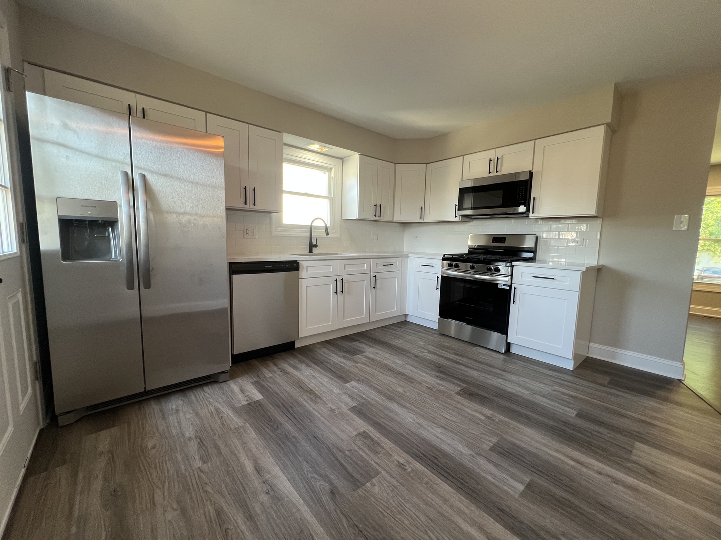 This 4-bedroom, 2-bath home is fully Remodeled with White shaker Cabinets, Quartz Countertops, Stainless steel appliances, hardwood floors on the main level, New cedar toned deck off the kitchen, New roof, New siding, windows, and more! You won’t want to miss this one!