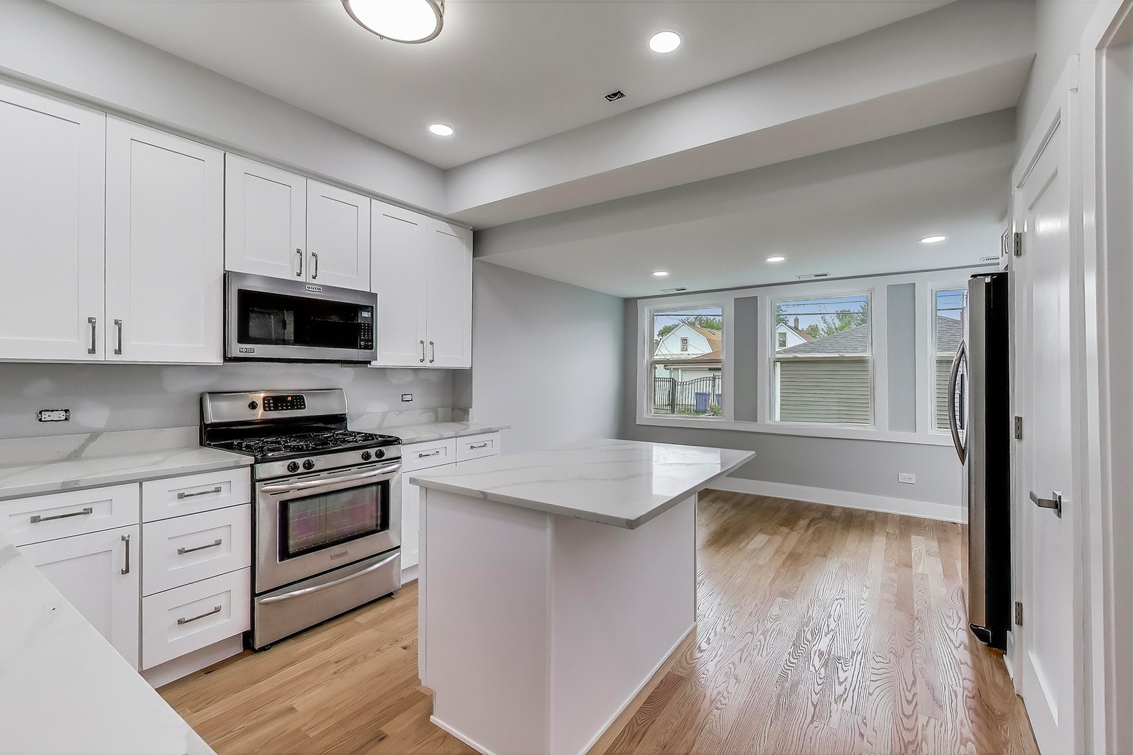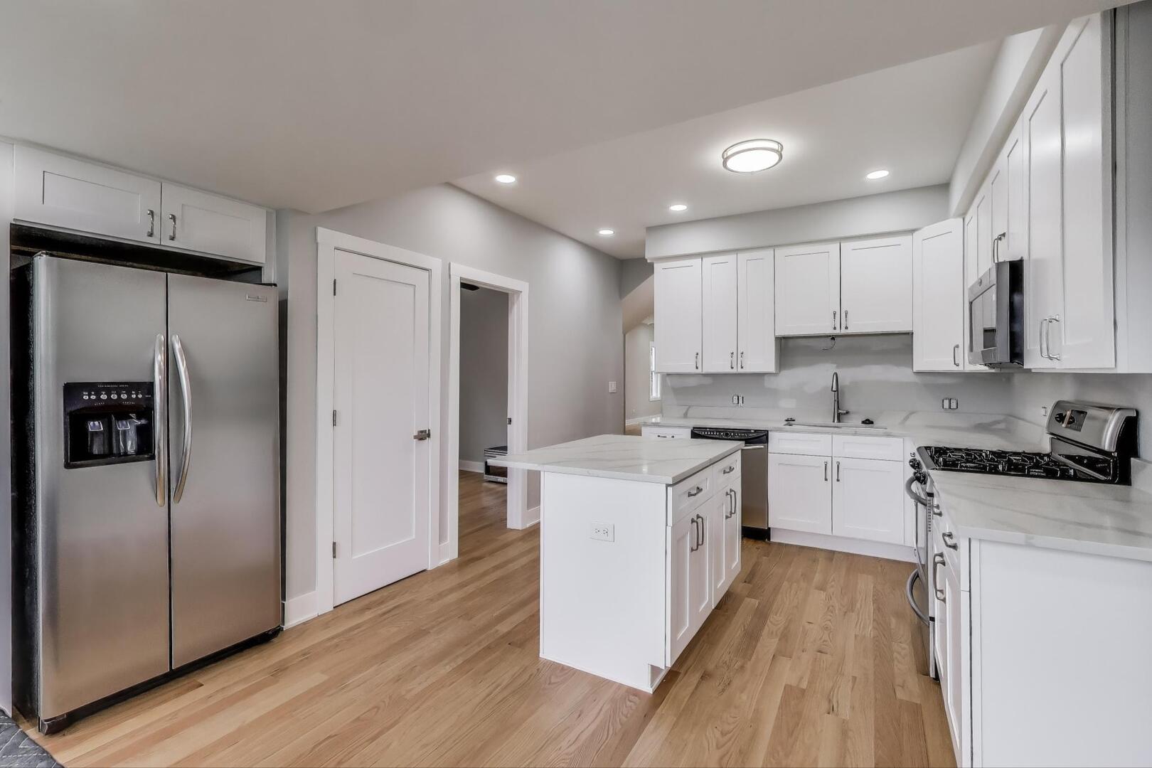 Bright and spacious renovated 4-Bedroom, 2-Bath single-family home. Thoughtfully updated throughout, this home features gleaming hardwood floors, an open-concept living and dining area, and stylish finishes that make it truly move-in ready. The stunning kitchen is the centerpiece of the home, offering white cabinetry, quartz countertops, a large center island, stainless steel appliances, and room for a breakfast table-perfect for both daily living and entertaining. With four generously sized bedrooms spread across the main and upper levels, including a primary bedroom with a walk-in closet, there’s room for everyone. The finished basement has been professionally dug down to provide excellent ceiling height and includes a laundry area, tons of storage, and a sump pump for added peace of mind. Step outside to a spacious backyard-ideal for summer gatherings-and enjoy the convenience of a 2-car garage. Recent updates include new siding on both the home, garage, plus a brand-new front stairway and Wrought Iron Fence on the side entrance.