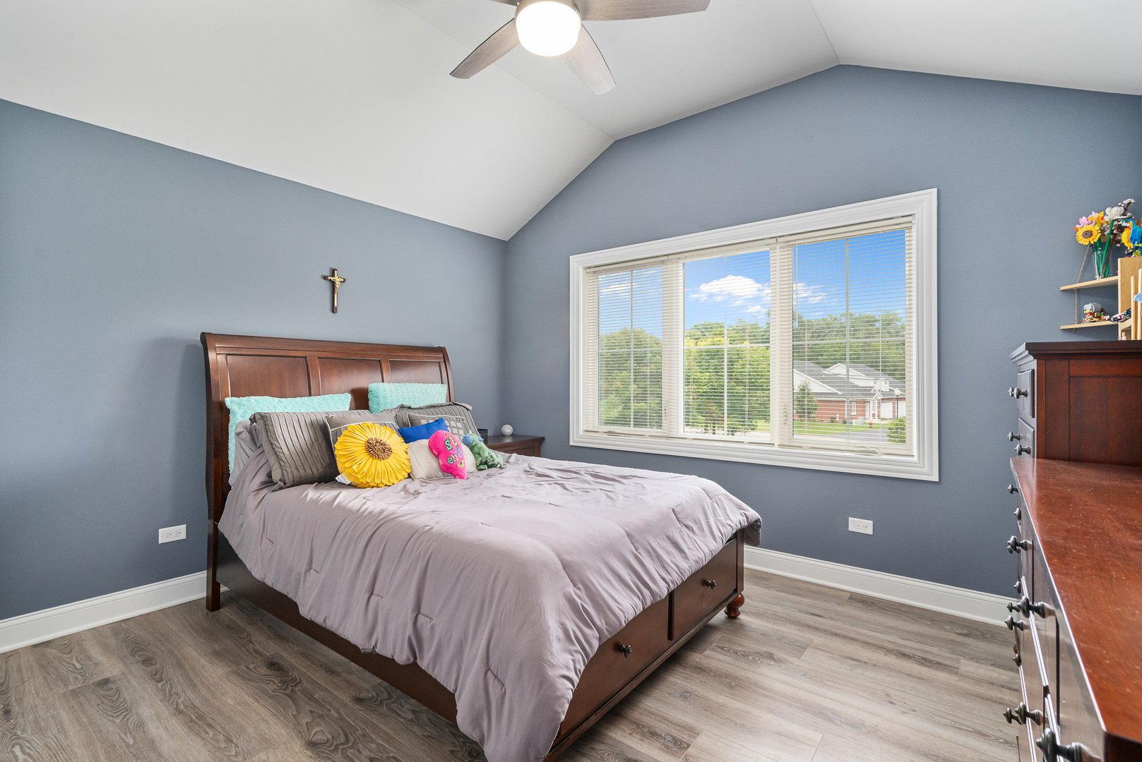 Experience the epitome of luxury living in this upscale townhome, perfectly positioned on a quiet, private road near New Lenox Commons, offering unparalleled access to a state-of-the-art public library, police station, outdoor concert venue, serene pond with waterfalls, recreation hall, and two beautifully designed parks. Outdoor enthusiasts will love the proximity to Old Plank Trail, while commuters enjoy seamless access to the Metra, I-80, and I-355, plus endless shopping and dining options just minutes away. Inside, this remarkable residence showcases a chef-inspired kitchen adorned with designer slate-gray soft close cabinets crowned with molding, quartz counters, a custom subway tile backsplash, farm sink, oversized island with breakfast bar, and premium Wi-Fi/App-enabled stainless steel appliances-including a French door refrigerator that creates craft ice cubes. A spacious walk-in pantry and main-level laundry room with sink and custom bench with hooks add convenience and style. The sun-drenched living room features a cozy fireplace and opens to a maintenance-free deck with natural gas hookup overlooking a tranquil pond. Retreat to the desirable main-level master suite offering a walk-in closet and a private spa-like bath with dual raised quartz vanities and an oversized shower. Upstairs, discover a second generously sized bedroom, a sleekly designed full bath, and a huge versatile loft perfect for a family room, home office or additional bedroom. A full English/look-out basement provides endless possibilities for additional living space. A large driveway leads to the attached garage. This exquisite townhome blends upscale finishes with modern conveniences in an unbeatable location-an extraordinary opportunity not to be missed.