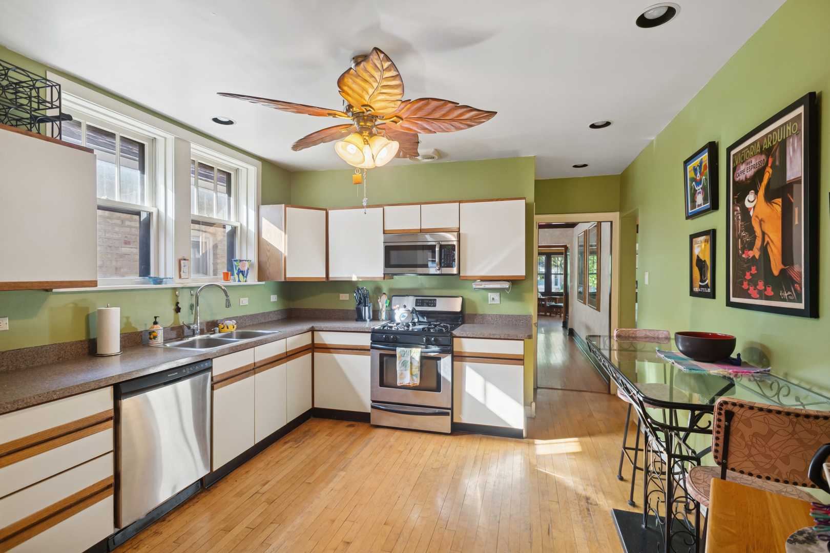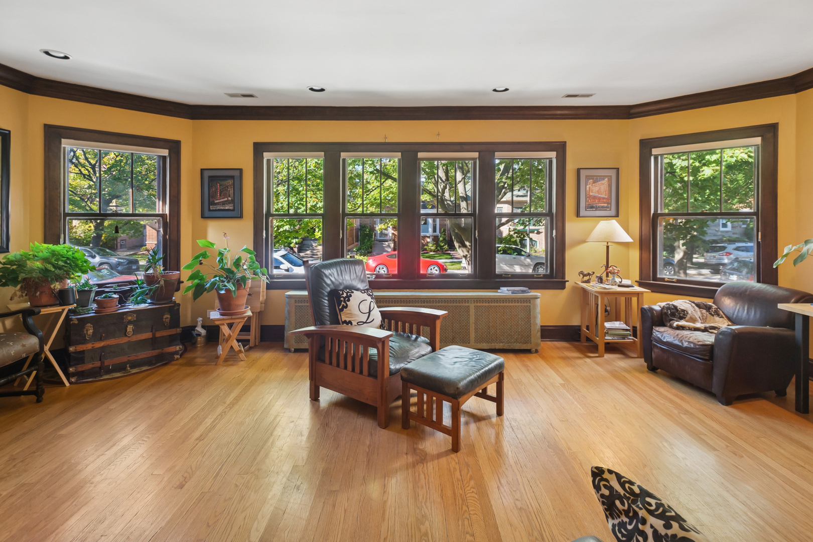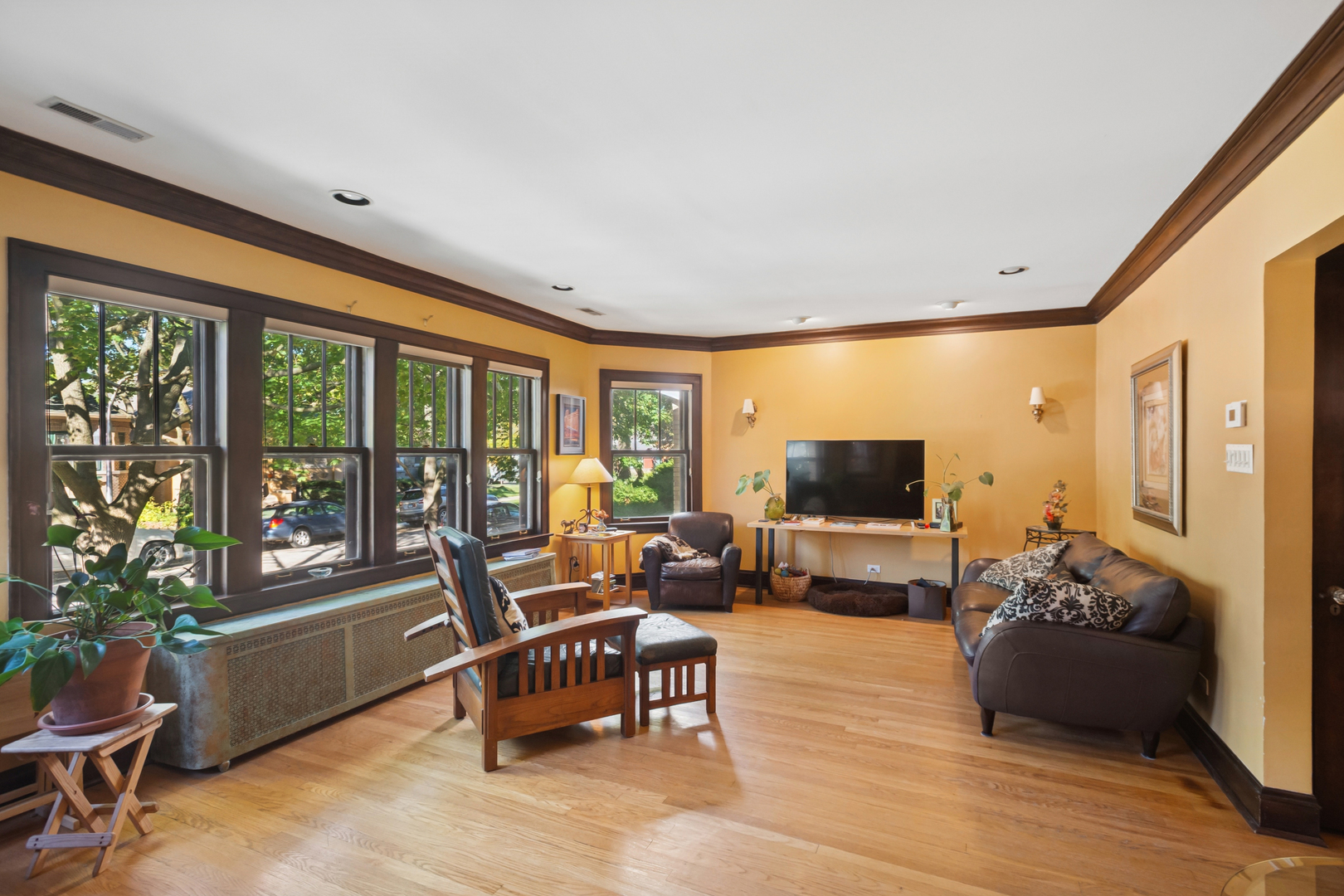 Opportunity abounds and the possibilities are endless with this extra wide bungalow in highly coveted Peterson Woods! Located on a beautiful one-way tree-lined street, with a side entrance, the width and graciousness of the rooms is obvious as soon as you enter. Facing west, the living room is flooded with natural light and has lots of natural woodwork, rich oak and maple floors throughout. The eat-in kitchen has stainless steel appliances and a walk-in pantry. Bring your design ideas and create the chef’s kitchen you want. Two main-floor bedrooms share a beautifully remodeled full bath with Kohler fixtures and marble floors. The large formal dining room is perfect for hosting family events and holidays. The second floor has a large high attic – the east end is finished w/a 3rd bedroom and the west could be the perfect primary suite (plumbing is already up there from the bath below). The basement offers great options for extra living space – a family room, 4th bedroom, space for a home office or gym, laundry area, and abundant storage. The second bathroom is located in the basement. A professionally landscaped perennial garden with sprinkler system (sold as-is) is the perfect venue for outdoor entertaining. Completing the picture is a 2-car garage with alley access. Recent updates include: 2025 – new 50-gallon hot water heater, new copper plumbing installed throughout the house (13K), new outdoor electric meter, new front spigot, North side of home tuckpointed, and back stairs from basement repaired; 2024 – new washing machine; 2023 – New dryer; 2022 – New A/C condenser; 2021 – new dishwasher; 2018 – New boiler; 2013 – New roof, gutter guards & outdoor electric upgrade. Conveniently located near the Kennedy Expressway (1-90/94), making downtown, O’Hare, and the northern suburbs easily accessible. Shopping venues are within a mile with shops, bakeries, and restaurants just around the corner, offering both daily essentials and local dining. Commuting is easy – there is a bus stop 2 minutes away, as well the CTA Brown line and the new Peterson/Ridge Metra Station (UP-N line) making getting downtown quick and efficient. Just blocks away from Peterson Park and North Park Village Nature Center- green spaces with trails, play grounds and recreation. Walking distance to highly rated Jamieson Elementary and a short drive to top-rated Northside College Prep. Don’t miss this opportunity to make this home yours in a highly sought after neighborhood!