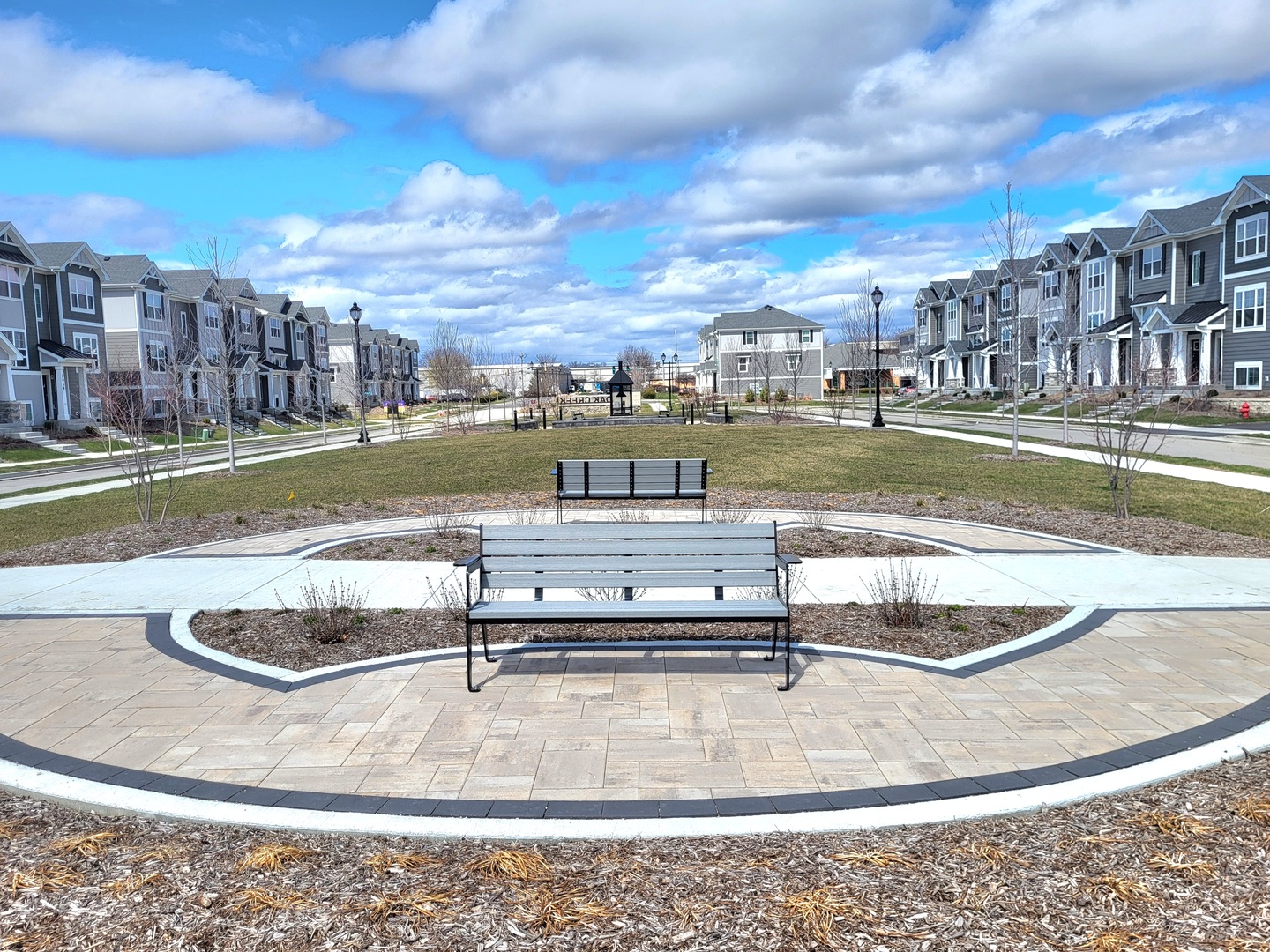 Find your way to 577 Yosemite Way in Mundelein, Illinois, a modern new townhome in our Townes at Oak Creek community. This new construction townhome is ready for you January, 2026! Homesite includes a fully sodded yard with landscaping as well as snow removal in the wintertime. This Gregory townhome plan offers 1798 square feet of living space with 3 bedrooms, 2.5 baths, and a finished flex room. As you step inside the home you enter on the ground level and it includes a fully finished flex room, perfect for a home office, playroom, or 2nd family room or 4th Bedroom. Walking up the stairs to the main level you will find this home’s open concept living with 9-foot ceilings and luxury vinyl plank flooring throughout the kitchen, dining, family room and bathrooms. The expansive kitchen features a large island that is ideal for everyday living and overlooks both the front dining, making it the perfect space to entertain. Additionally, your kitchen includes Quartz countertops, 42″ designer cabinetry with soft close doors and crown molding, stainless steel appliances and a pantry. Arriving at the top floor, you’ll find the primary suite, secondary bedrooms with a full second bath and laundry room. The spacious primary bedroom suite includes a large walk-in closet with a window and a drywall bench and connecting en-suite bathroom, featuring a walk-in shower. All Chicago homes include our America’s Smart Home Technology. Photos are of a similar home. Actual home built may vary.