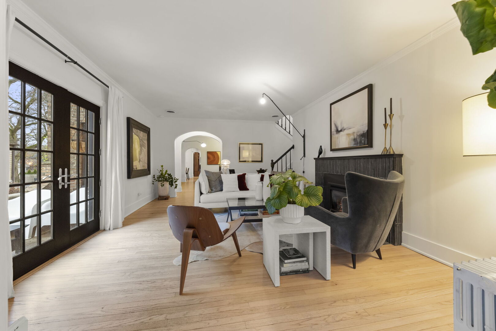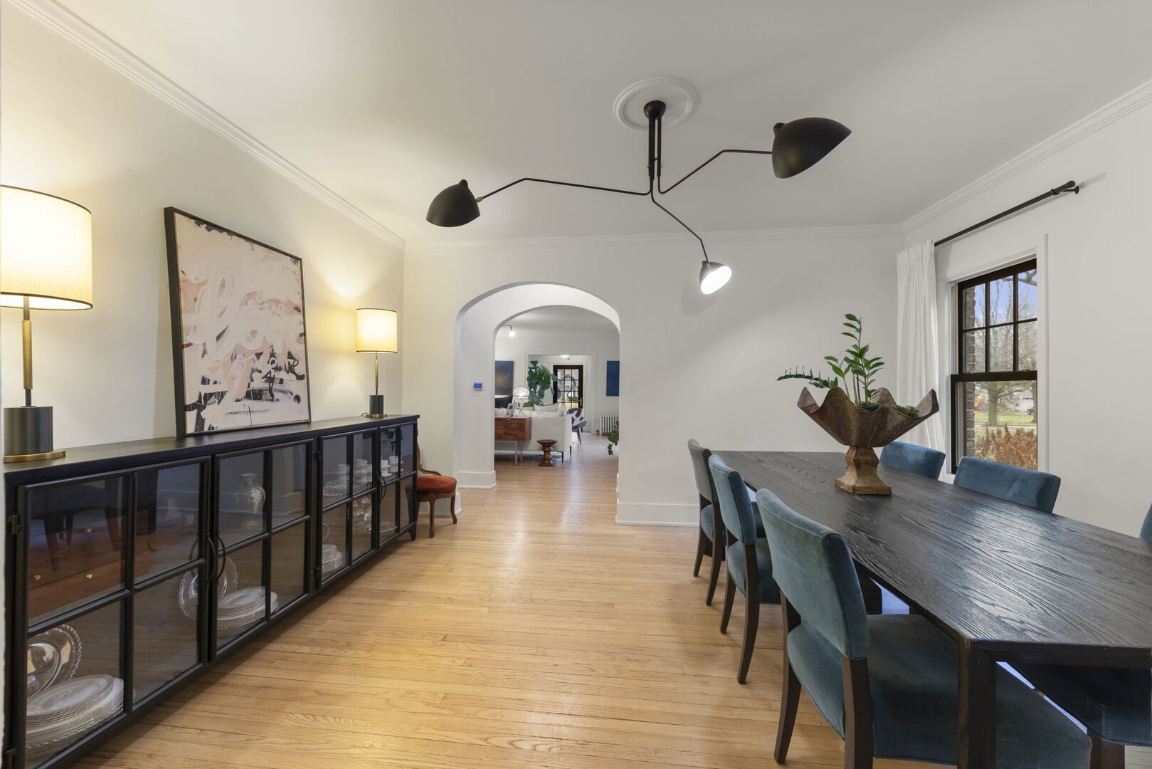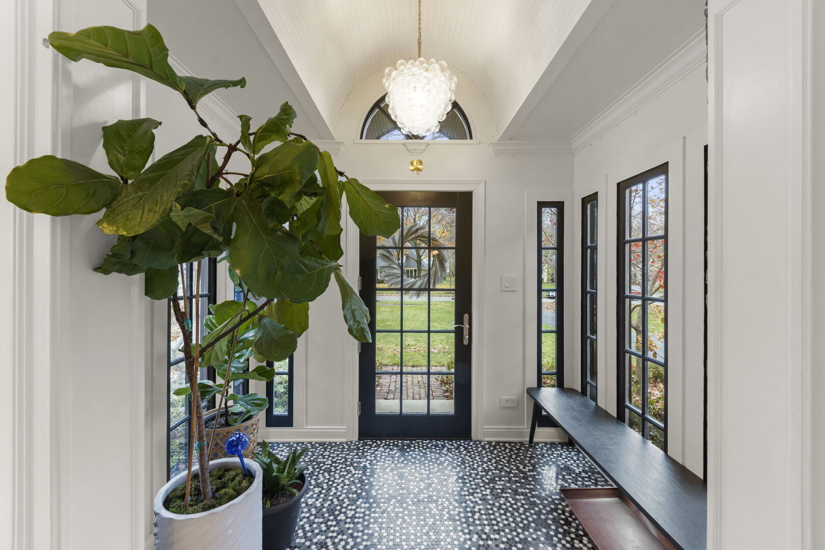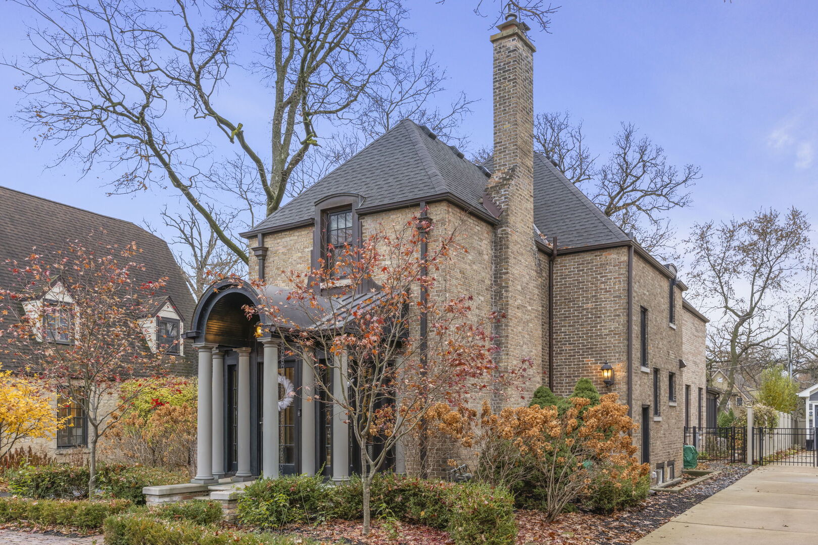 Charming 4 bedroom/3.1 bath Brick Tudor with Timeless Character and Modern Updates. Welcome to this storybook brick Tudor, where classic architecture meets refined modern living. Nestled on a picturesque tree-lined street, this beautifully maintained home offers exceptional curb appeal with its steep gabled roof, arched entryway, elegant columns, and rich architectural detailing. Mature landscaping and vibrant seasonal foliage frame the property, creating a warm and inviting first impression. Step inside to a bright, airy foyer wrapped in windows, where natural light pours across the patterned mosaic tile floor. A vaulted ceiling with beadboard detailing and a sparkling statement chandelier add a touch of luxury. The black-framed French doors and windows offer stunning views of the surrounding greenery, while the thoughtful layout provides an ideal transition into the rest of the home. This residence seamlessly blends historic charm-such as original brickwork and classic millwork-with sophisticated updates designed for contemporary living. Every detail has been curated to create a home that’s as comfortable as it is beautiful. Thoughtfully designed Kitchen With Modern Elegance. Step into a beautifully curated kitchen where timeless design meets modern luxury. Anchored by an expansive Belvedere quartzite island with waterfall edges, this space offers generous seating and a striking focal point for entertaining. Sleek pendant lighting with warm metallic accents adds a soft glow over the island, complementing the sophisticated contrast of dark and light finishes. Custom floor-to-ceiling cabinetry provides abundant storage and a seamless, built-in look, while high-end appliances-including a gas range set against a charming brick backsplash-deliver both style and functionality. The arched doorways add architectural character and create a graceful flow into the adjoining dining area, where contemporary lighting and natural textures create an inviting atmosphere. Bright, open, and thoughtfully designed, this kitchen is the perfect blend of luxury, comfort, and craftsmanship-ideal for everyday living and exceptional gatherings. Primary suite complete with private office, walk-in closet and spa-like bath with large shower, soaker tub and radiant heated floors. The finished basement is designed for multi-purpose – workout room, workshop/storage, office/craft, recreation room w/media area and separate space for Ping Pong/pool table. Fenced backyard is beautifully landscaped and includes 2 patios. Perfectly situated close to local shops, parks, and neighborhood amenities, this distinctive property offers the rare opportunity to own a home that is truly one-of-a-kind.