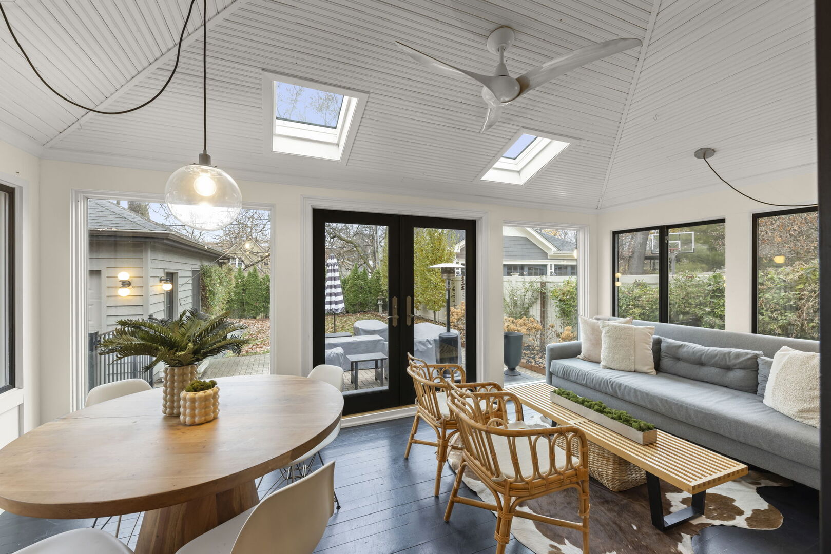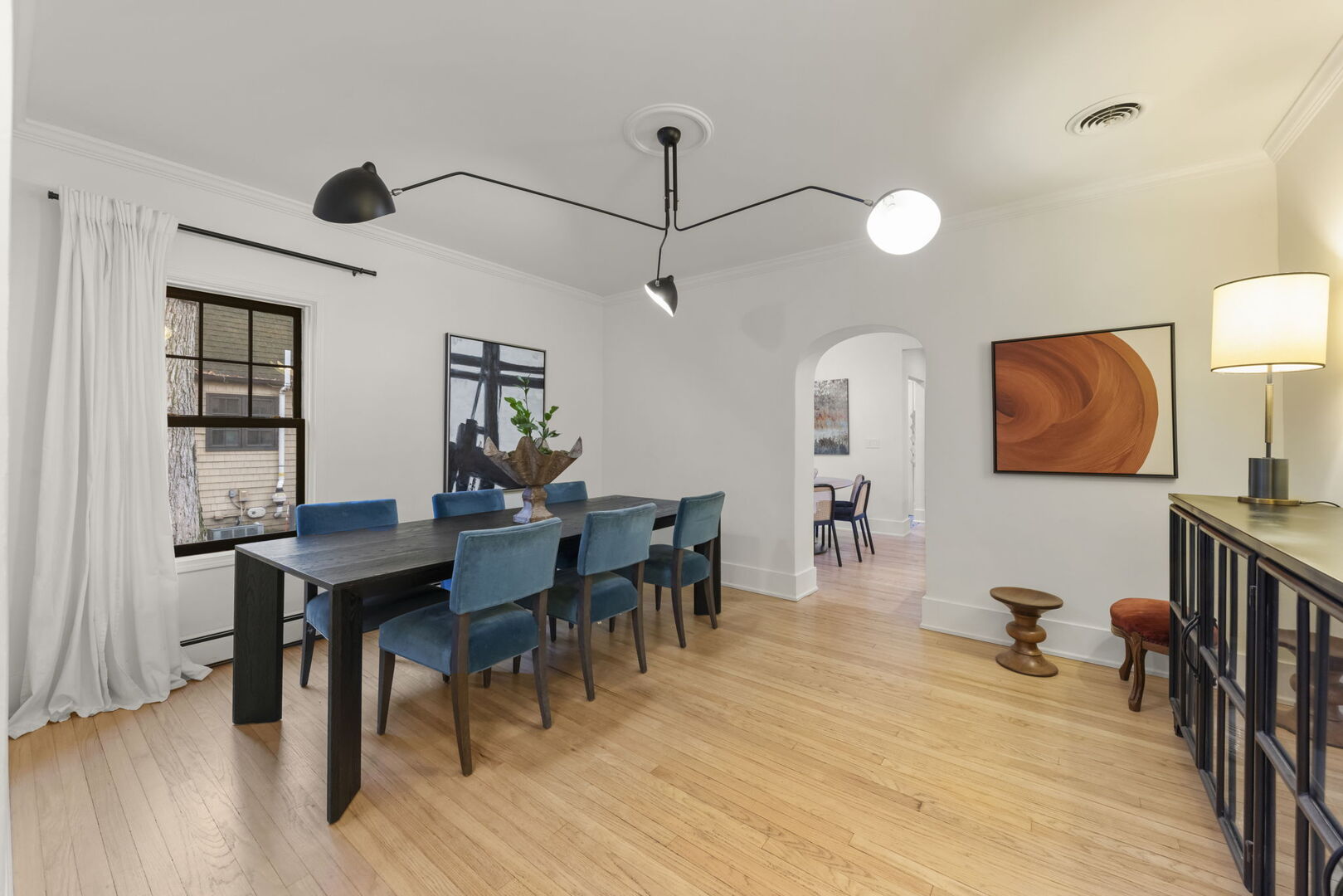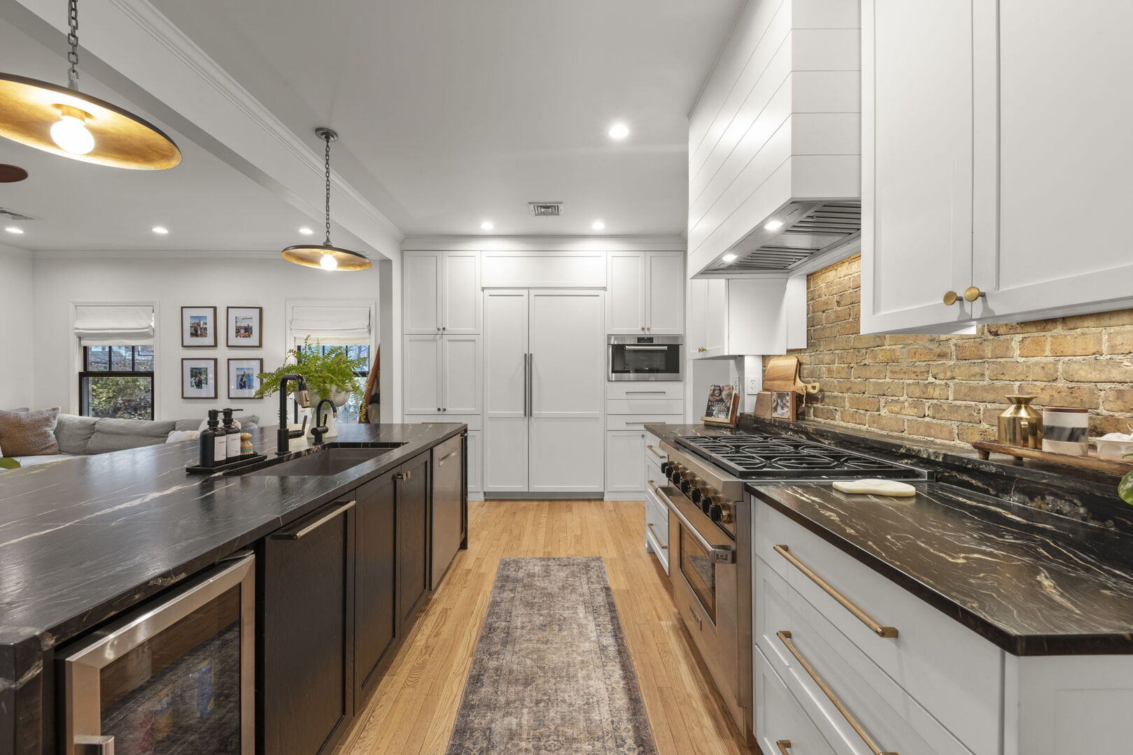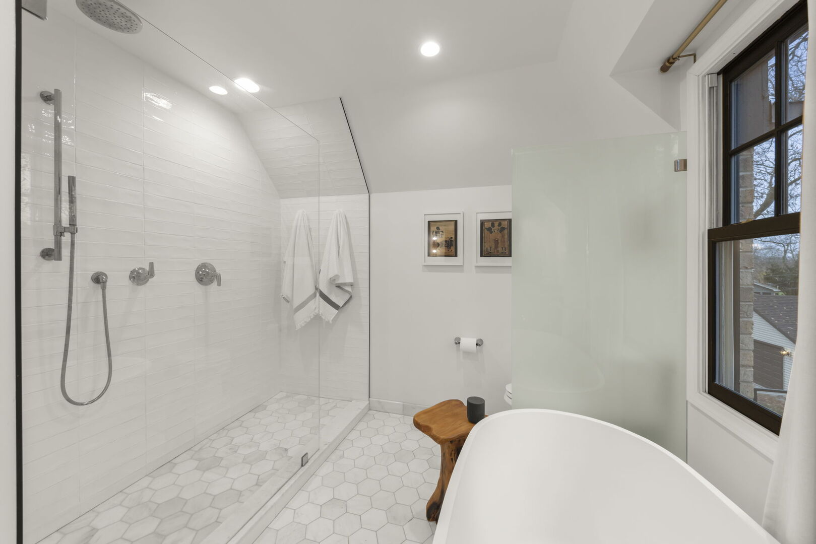 Charming 4 bedroom/3.1 bath Brick Tudor with Timeless Character and Modern Updates. Welcome to this storybook brick Tudor, where classic architecture meets refined modern living. Nestled on a picturesque tree-lined street, this beautifully maintained home offers exceptional curb appeal with its steep gabled roof, arched entryway, elegant columns, and rich architectural detailing. Mature landscaping and vibrant seasonal foliage frame the property, creating a warm and inviting first impression. Step inside to a bright, airy foyer wrapped in windows, where natural light pours across the patterned mosaic tile floor. A vaulted ceiling with beadboard detailing and a sparkling statement chandelier add a touch of luxury. The black-framed French doors and windows offer stunning views of the surrounding greenery, while the thoughtful layout provides an ideal transition into the rest of the home. This residence seamlessly blends historic charm-such as original brickwork and classic millwork-with sophisticated updates designed for contemporary living. Every detail has been curated to create a home that’s as comfortable as it is beautiful. Thoughtfully designed Kitchen With Modern Elegance. Step into a beautifully curated kitchen where timeless design meets modern luxury. Anchored by an expansive Belvedere quartzite island with waterfall edges, this space offers generous seating and a striking focal point for entertaining. Sleek pendant lighting with warm metallic accents adds a soft glow over the island, complementing the sophisticated contrast of dark and light finishes. Custom floor-to-ceiling cabinetry provides abundant storage and a seamless, built-in look, while high-end appliances-including a gas range set against a charming brick backsplash-deliver both style and functionality. The arched doorways add architectural character and create a graceful flow into the adjoining dining area, where contemporary lighting and natural textures create an inviting atmosphere. Bright, open, and thoughtfully designed, this kitchen is the perfect blend of luxury, comfort, and craftsmanship-ideal for everyday living and exceptional gatherings. Primary suite complete with private office, walk-in closet and spa-like bath with large shower, soaker tub and radiant heated floors. The finished basement is designed for multi-purpose – workout room, workshop/storage, office/craft, recreation room w/media area and separate space for Ping Pong/pool table. Fenced backyard is beautifully landscaped and includes 2 patios. Perfectly situated close to local shops, parks, and neighborhood amenities, this distinctive property offers the rare opportunity to own a home that is truly one-of-a-kind.