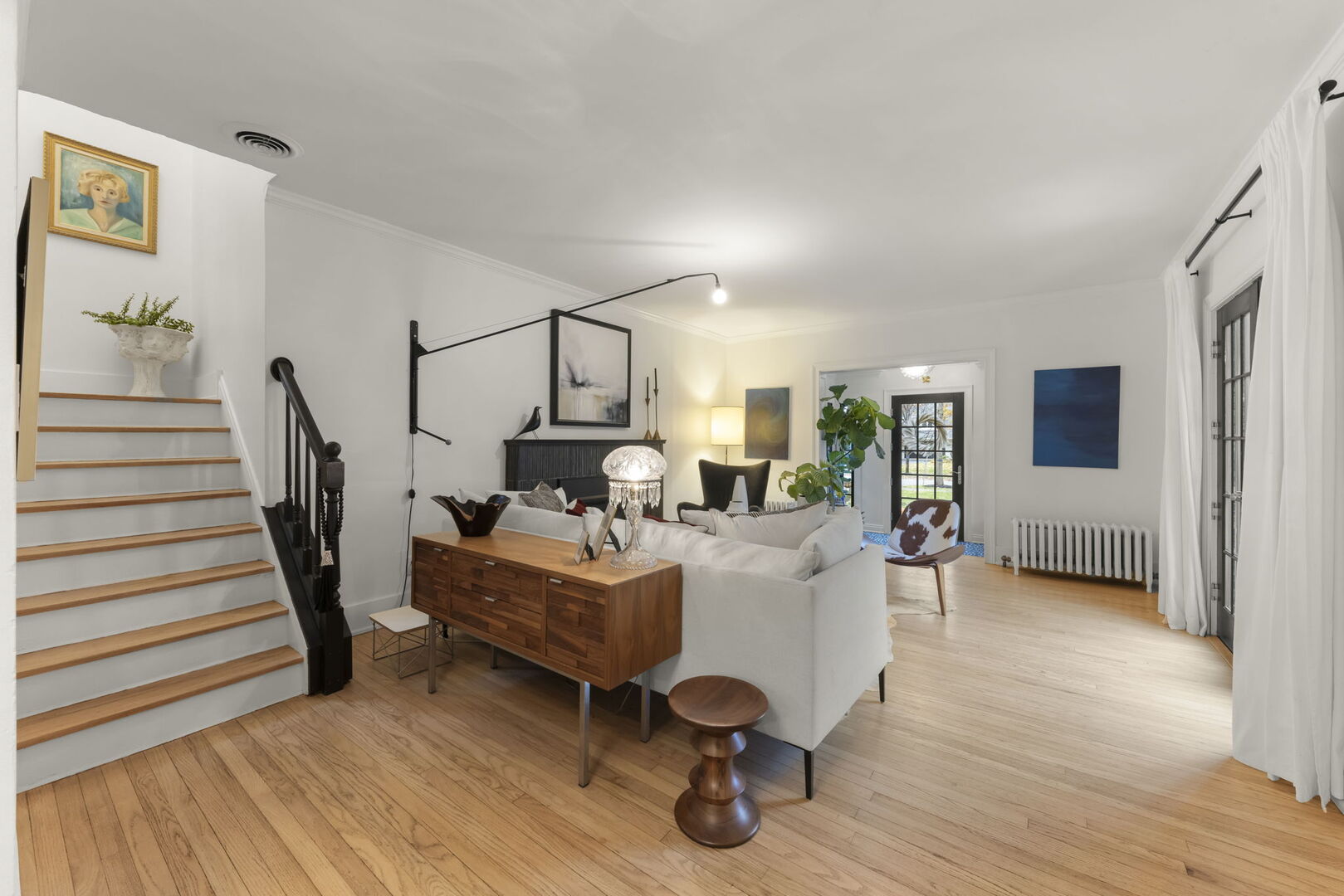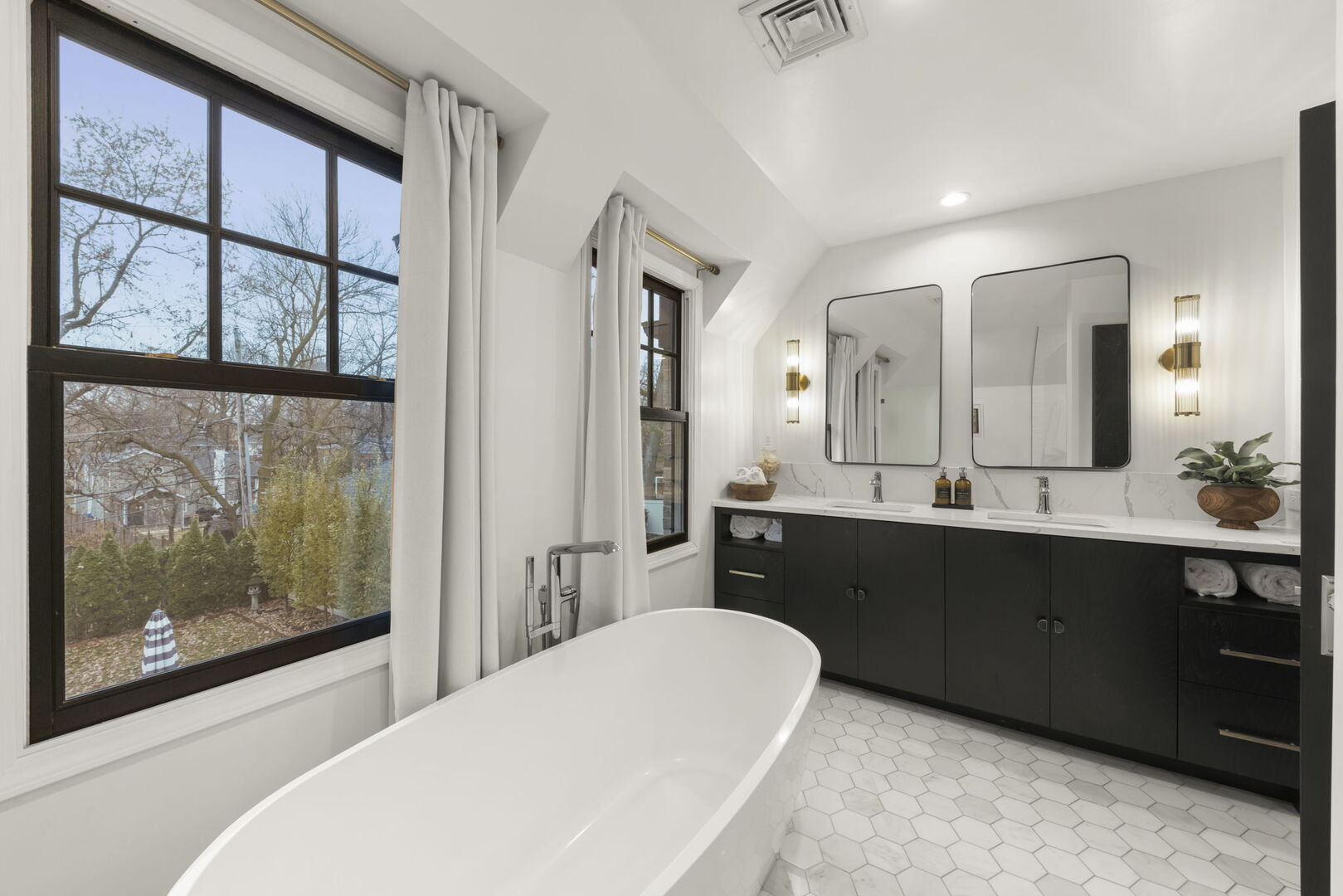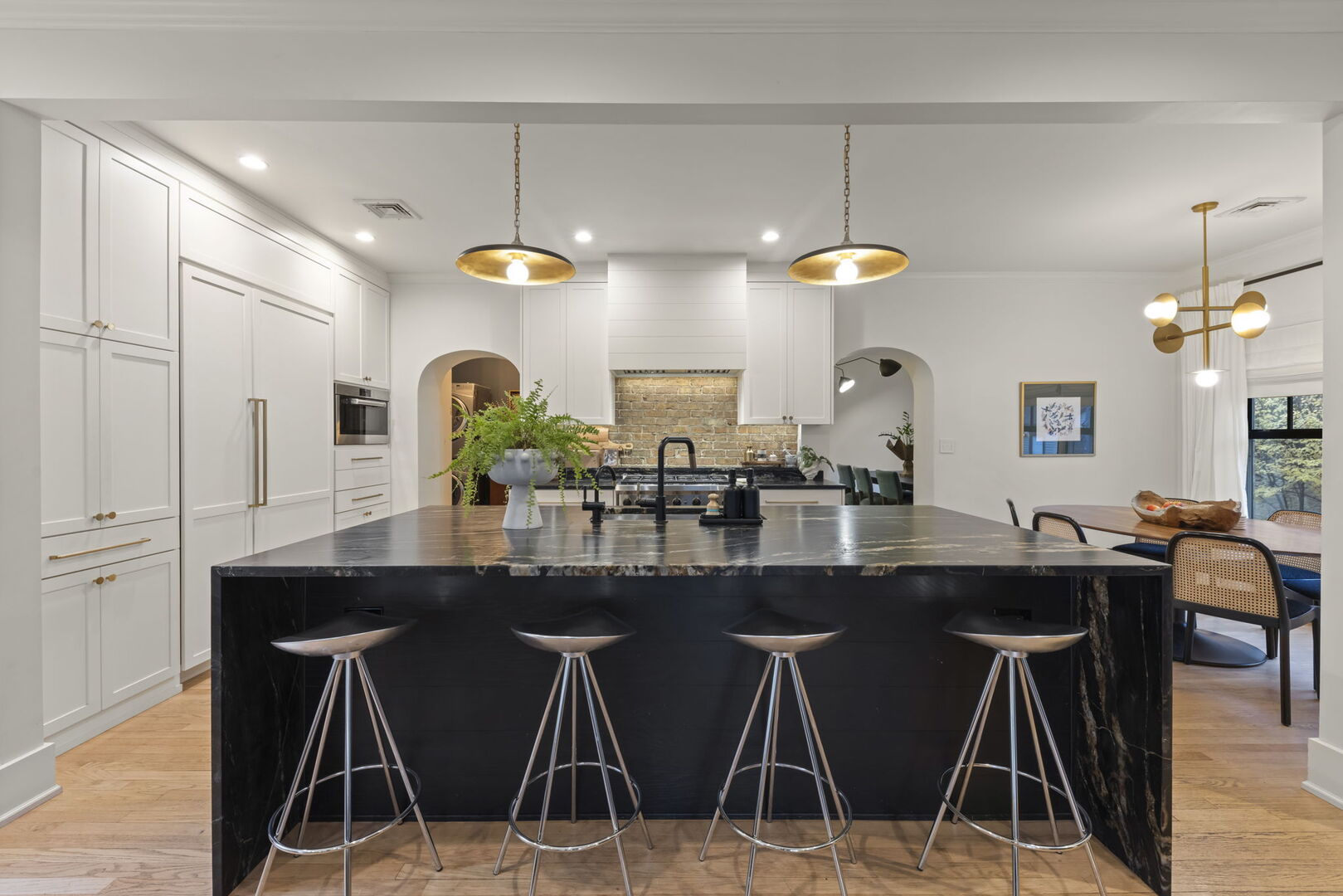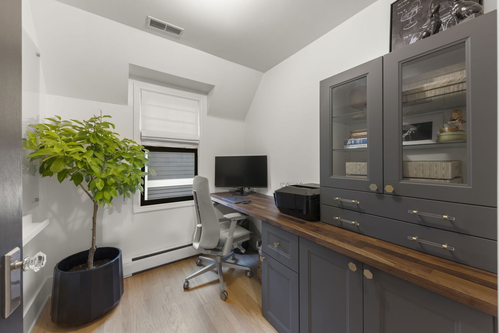 Charming 4 bedroom/3.1 bath Brick Tudor with Timeless Character and Modern Updates. Welcome to this storybook brick Tudor, where classic architecture meets refined modern living. Nestled on a picturesque tree-lined street, this beautifully maintained home offers exceptional curb appeal with its steep gabled roof, arched entryway, elegant columns, and rich architectural detailing. Mature landscaping and vibrant seasonal foliage frame the property, creating a warm and inviting first impression. Step inside to a bright, airy foyer wrapped in windows, where natural light pours across the patterned mosaic tile floor. A vaulted ceiling with beadboard detailing and a sparkling statement chandelier add a touch of luxury. The black-framed French doors and windows offer stunning views of the surrounding greenery, while the thoughtful layout provides an ideal transition into the rest of the home. This residence seamlessly blends historic charm-such as original brickwork and classic millwork-with sophisticated updates designed for contemporary living. Every detail has been curated to create a home that’s as comfortable as it is beautiful. Thoughtfully designed Kitchen With Modern Elegance. Step into a beautifully curated kitchen where timeless design meets modern luxury. Anchored by an expansive Belvedere quartzite island with waterfall edges, this space offers generous seating and a striking focal point for entertaining. Sleek pendant lighting with warm metallic accents adds a soft glow over the island, complementing the sophisticated contrast of dark and light finishes. Custom floor-to-ceiling cabinetry provides abundant storage and a seamless, built-in look, while high-end appliances-including a gas range set against a charming brick backsplash-deliver both style and functionality. The arched doorways add architectural character and create a graceful flow into the adjoining dining area, where contemporary lighting and natural textures create an inviting atmosphere. Bright, open, and thoughtfully designed, this kitchen is the perfect blend of luxury, comfort, and craftsmanship-ideal for everyday living and exceptional gatherings. Primary suite complete with private office, walk-in closet and spa-like bath with large shower, soaker tub and radiant heated floors. The finished basement is designed for multi-purpose – workout room, workshop/storage, office/craft, recreation room w/media area and separate space for Ping Pong/pool table. Fenced backyard is beautifully landscaped and includes 2 patios. Perfectly situated close to local shops, parks, and neighborhood amenities, this distinctive property offers the rare opportunity to own a home that is truly one-of-a-kind.