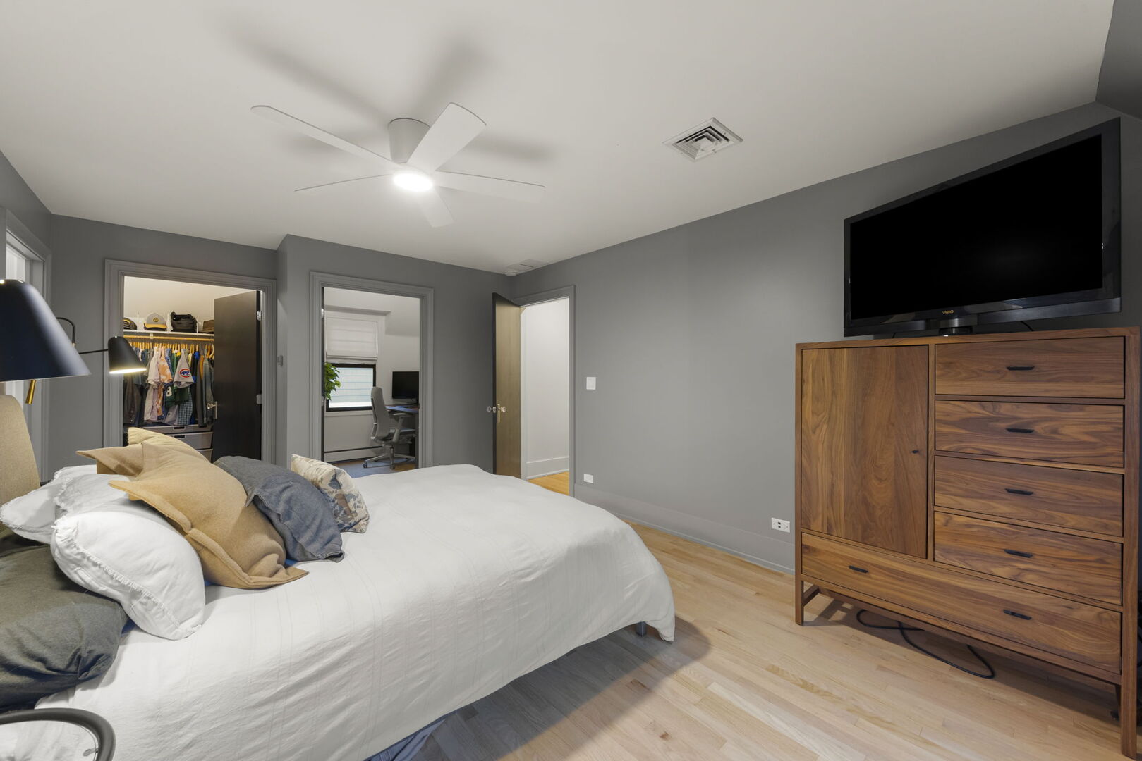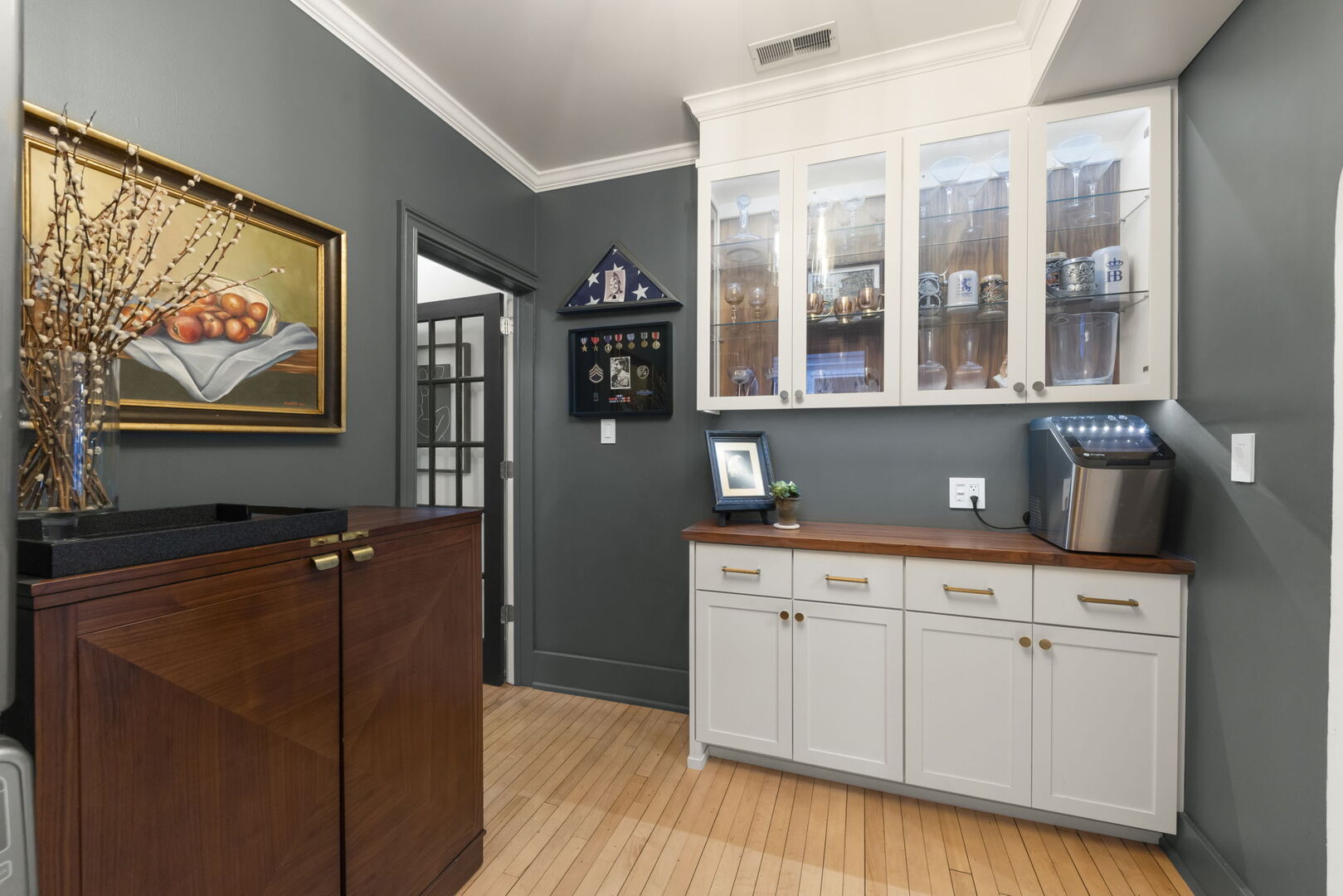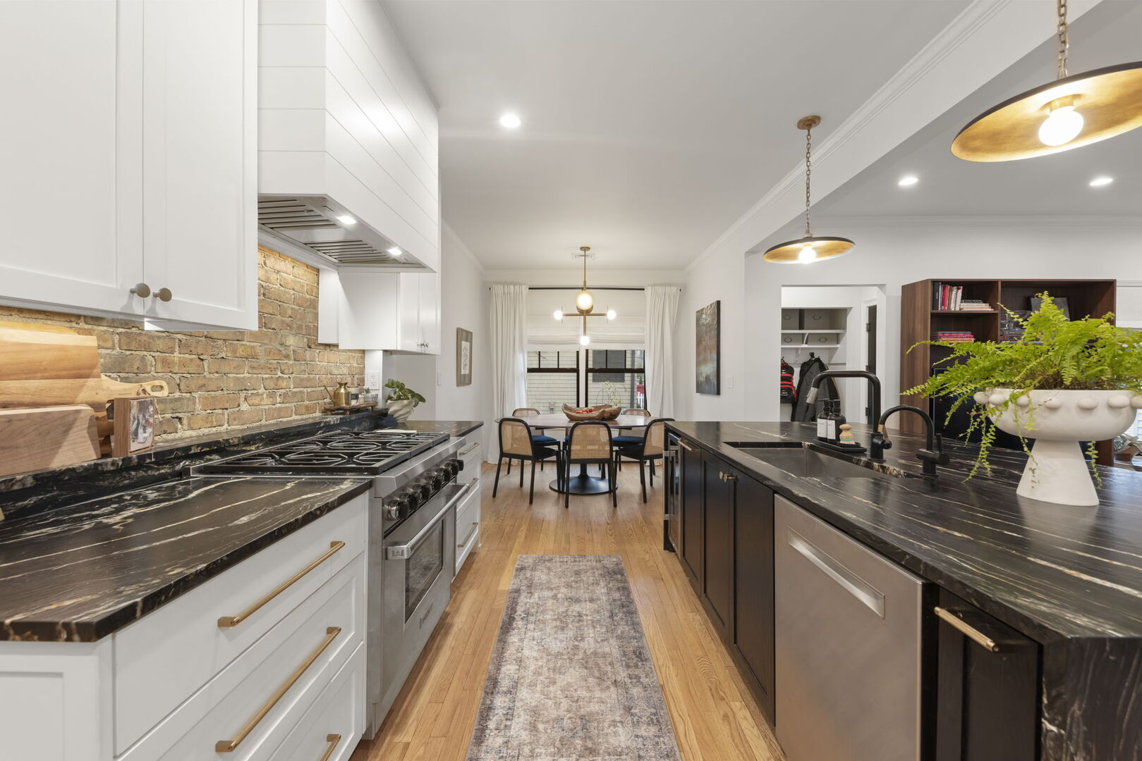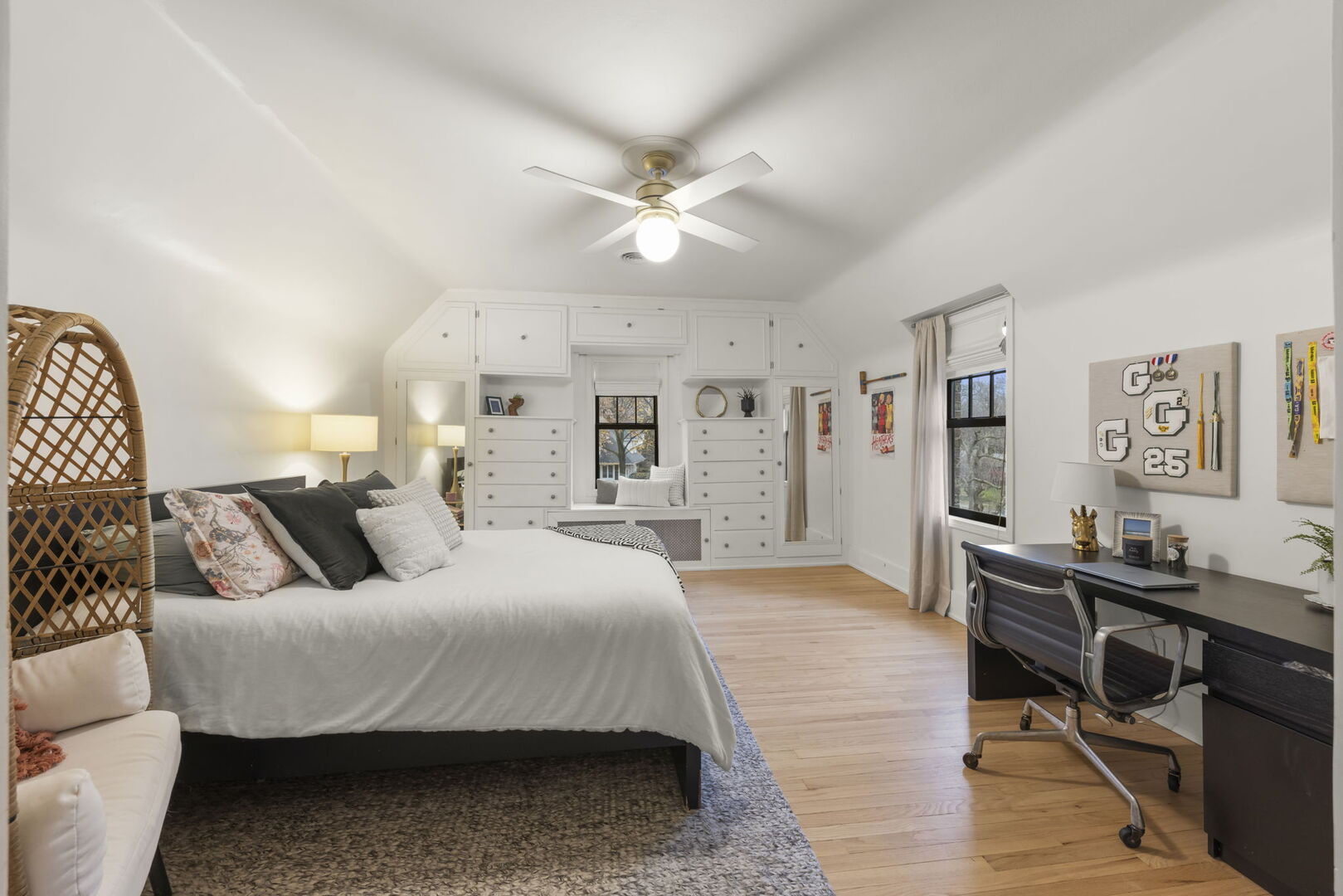 Charming 4 bedroom/3.1 bath Brick Tudor with Timeless Character and Modern Updates. Welcome to this storybook brick Tudor, where classic architecture meets refined modern living. Nestled on a picturesque tree-lined street, this beautifully maintained home offers exceptional curb appeal with its steep gabled roof, arched entryway, elegant columns, and rich architectural detailing. Mature landscaping and vibrant seasonal foliage frame the property, creating a warm and inviting first impression. Step inside to a bright, airy foyer wrapped in windows, where natural light pours across the patterned mosaic tile floor. A vaulted ceiling with beadboard detailing and a sparkling statement chandelier add a touch of luxury. The black-framed French doors and windows offer stunning views of the surrounding greenery, while the thoughtful layout provides an ideal transition into the rest of the home. This residence seamlessly blends historic charm-such as original brickwork and classic millwork-with sophisticated updates designed for contemporary living. Every detail has been curated to create a home that’s as comfortable as it is beautiful. Thoughtfully designed Kitchen With Modern Elegance. Step into a beautifully curated kitchen where timeless design meets modern luxury. Anchored by an expansive Belvedere quartzite island with waterfall edges, this space offers generous seating and a striking focal point for entertaining. Sleek pendant lighting with warm metallic accents adds a soft glow over the island, complementing the sophisticated contrast of dark and light finishes. Custom floor-to-ceiling cabinetry provides abundant storage and a seamless, built-in look, while high-end appliances-including a gas range set against a charming brick backsplash-deliver both style and functionality. The arched doorways add architectural character and create a graceful flow into the adjoining dining area, where contemporary lighting and natural textures create an inviting atmosphere. Bright, open, and thoughtfully designed, this kitchen is the perfect blend of luxury, comfort, and craftsmanship-ideal for everyday living and exceptional gatherings. Primary suite complete with private office, walk-in closet and spa-like bath with large shower, soaker tub and radiant heated floors. The finished basement is designed for multi-purpose – workout room, workshop/storage, office/craft, recreation room w/media area and separate space for Ping Pong/pool table. Fenced backyard is beautifully landscaped and includes 2 patios. Perfectly situated close to local shops, parks, and neighborhood amenities, this distinctive property offers the rare opportunity to own a home that is truly one-of-a-kind.