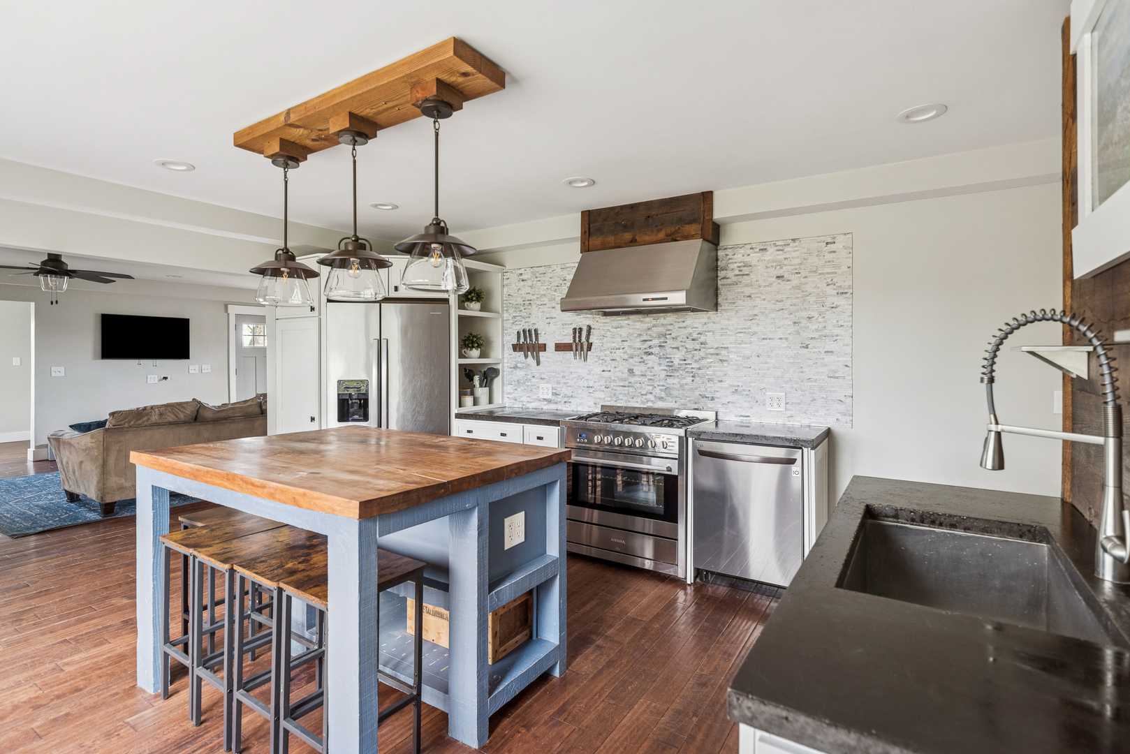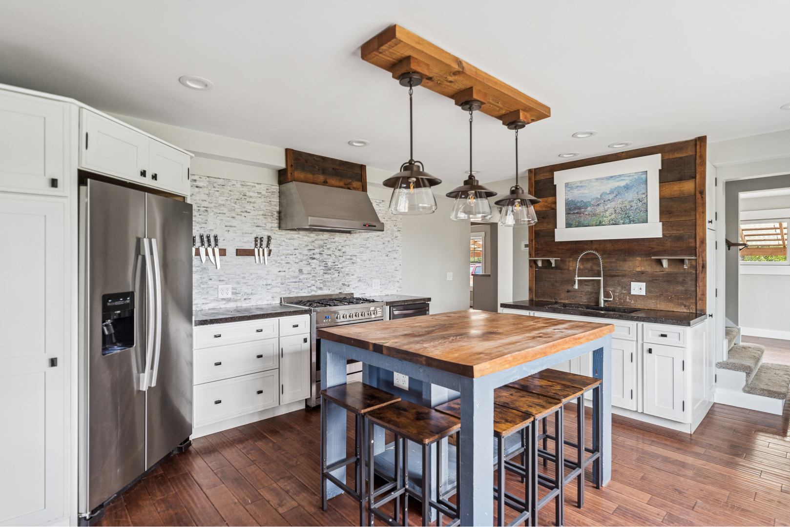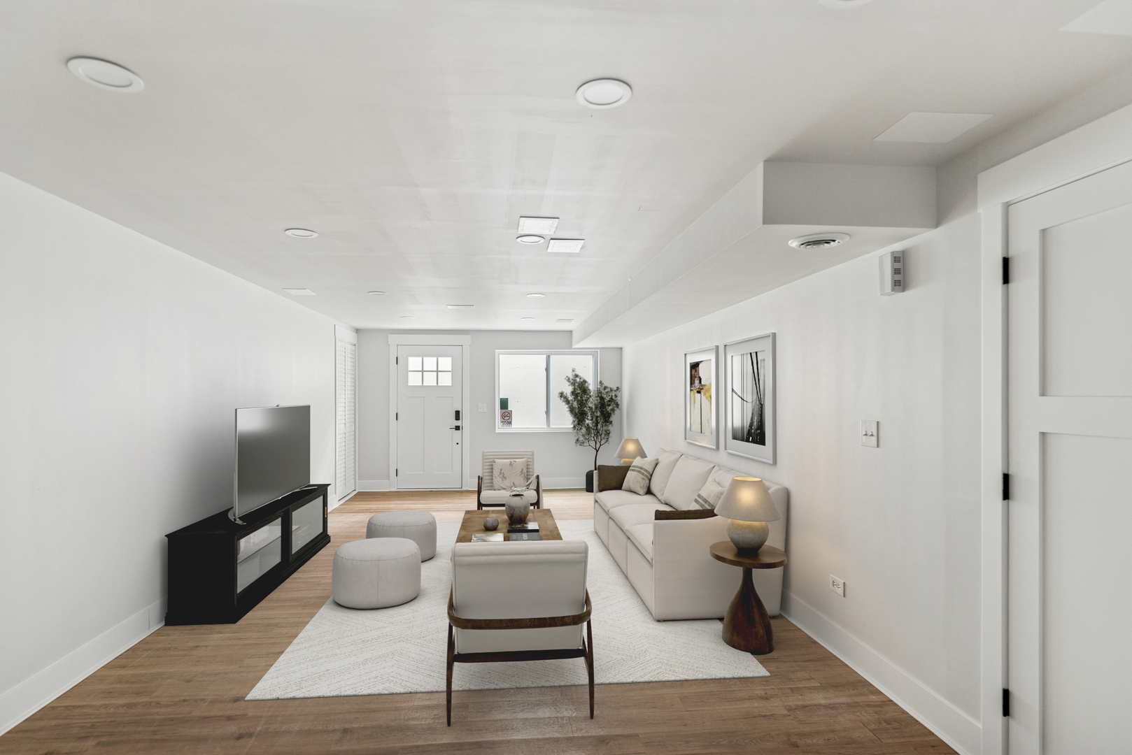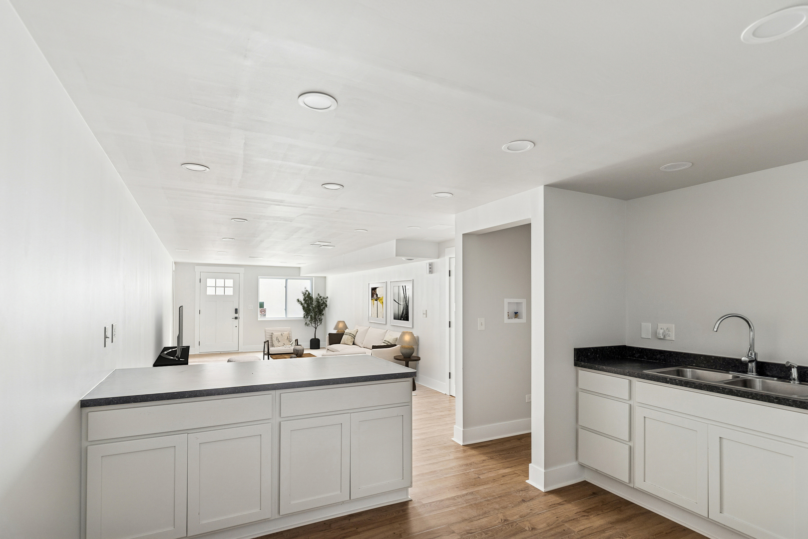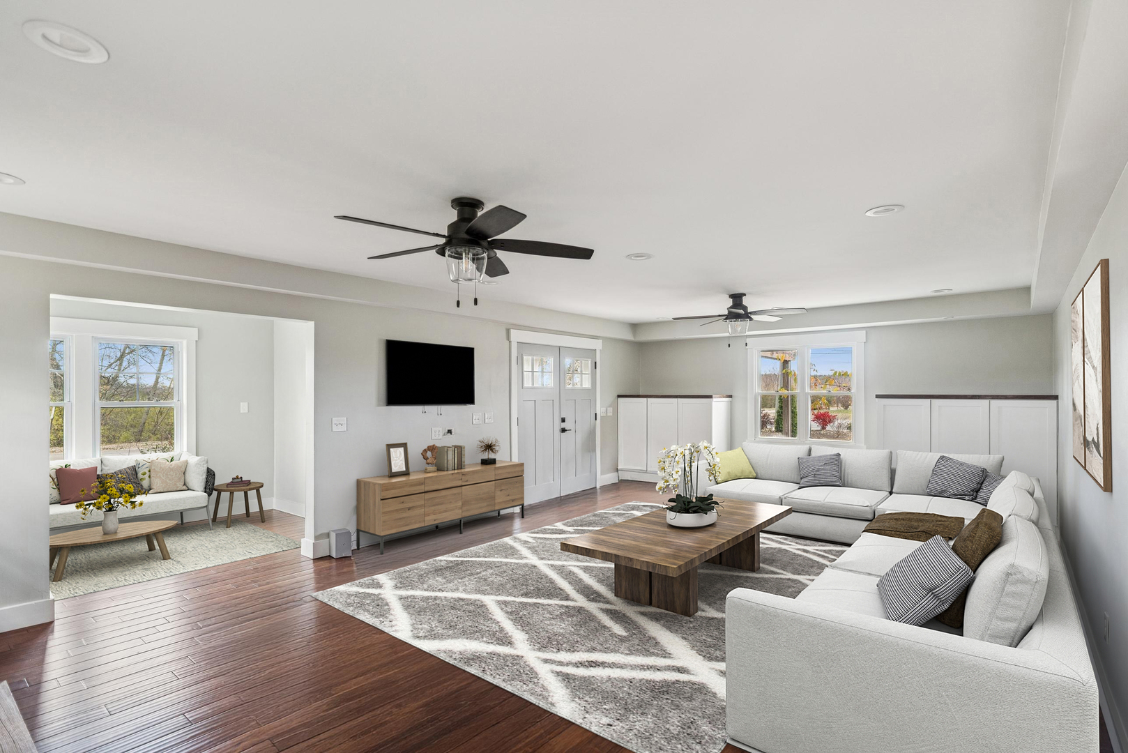 Originally built in 1945 this completely renovated farmhouse blends classic character with modern comfort. The main level features a bright and open layout with new hardwood floors, new windows, and abundant natural light throughout. A charming sunroom overlooks the private backyard, offering a peaceful place to relax. The home offers one main-level bedroom and three additional bedrooms upstairs, with 2 full bathrooms providing plenty of space for family, guests, or a dedicated home office. The fully finished lower lever is a standout feature-a complete secondary apartment with its own private entrance. It includes two additional bedrooms, two full bathrooms, a second kitchen, and generous living spaces, making it perfect for multi-generational living, home business or long-term guests. Located in a central, convenient location and backing up to Thompson Elementary School, this property offers both privacy and accessibility. With its thoughtful updates, modern amenities, and flexible layout, this home is truly move-in ready and full of potential.