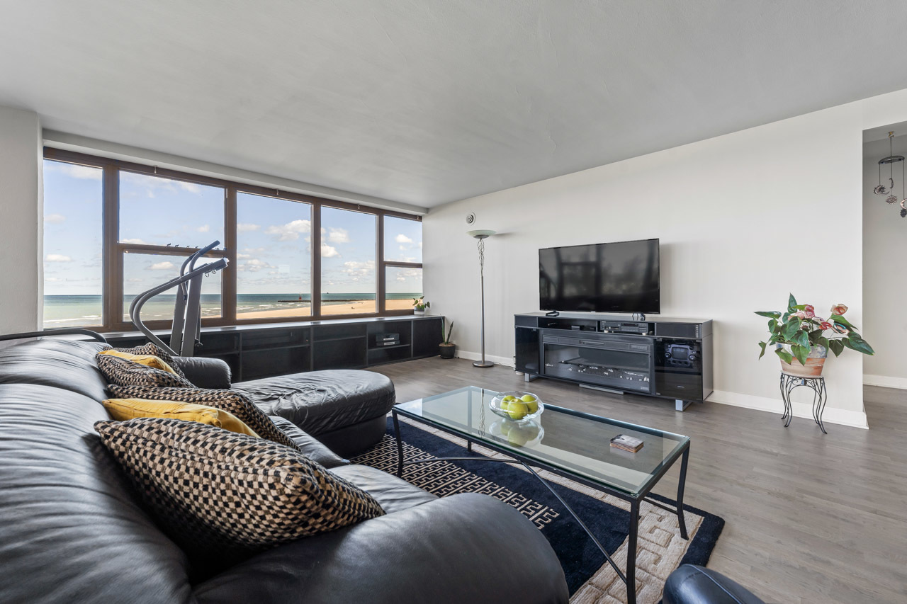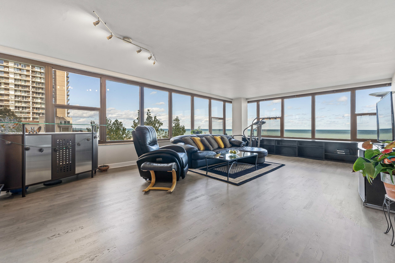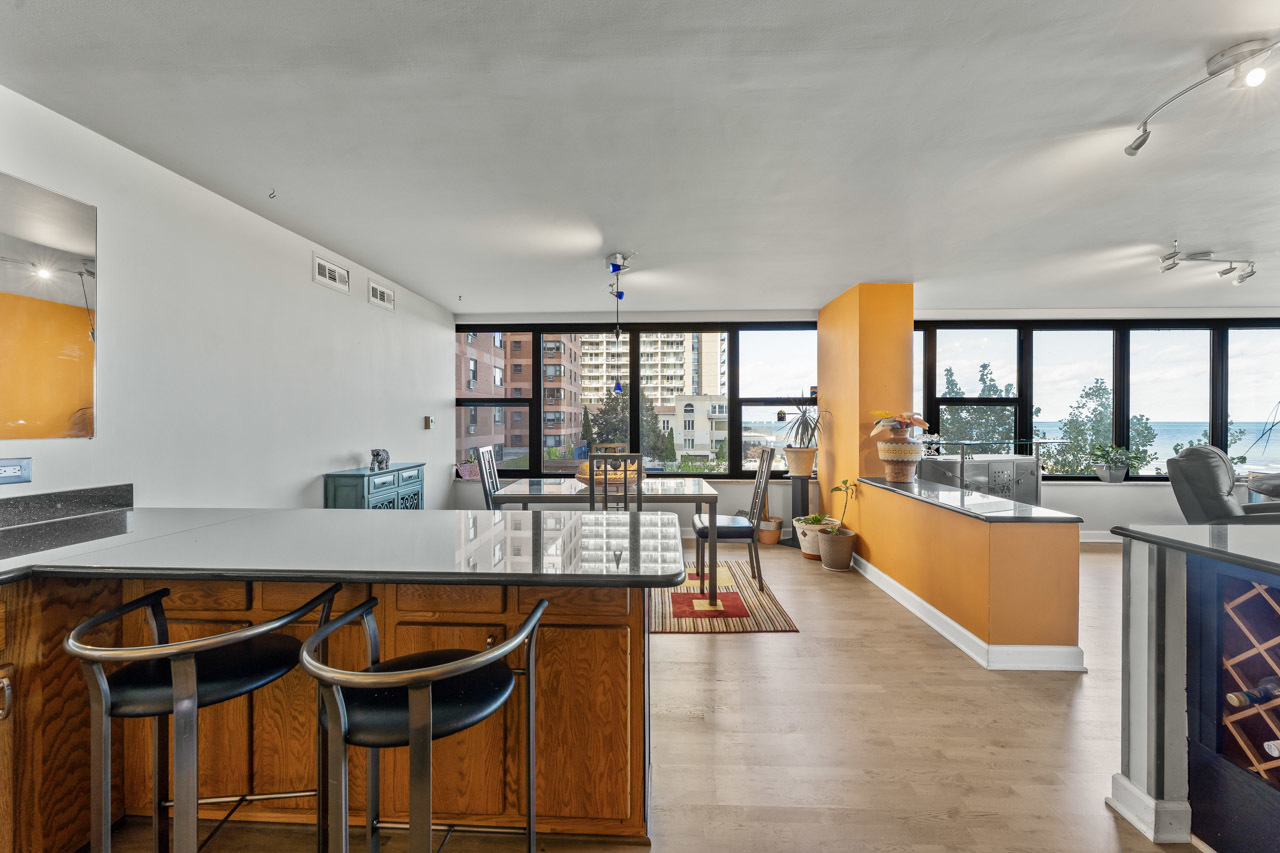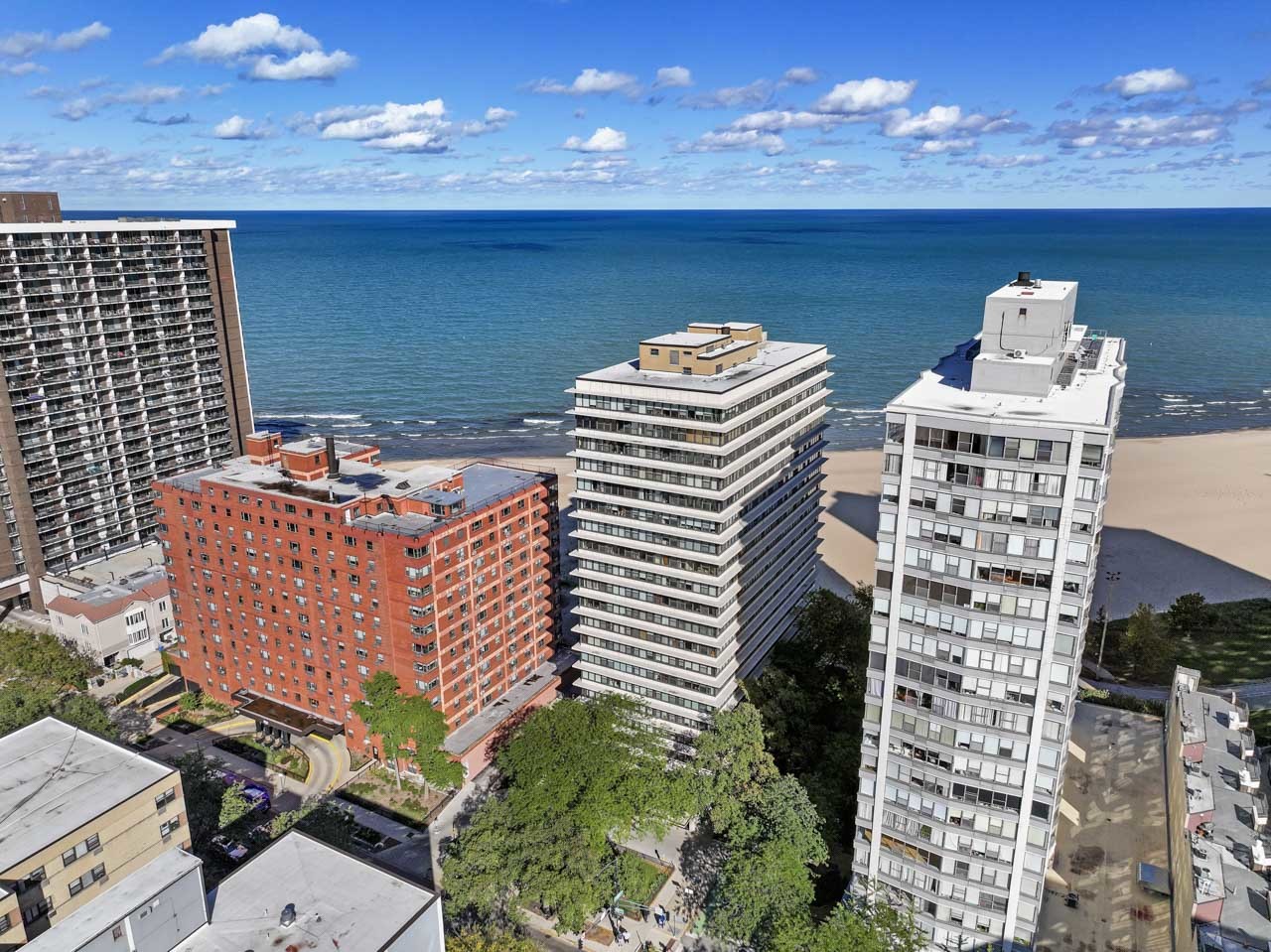 Wake up every morning to stunning lake views from this spacious 2-bedroom, 2-bath residence at 5801 N Sheridan Rd – one of the largest layouts in the building, offering approximately 1,600 square feet of comfortable living space. Enjoy the rare combination of a serene East Lake exposure and an unbeatable location where the beach truly feels like your front yard. The expansive living room is filled with natural light, perfect for relaxing or entertaining, while the updated kitchen showcases granite countertops, stainless steel appliances, and a separate dining area ideal for gatherings. Both bedrooms are generously sized with beautifully finished vinyl floors, and the porcelain-tiled foyer adds a sleek touch upon entry. Residents appreciate convenient building amenities including a welcoming outdoor patio with grilling area, a private party room, and on-site laundry. Garage parking with valet service is also available. Step outside and explore everything Edgewater has to offer – from direct access to the lakefront paths perfect for biking, running, or evening strolls, to the easy walk to nearby shops, cafes, and CTA Red Line stops. A front door pickup for express bus service to downtown makes commuting simple and stress-free. This east-facing unit combines the comfort of city living with the tranquility of lakeside life – truly a rare find in one of Chicago’s most desirable north-side communities.