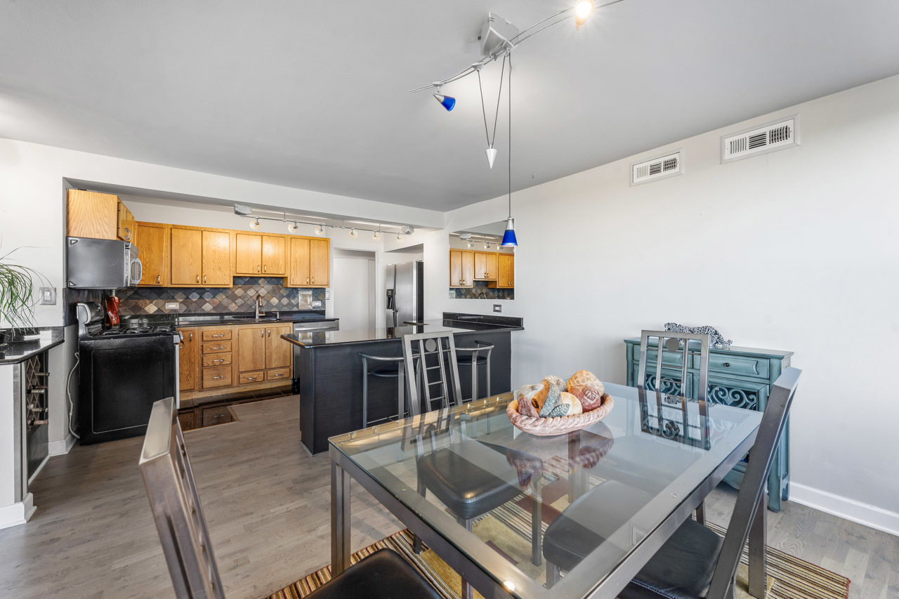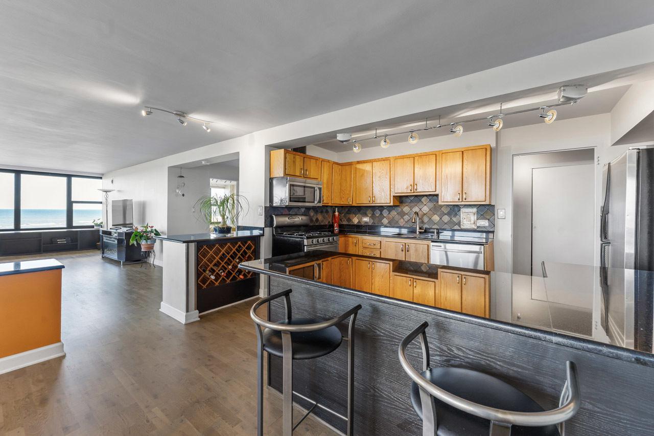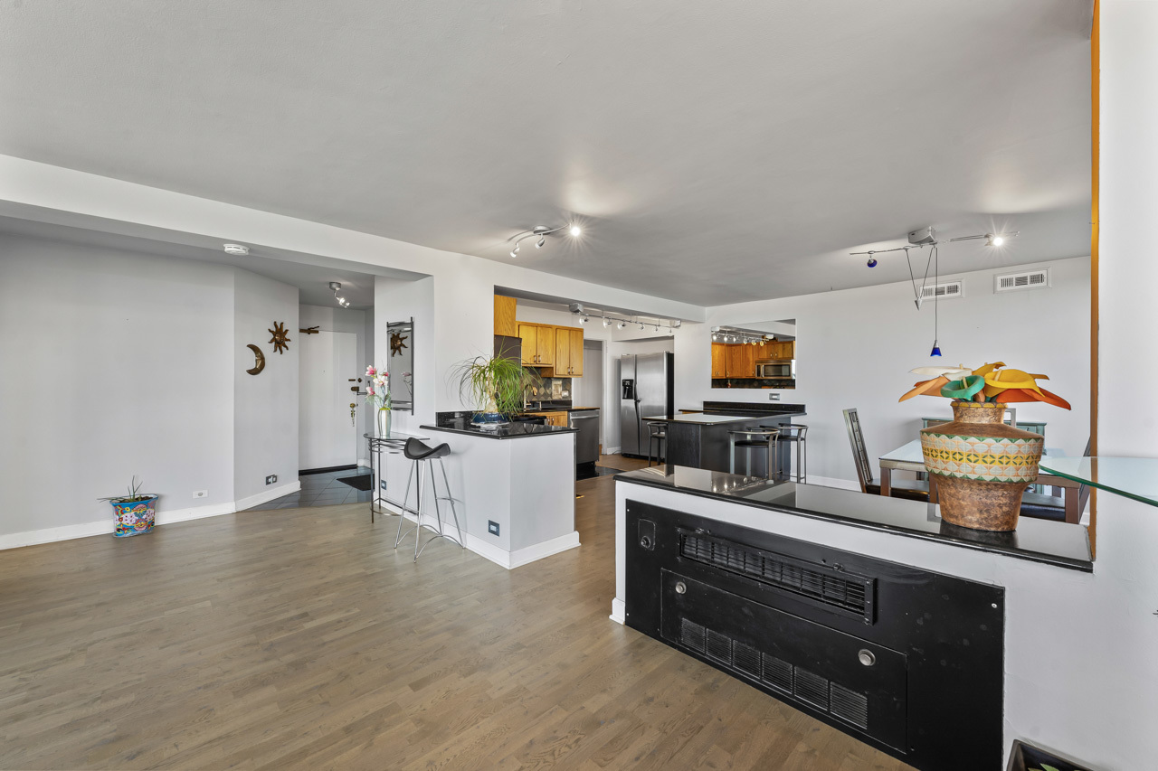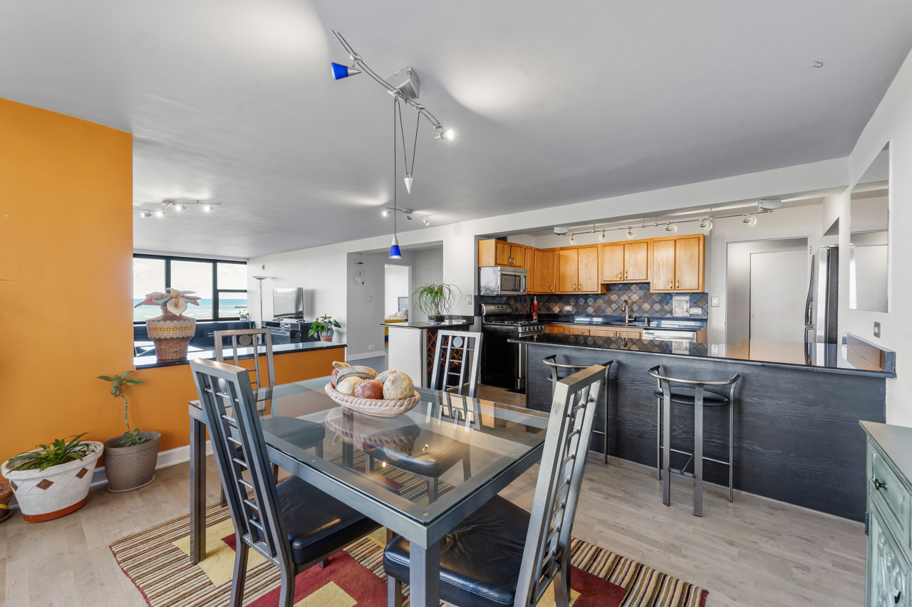 Wake up every morning to stunning lake views from this spacious 2-bedroom, 2-bath residence at 5801 N Sheridan Rd – one of the largest layouts in the building, offering approximately 1,600 square feet of comfortable living space. Enjoy the rare combination of a serene East Lake exposure and an unbeatable location where the beach truly feels like your front yard. The expansive living room is filled with natural light, perfect for relaxing or entertaining, while the updated kitchen showcases granite countertops, stainless steel appliances, and a separate dining area ideal for gatherings. Both bedrooms are generously sized with beautifully finished vinyl floors, and the porcelain-tiled foyer adds a sleek touch upon entry. Residents appreciate convenient building amenities including a welcoming outdoor patio with grilling area, a private party room, and on-site laundry. Garage parking with valet service is also available. Step outside and explore everything Edgewater has to offer – from direct access to the lakefront paths perfect for biking, running, or evening strolls, to the easy walk to nearby shops, cafes, and CTA Red Line stops. A front door pickup for express bus service to downtown makes commuting simple and stress-free. This east-facing unit combines the comfort of city living with the tranquility of lakeside life – truly a rare find in one of Chicago’s most desirable north-side communities.