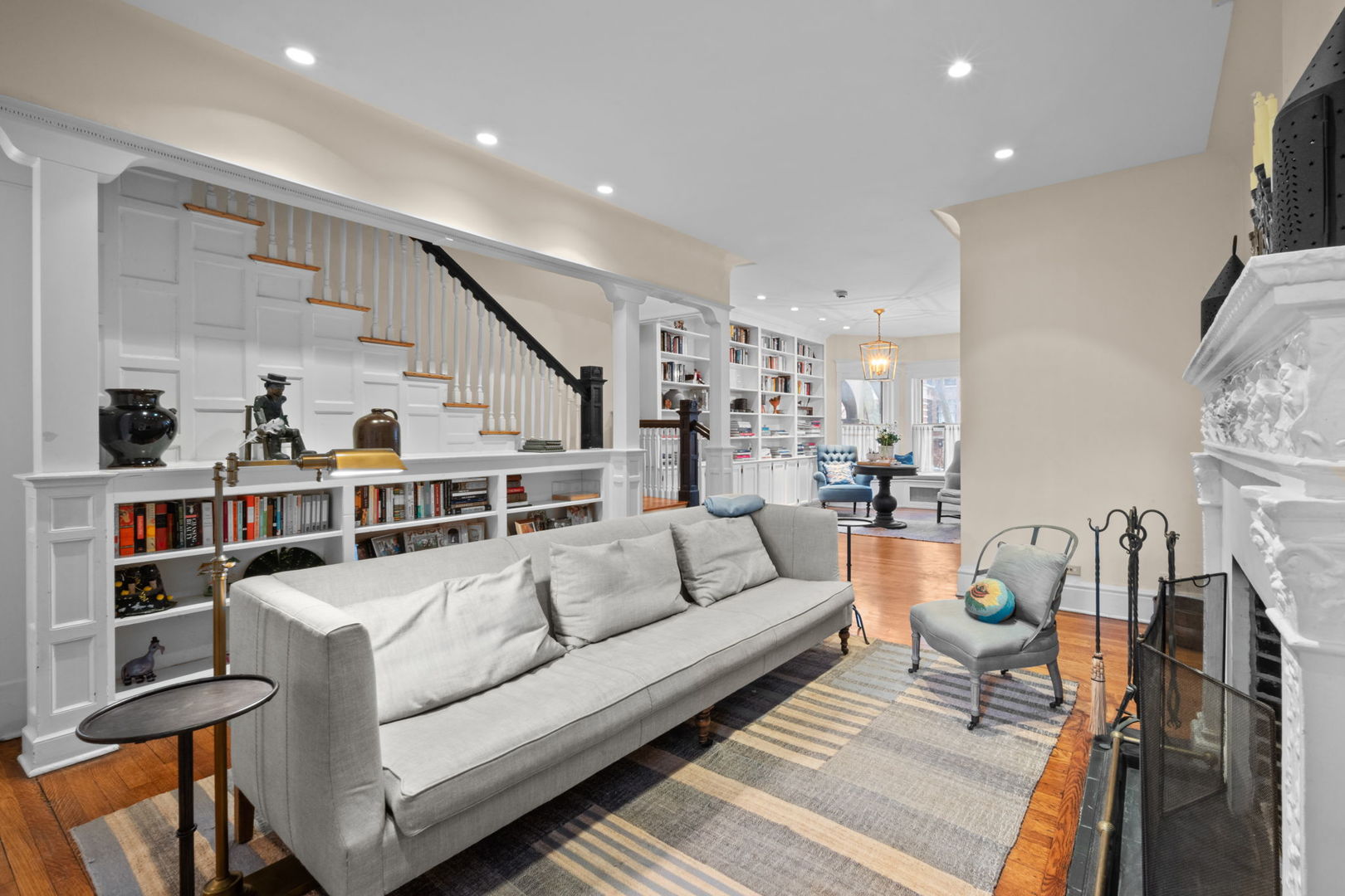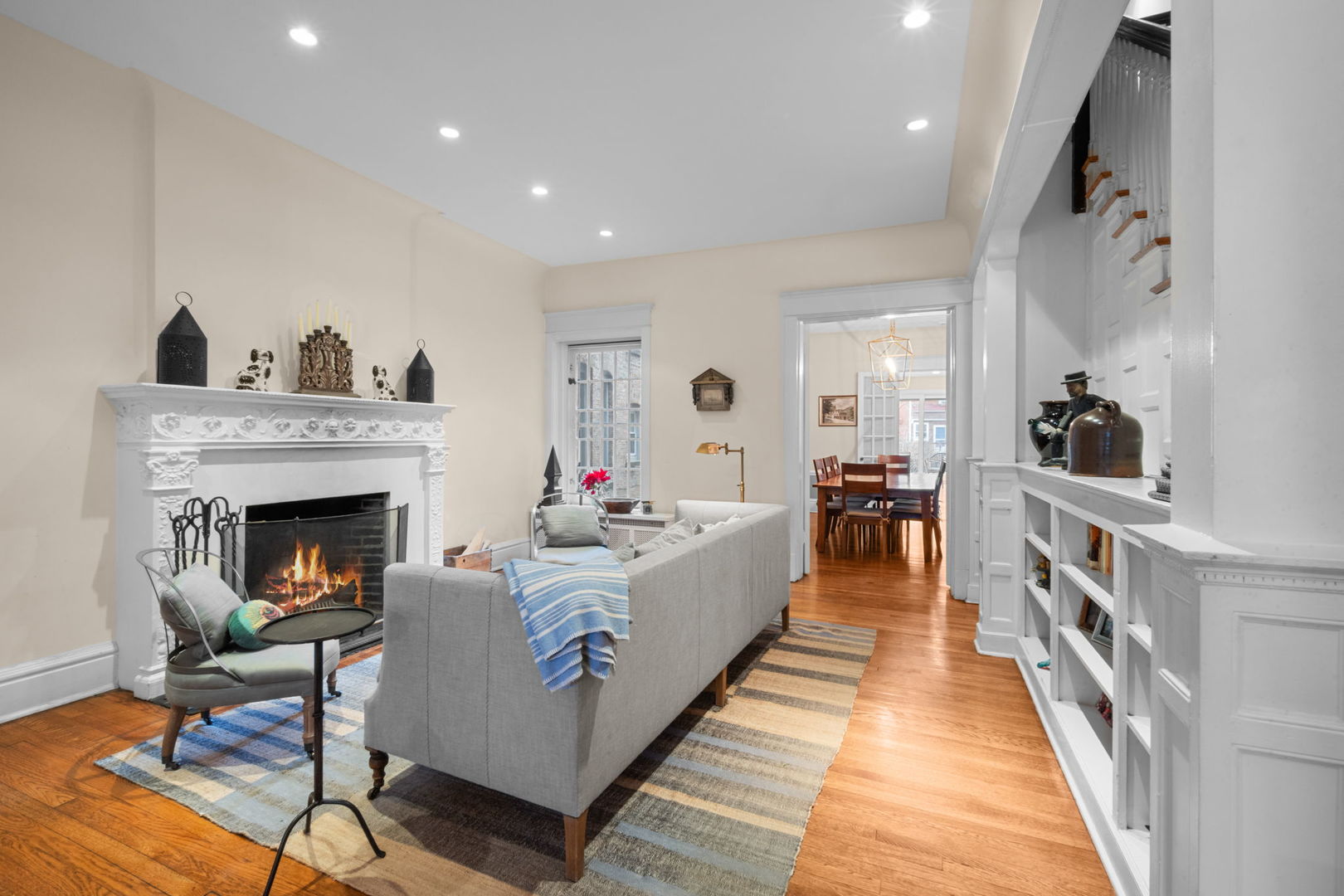 Welcome home to this wonderful Hyde Park Greystone, perfectly located steps from Lab School, the University of Chicago, lakefront and all the amenities of Hyde Park. Meticulously maintained and updated, this home retains many beautiful vintage details. Five bedrooms, 4 and a half baths and many social and family spaces. Newer roof and kitchen, updated bathrooms, central A/C with newer compressor and air handler, new boiler and new hot water tank. Step in to double parlors with bay window, built in bookcases and wood burning fire place. Separate dining room leads to great, sunny eat-in kitchen and back deck. Private lush garden. Primary suite with new bathroom, 3 additional bedrooms and a bath is found on the second level, and on the third floor an office and a family room (potential primary suite with luxuries bath and walk in closet). Basement is finished with family space, an additional office/ craft room (or bedroom for guests or live in) with full bath and exterior access. Laundry room and good storage and bike area. Home is beautifully decorated with designer window treatments and light fixtures throughout. Welcome!