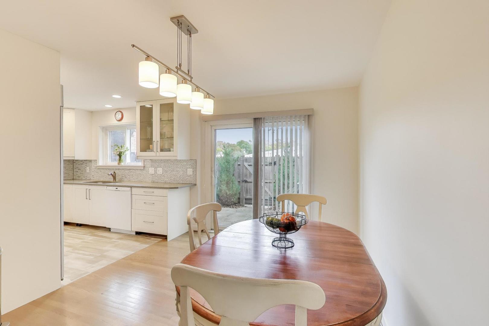 This is the stylish, move-in-ready townhome you’ve been waiting for! Located just steps from town, the train, parks, library, and health club – it’s all about convenience and lifestyle. Inside, enjoy a stunning, fully renovated interior featuring high-end finishes throughout. The kitchen and bathrooms boast beautiful cabinetry with soft-close doors, quartz countertops, and a sleek glass mosaic backsplash. Appliances include a stainless cooktop with hood, built-in oven, dishwasher, and microwave. The open-concept kitchen flows seamlessly into the dining room – the dividing wall was removed to create a spacious layout perfect for entertaining. A custom, built-in, floor-to-ceiling lighted cabinet with glass doors adds elegance and storage. Enjoy rich hardwood flooring throughout (no carpet!), stone flooring in the kitchen, all-new brushed nickel hardware, solid-core 2- and 6-panel doors, and stylish modern stair rails. Lighting was fully upgraded with all-new fixtures and recessed lights. Step outside to a beautifully fenced and professionally landscaped patio with privacy evergreens – perfect for outdoor relaxing or entertaining. You’ll love the organized closets, including a cedar closet, a large laundry area with a washer/dryer and utility sink, and abundant storage in the basement. Roof and gutters were new in 2022. Truly move-in ready. Located in the highly rated Barrington school district!