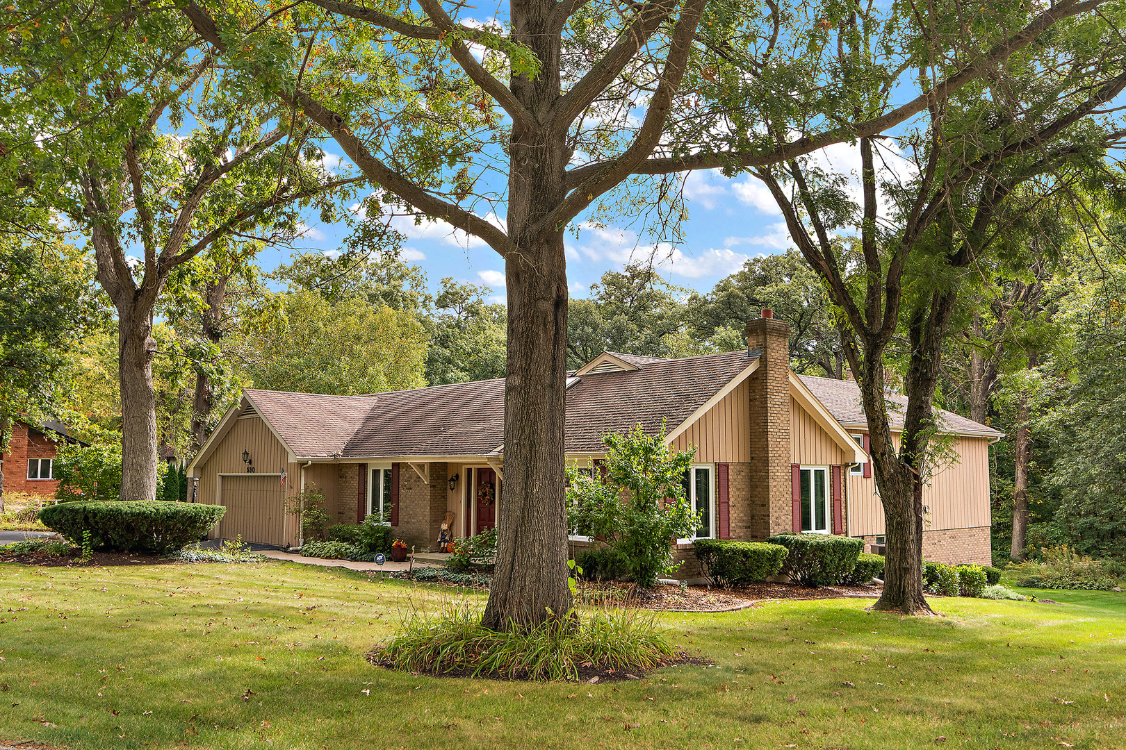 Unbelievable private residence, offering an extreme level of seclusion within the Prestwick subdivision. This warm and inviting home features a large foyer, spacious sunken living room and formal dining room, 3 updated bathrooms including full primary suite and a beautiful kitchen with a dinette that provides great views of the huge wooded lot. There are two cozy family rooms, both featuring fireplaces, and an inviting wet bar. The lower level includes an office and a storage area with above-ground windows. The laundry room is equipped with a sink and cabinets, and there is an oversized 2.5-car garage as well as a relaxing paver patio. The home boasts numerous updates, including 3 fully remodeled bathrooms completed within the last few years. Additional features include newer windows, a newer driveway, a new water heater, newer furnace and central air, a two-year-old humidifier, zoned heating and air conditioning, can lights, French doors, crown molding, parquet floors, and many more impressive features!