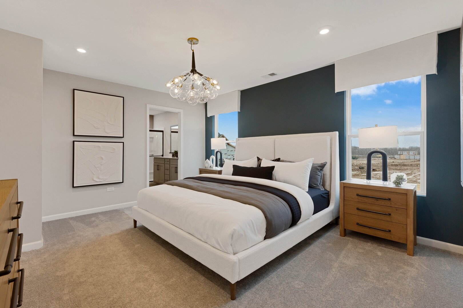 Welcome home to Naperville Polo Club-the ONLY NEW single-family neighborhood in desirable Naperville including Naperville Park District and Naperville City Services, conveniently located near shopping and dining off of Route 59 and easily accessible to the expressway. On site Community Park and Walking/Biking trails leading to 300 acres of Forest Preserve adjacent to the community. The Nelson is a NEW plan only available at Naperville Polo Club! This beautiful family home has a soaring two-story entry and 11′ gathering room with an open floor plan. Designer features include 9′ ceilings on first floor, luxury vinyl plank wood flooring in foyer, kitchen, cafe, powder room and all bathrooms. Your gourmet kitchen is complete with SS appliances, 42″ cabinets, a beautiful ceramic tile backsplash, granite counters and a large island plus a walk-in pantry. Your owner’s bedroom suite features a private bath with double bowl vanity with quartz counter and separate tiled shower. You will enjoy the convenience of a 1st floor laundry. The loft is the perfect space for family games or watching tv. You have a flex room that is perfect for a home office. Your fully sodded homesite has a front landscaping package. We include an unmatched transferrable warranty. Homesite 181. Photos of similar home shown with some options not available at this cost.