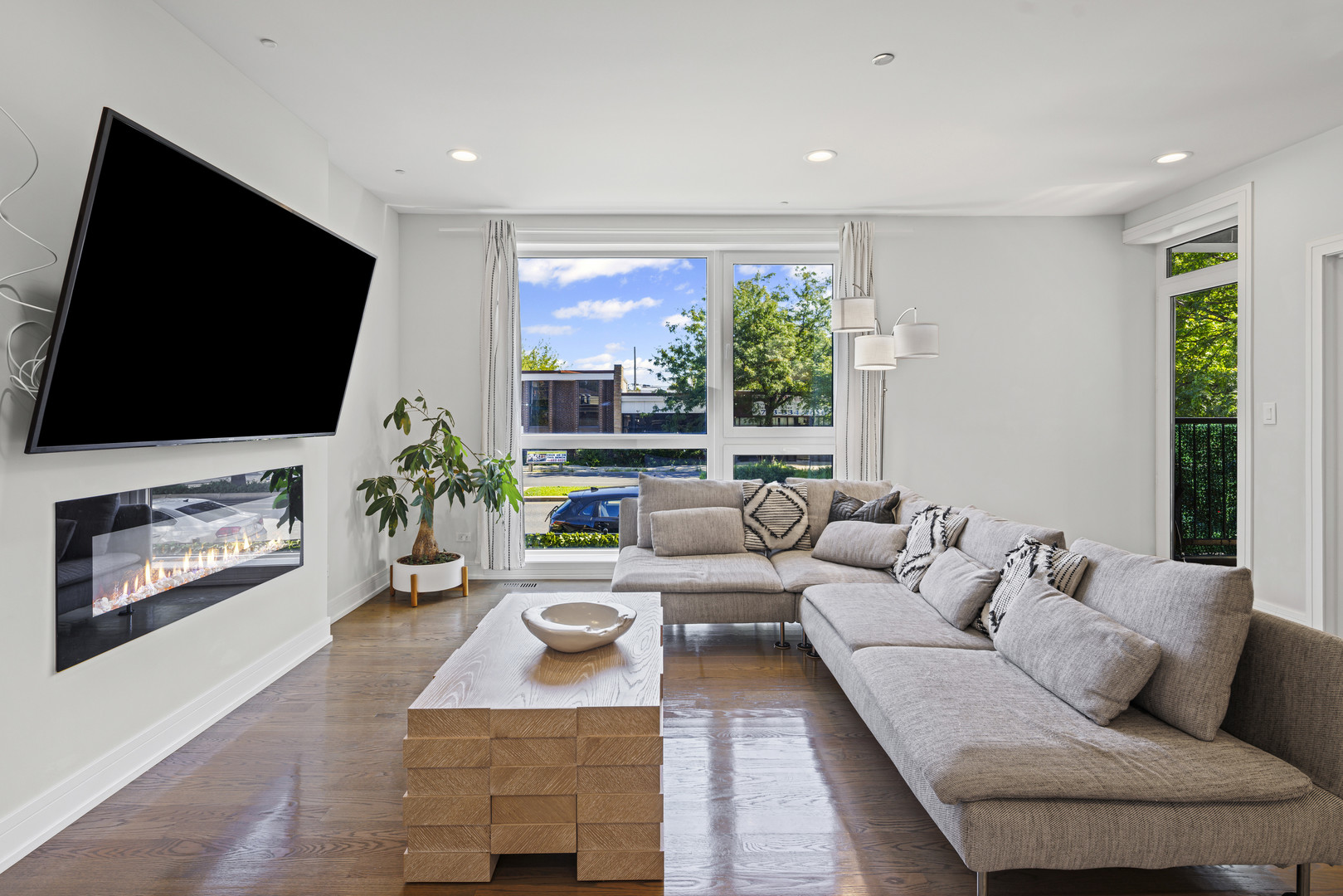 Welcome to this newly constructed condo/duplex featuring a modern design blended with everyday comfort! This spacious two-story home offers over 1,800 square feet of living space, including 3 bedrooms and 3 bathrooms. The first floor showcases glamorous oak hardwood floors, an open-concept kitchen with an oversized island, extra cabinet space, and one versatile bedroom-perfect as an office, home gym, or guest room. The kitchen is flooded with natural light and features floor-to-ceiling windows, quartz countertops, a tiled backsplash, and Samsung stainless steel appliances. Recent updates include luxury, scratch-resistant vinyl flooring throughout the lower level and tastefully updated tiles in the master bathroom. The master bedroom includes a large walk-in closet and a full en-suite bathroom. The lower level also offers an in-unit laundry area, an additional full bathroom, and another generously sized bedroom. Do not forget the convenience of connecting your audio visual for the perfect sound-unit comes with wired speakers system. Enjoy your privately owned, fenced-in outdoor space-ideal for a morning coffee or evening relaxation. Perfectly situated next to a community garden and just steps from parks, running paths, restaurants, Mather High school, Jamieson Elementary school and shops, this home offers unmatched convenience. With easy access to public transit and the expressway, it’s both commuter- and investor-friendly. A rare opportunity to enjoy the Lincoln Square lifestyle at a fraction of the cost. Come and check out. Motivated seller.