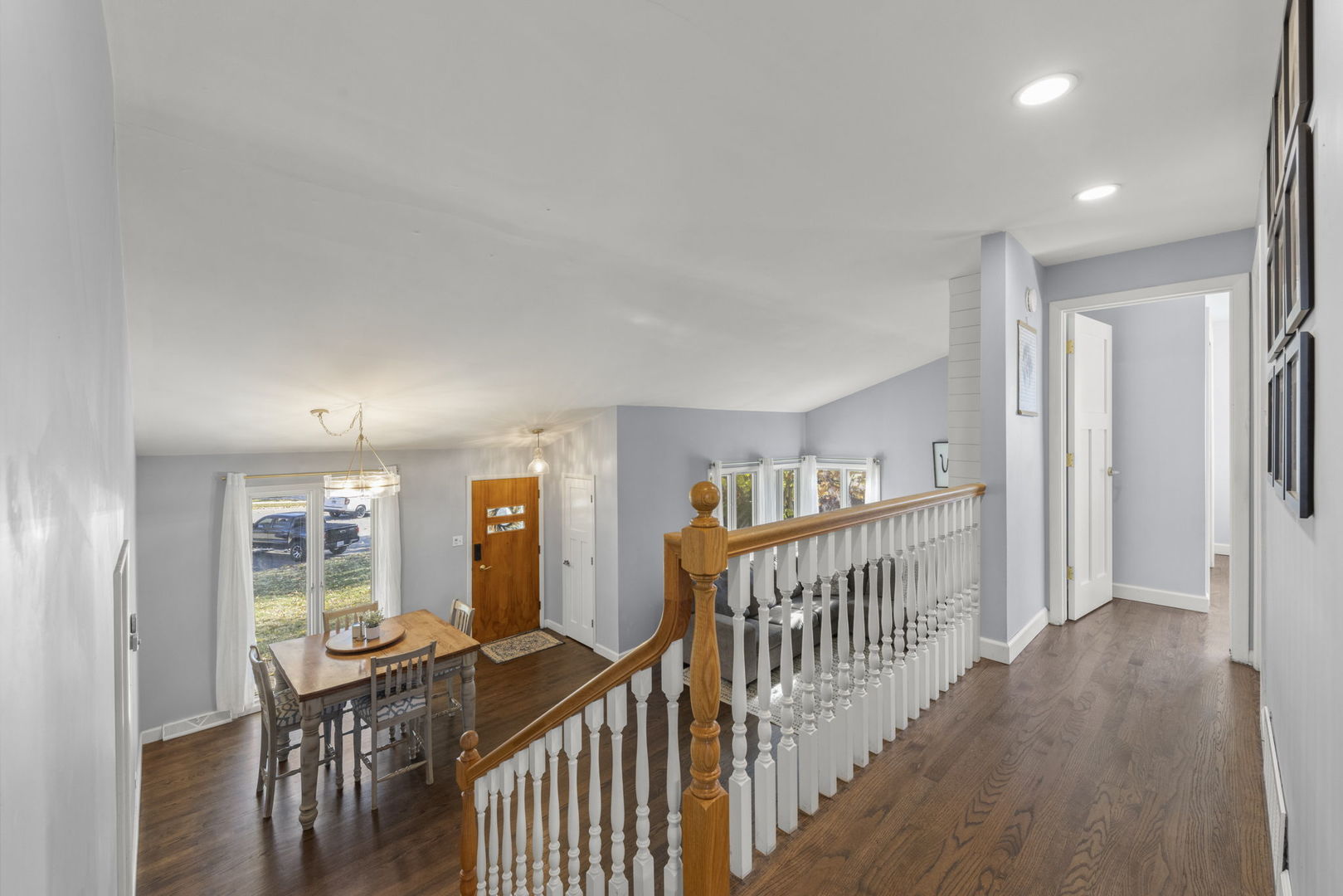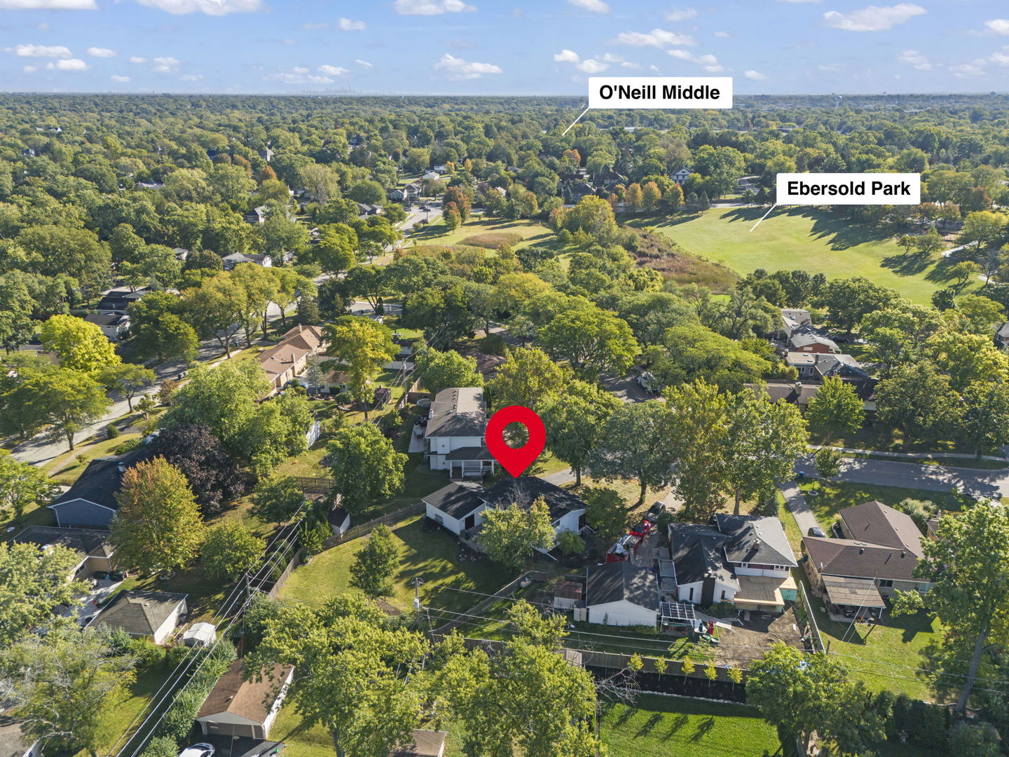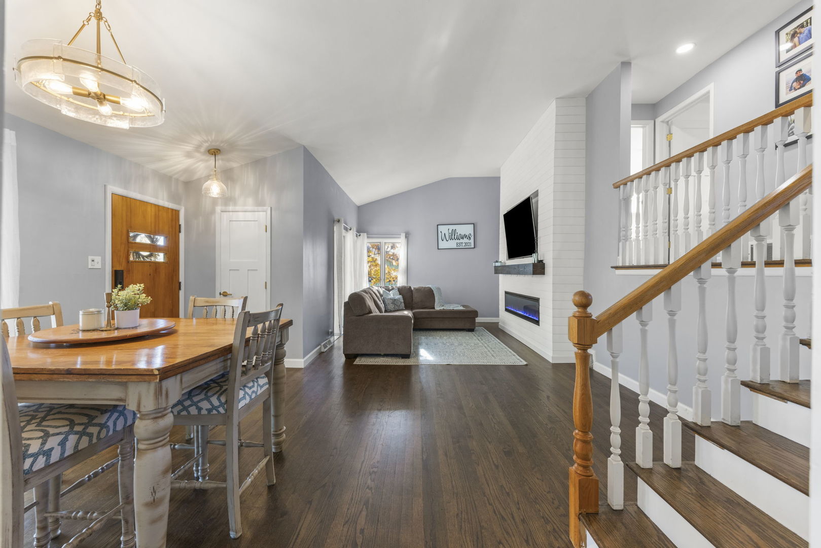 Bright and beautifully updated, this solid home with a mid-century modern vibe offers nearly 2,400 sq. ft. of total living space on a quiet semi-cul-de-sac near both Hillcrest Elementary and O’Neill Middle School. The main level features vaulted ceilings, expansive windows, and open sightlines that fill the home with natural light. In 2024, the home received a new roof, updated plumbing and electrical systems, and new hardwood flooring throughout. Custom accent walls, upgraded moldings, and fresh paint add warmth and character to every room. The living room showcases a stunning shiplap feature wall with a modern electric fireplace and custom wood mantel, creating the perfect focal point for gatherings. The kitchen features a new stove, microwave, and washer/dryer (2025) for a fresh, move-in-ready experience. The finished english lower level includes a fourth bedroom, and a full bathroom-ideal for guests, a playroom, or home office. A large unfinished sub-basement provides ample storage, workspace, and laundry. The oversized 2.5 car garage offers generous storage with double-door access to the brick patio and expansive backyard, nearly fully fenced and perfect for entertaining, gardening, or play. Close to Ebersol Park, Hillcrest School, the YMCA, and major highways-this home beautifully blends mid-century character with today’s modern updates. Ask listing agent for a list of features & improvements!