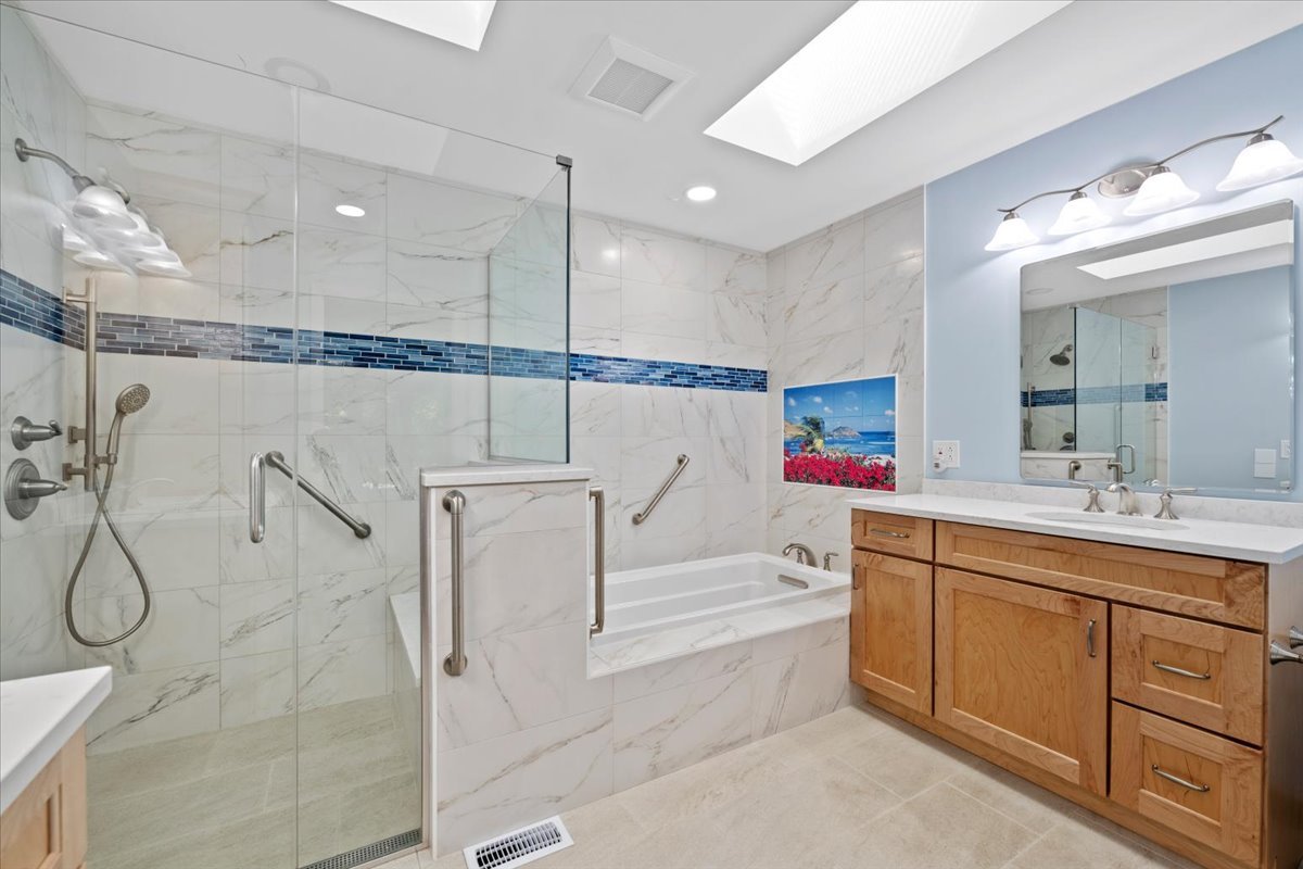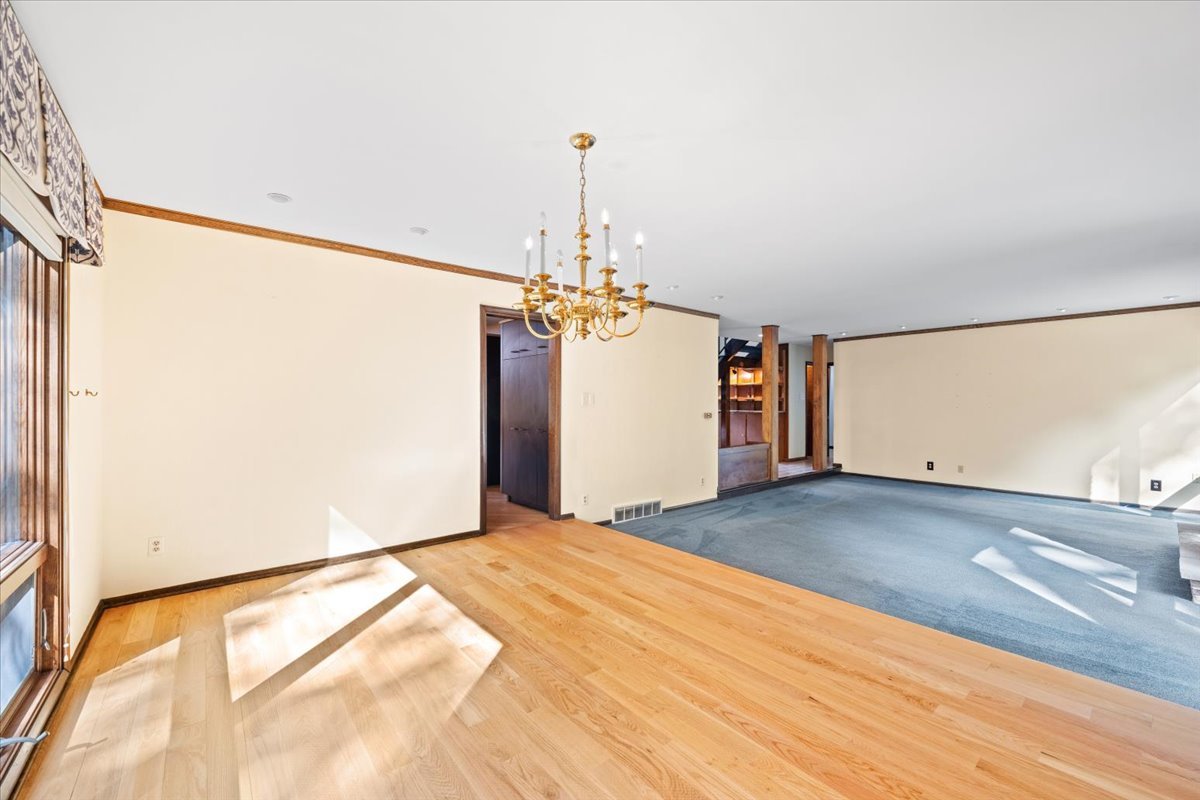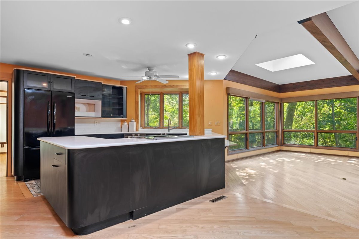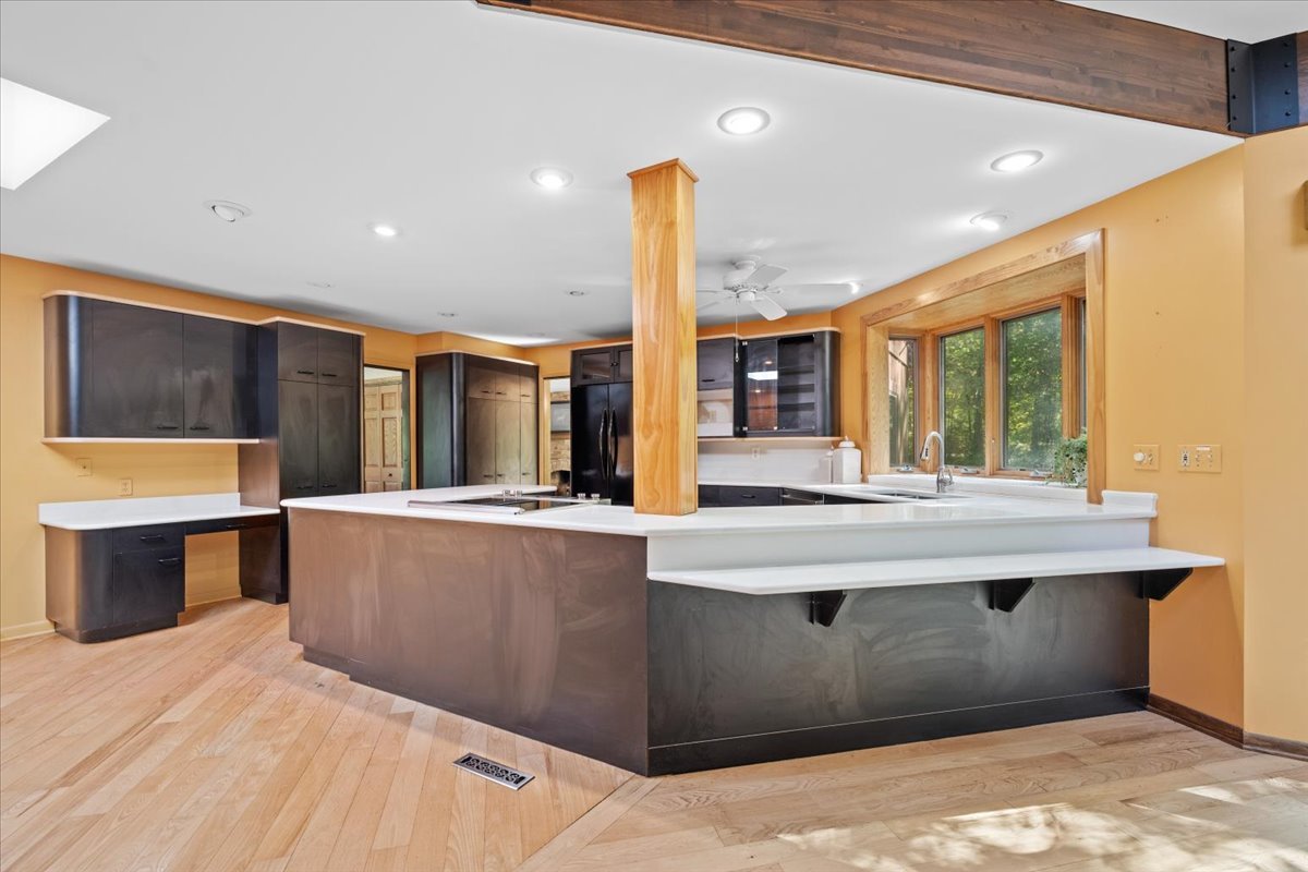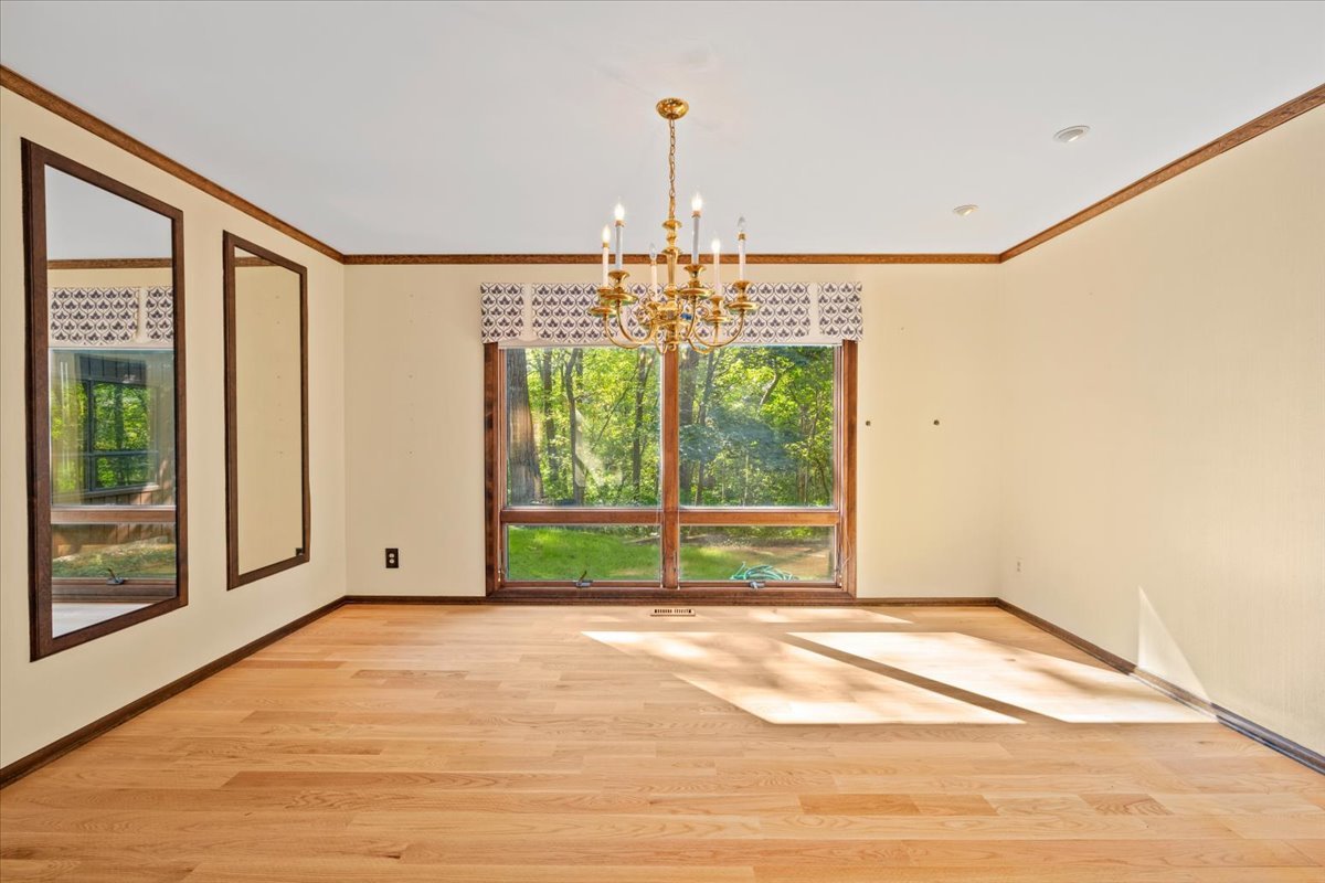 Nestled on a beautiful 1.6 acre wooded lot, this spacious home offers a balance of peaceful tranquility and comfortable living and is perfect for entertaining. The flexible floor plan provides a wonderful flow from the large family room that opens to the screened-in porch to the inviting living room with a second fireplace that connects seamlessly to the main living areas. A private first-floor den and an additional office nook off the family room offer two ideal work-from-home options, or versatile spaces to suit your lifestyle needs. The newer kitchen features solid surface countertops and opens to the expansive family room, creating the heart of the home. The newer remodeled primary bath is beautifully designed with heated floors and is handicap accessible. Step into the private screened-in porch and out to the Trex deck, perfectly nestled among the trees – a serene retreat for morning coffee or evening gatherings. The basement provides a blank canvas, ready for your personal touch and future possibilities. While this is an ESTATE SALE BEING OFFERED IN AS IS CONDITION, the sellers have provided valuable updates and information: dual HVAC systems, new sump pump (2020), new water heater (2025), new septic (2025), new retaining wall (2025), and most windows have been replaced. Experience your own private oasis – a property that feels worlds away, yet close to everything you need.