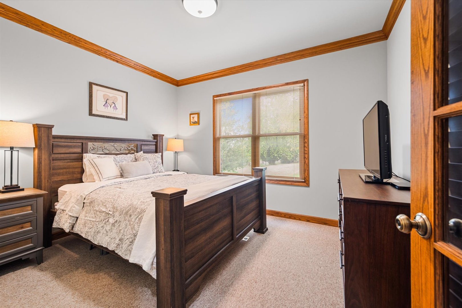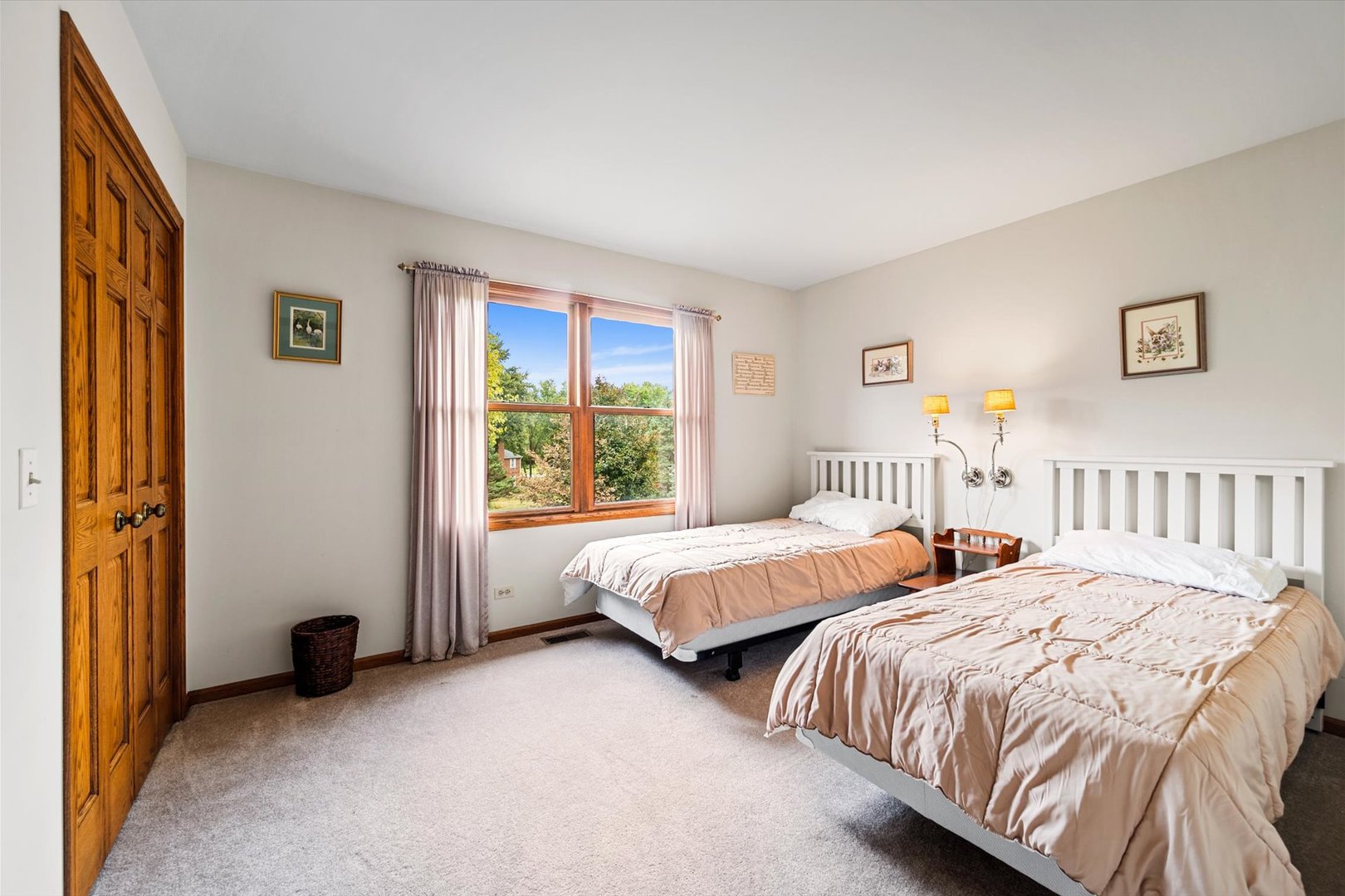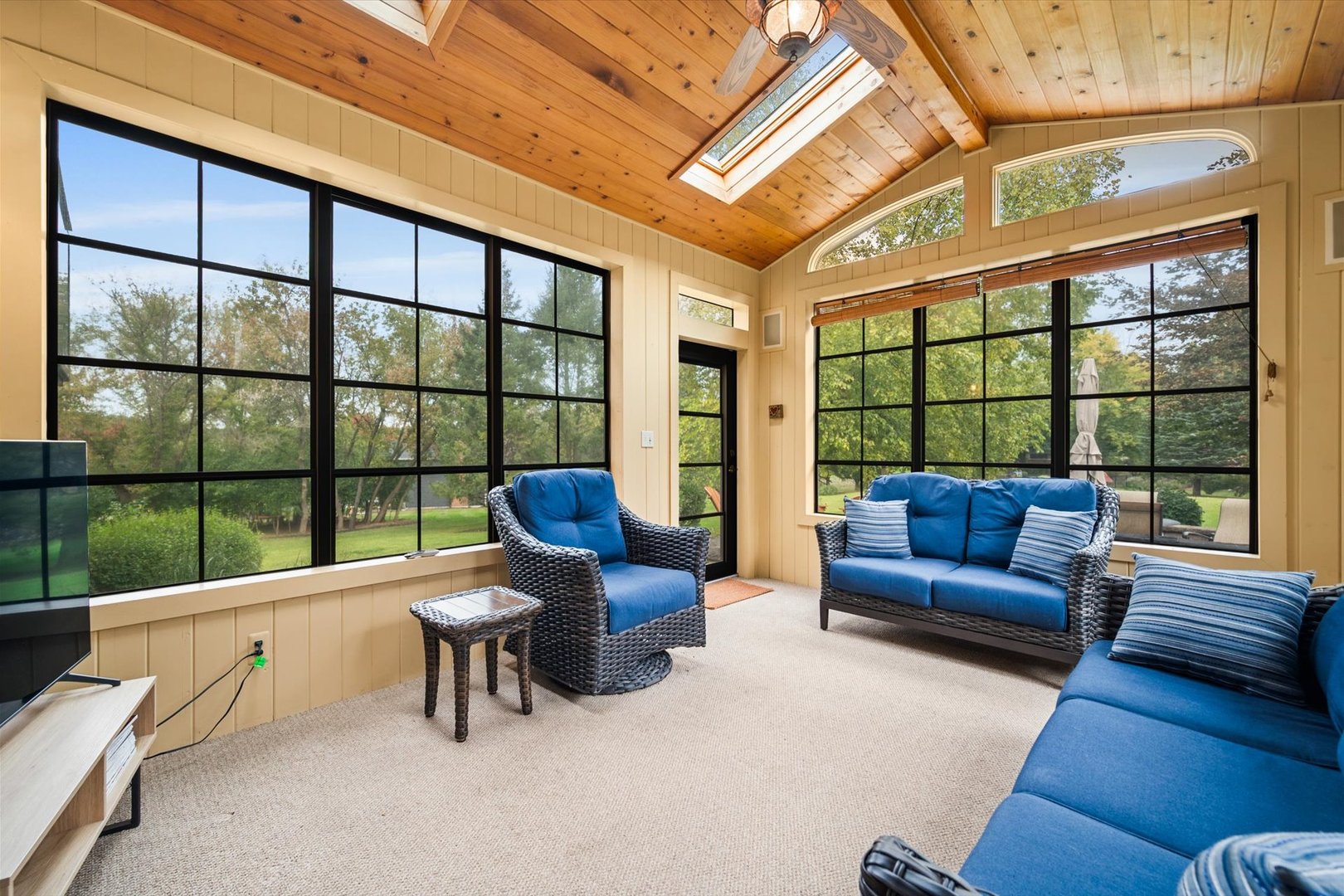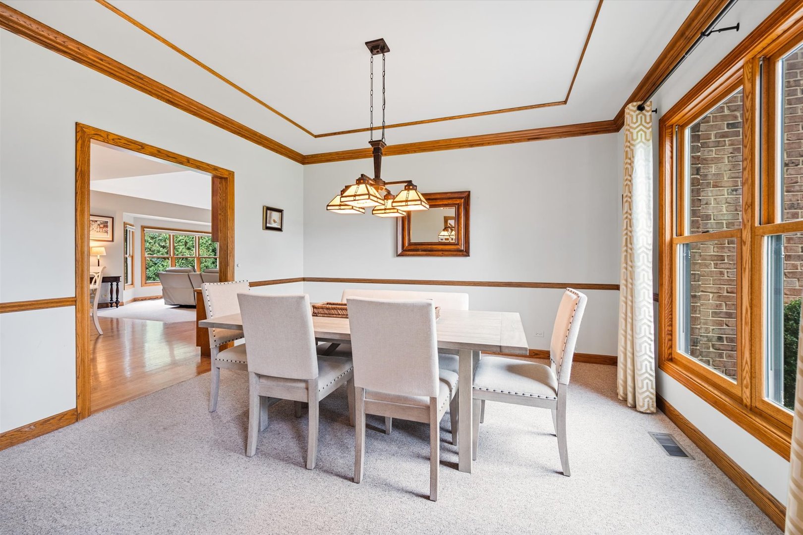 Stately brick-front home on a private lot with a deep backyard and gorgeous paver patio in an exclusive private enclave of Deer Run! Step inside the 2-story foyer with oak hardwood floors and crown molding that flow through to the kitchen. The spacious living room features pocket French doors and crown molding, while the formal dining room offers a chair rail, crown molding, custom recessed ceiling, and a wood-cased opening to the kitchen. The chef’s kitchen impresses with 42″ hickory cabinetry w/crown trim, granite countertops, stainless steel appliances, breakfast bar/island, pantry closet, planning desk, recessed lighting, and a bright eating area with slider to the patio. The family room has a vaulted beamed ceiling, floor-to-ceiling brick fireplace, and a big bay window overlooking the yard. A main-floor den or 5th bedroom with French doors and adjacent powder room makes a perfect guest suite. The large laundry/mudroom includes a sink, storage closets, and access to the garage and side yard. The highlight of the main floor is the 3-season sunroom with vaulted tongue-and-groove ceiling, walls of adjustable windows, skylights, panoramic views, and patio access. Upstairs, the primary suite boasts a tray ceiling, sitting area, two walk-in closets (one is 28×8!), and a luxury bath with vaulted ceiling, skylight, dual sink granite top vanity, corner whirlpool tub, and separate shower. Three generous secondary bedrooms-one with a vaulted ceiling-share a hall bath with dual sink granite top vanity and tub/shower combo. The full walk-out basement offers endless possibilities for future finishing. 3-car side-load garage, custom paver walkway, and paver patio offering beautiful outdoor entertaining space complete the package. Ideally located just minutes from downtown St. Charles and Randall Road shopping and dining! Come and take a look!