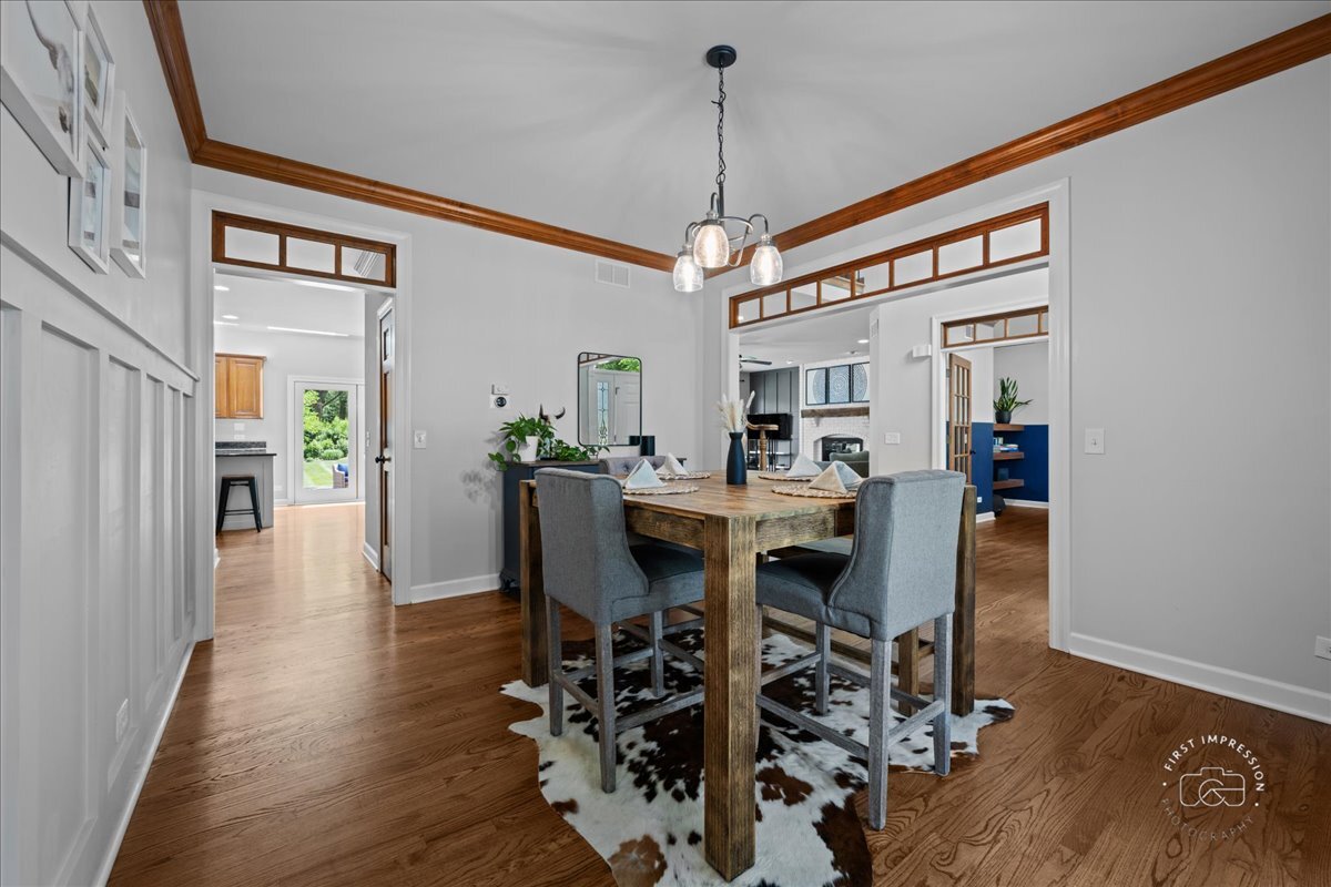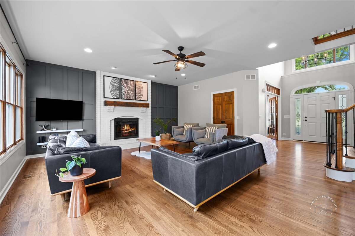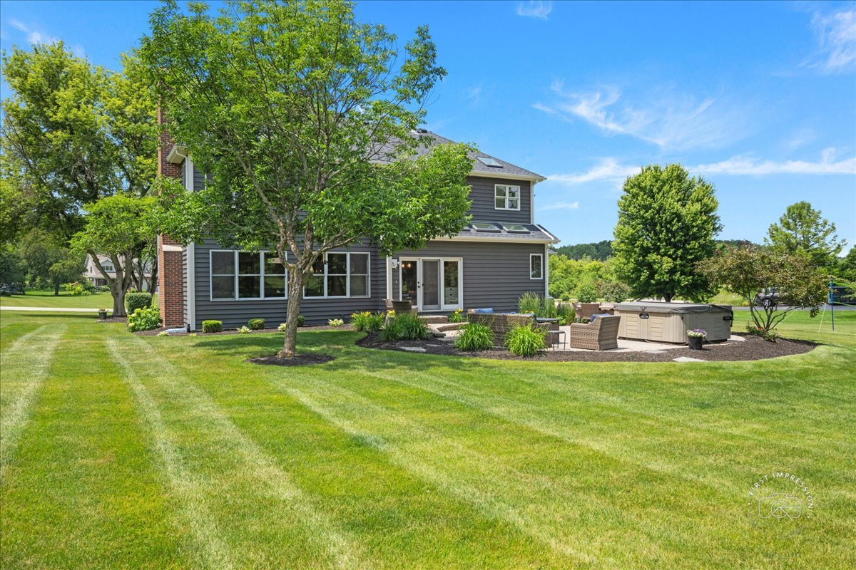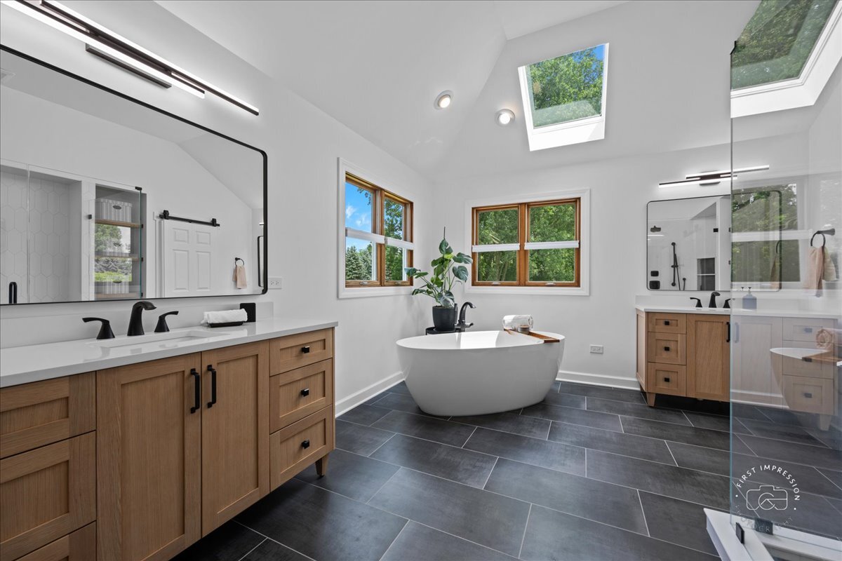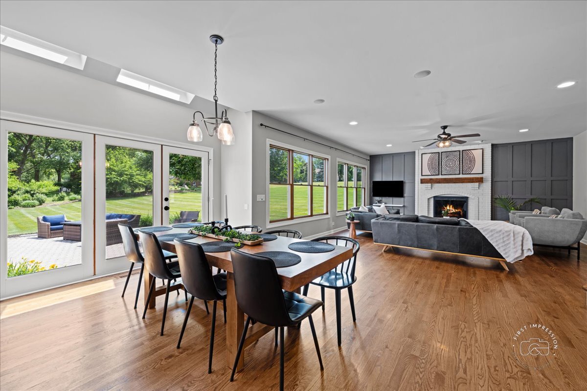 Beautifully updated home on 1.4 private acres with mature trees and outdoor spaces designed for enjoyment. 4342 square feet of finished living space!!! Extensive improvements over the last several years. Exterior updates include board replacement, stain, and trim paint (May 2024). New roof, skylights, and gutters (October 2023). Gorgeous primary bath remodel with new finishes (March 2024), Basement bath remodel with new glass shower door (December 2023). Shared upstairs bath remodel (November 2023). Hardwood floors throughout the main level (May 2022) and new carpet on the second floor (August 2019). Fresh interior paint, light fixtures, and ceiling fans (September 2019). Outdoor features include a stone fire pit and surround (May 2020), an in-ground basketball hoop and painted court (April 2022). Water heater (installed in December 2021) and heated garage (installed in November 2019). Updated hardware on doors and cabinets (August 2022). Move-in ready with space to relax, entertain, and enjoy the outdoors. Like hiking, walking, and nature–then you will love that the Great Western Trail extends from LeRoy Oaks to Grey Willows Farm—this home backs to the 208 acre parklike area with 10 hiking trails. Enjoy the beauty and serenity of the ever-changing vistas! Very versatile property, as NO HOA—County covenants! Great value for one-of-a-kind custom residence!